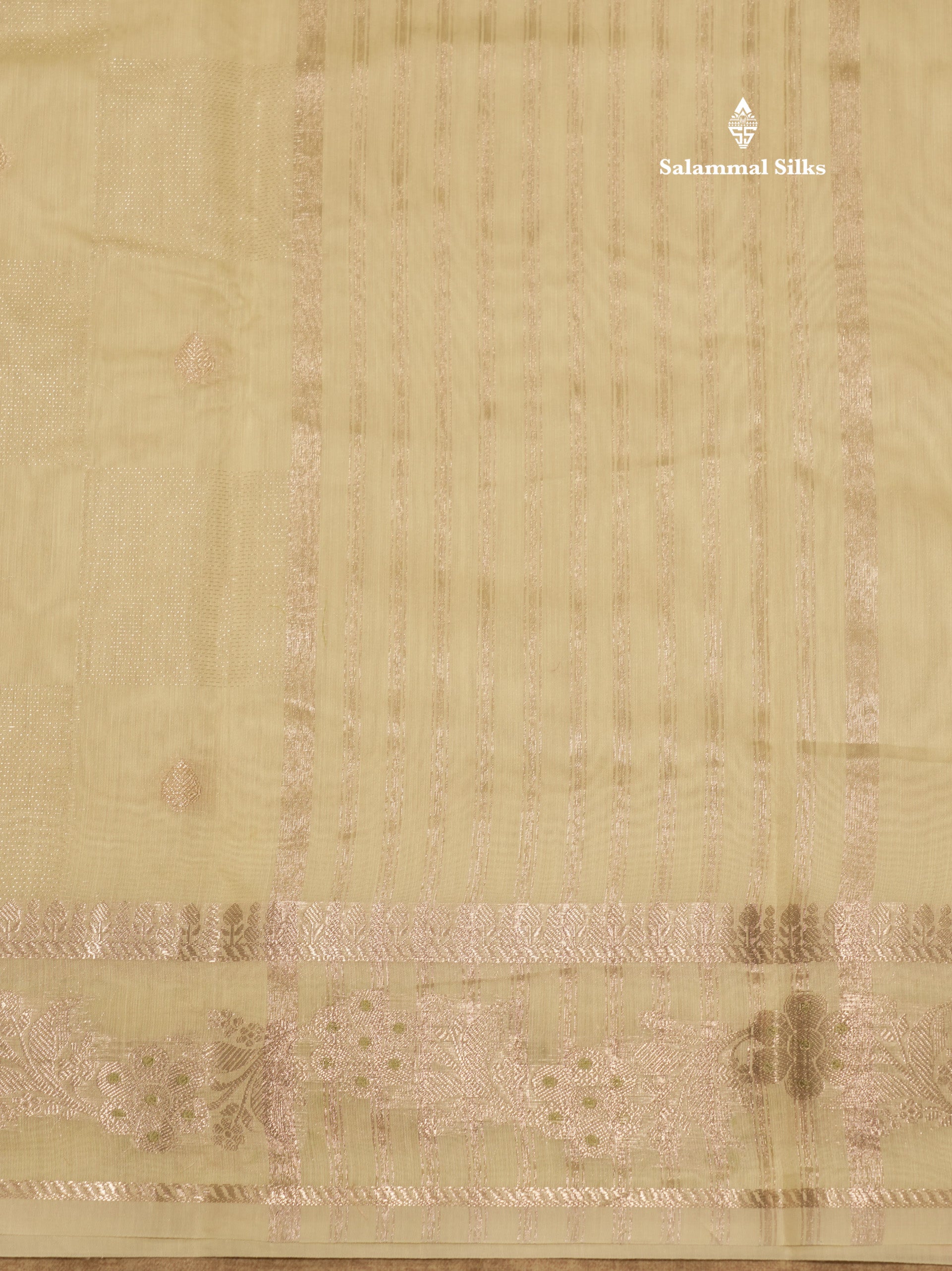 Salammal is known for its handloom sarees. In some sarees, there is cross-weaving between the body and the pallu, which is a sign of pure handloom sarees. This can be seen in Kanchipuram embossed sarees.