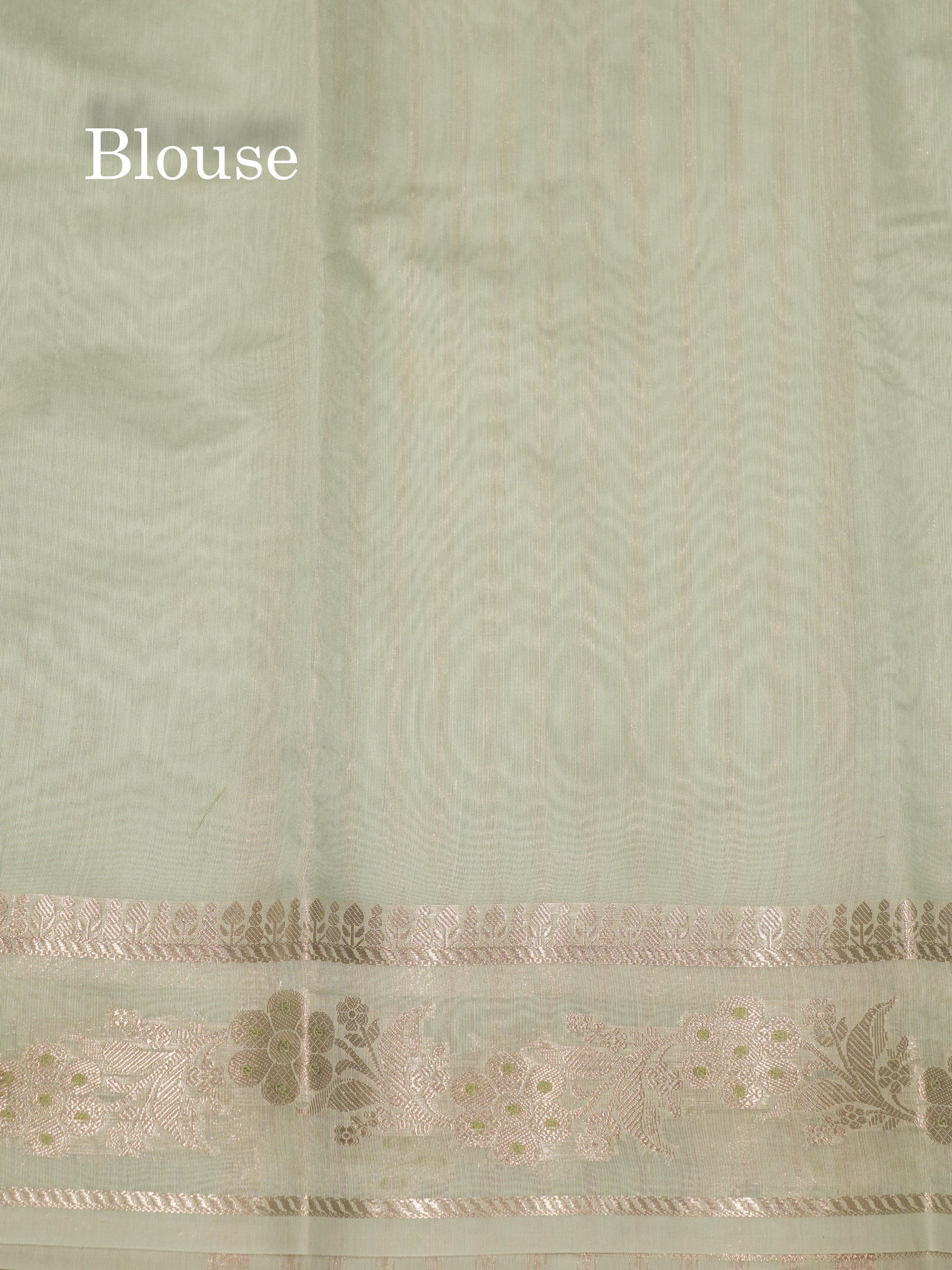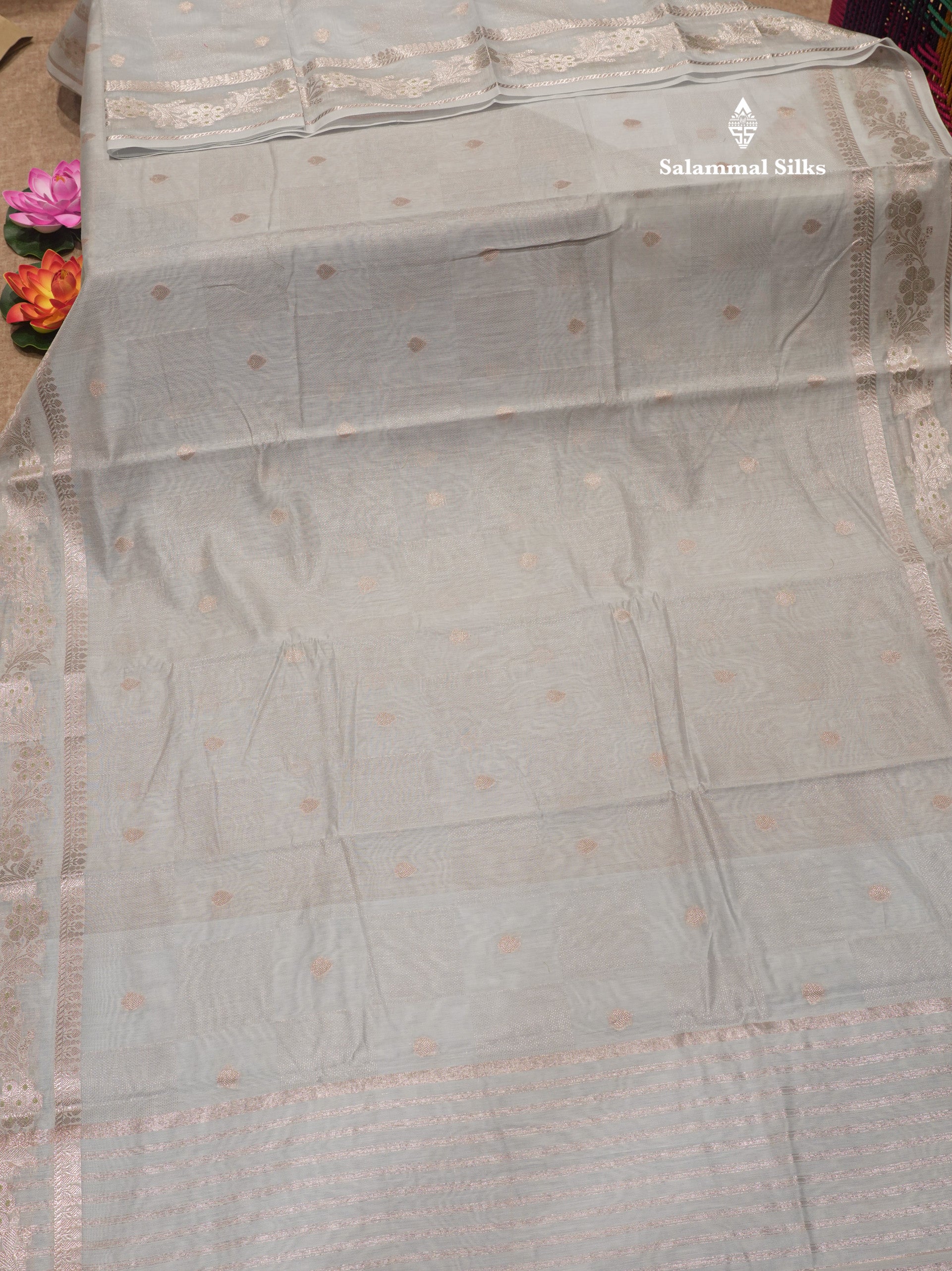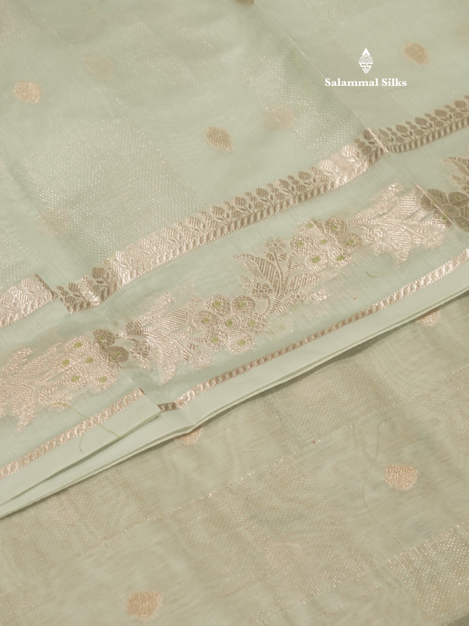 Pastel Blue Colour Cotton Mix Saree With Silver Zari Menna Work Border
