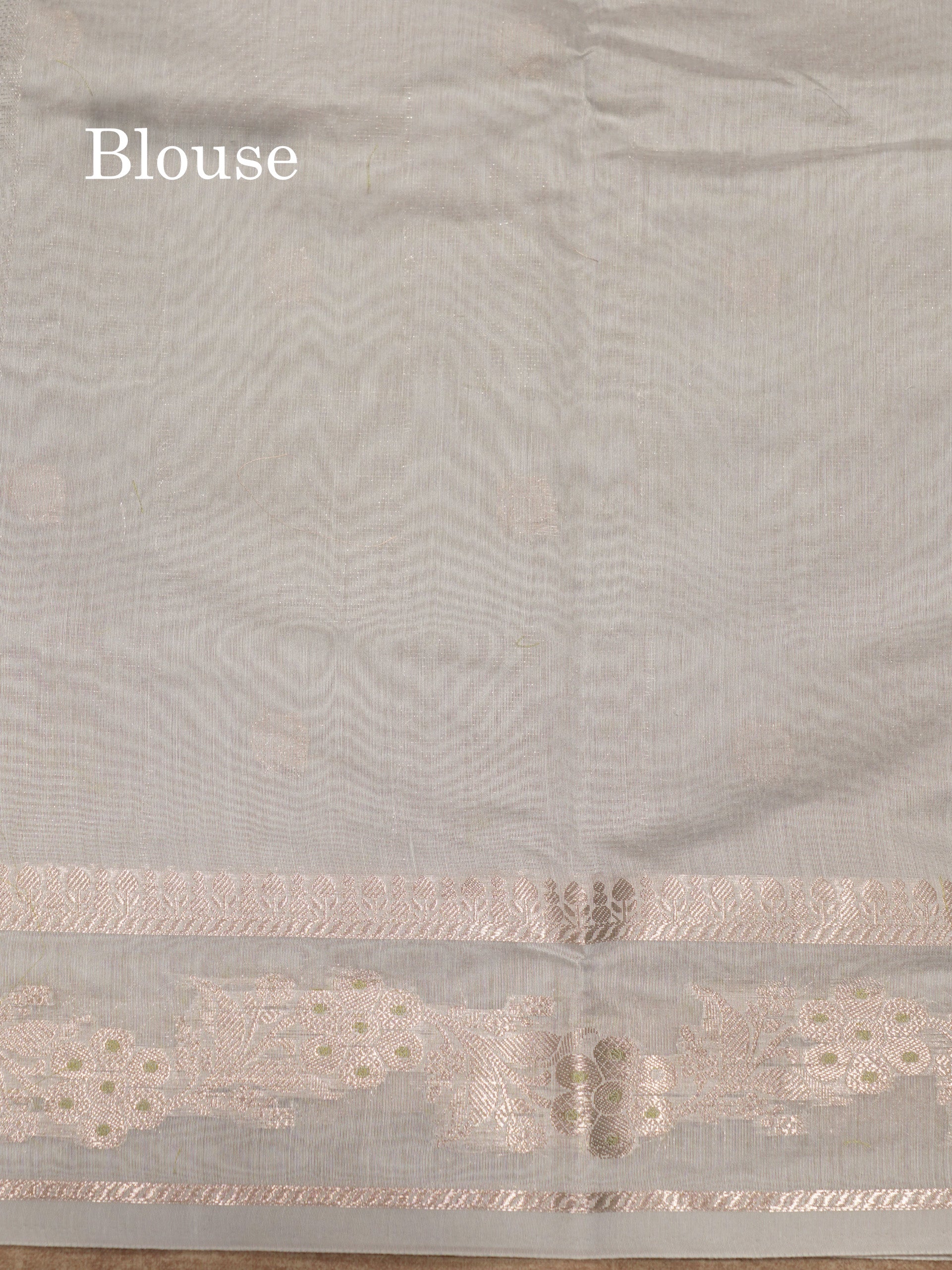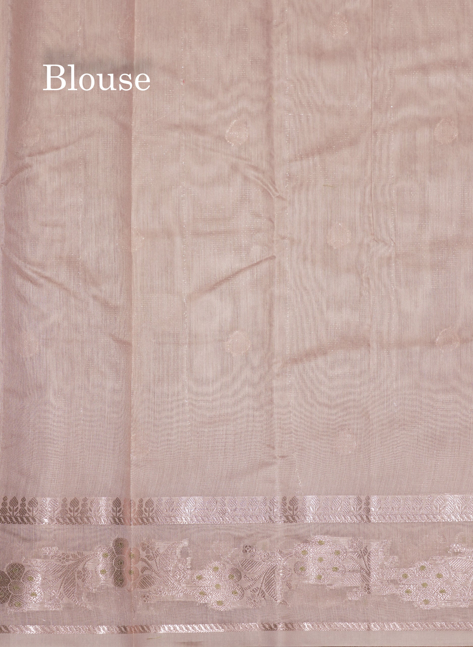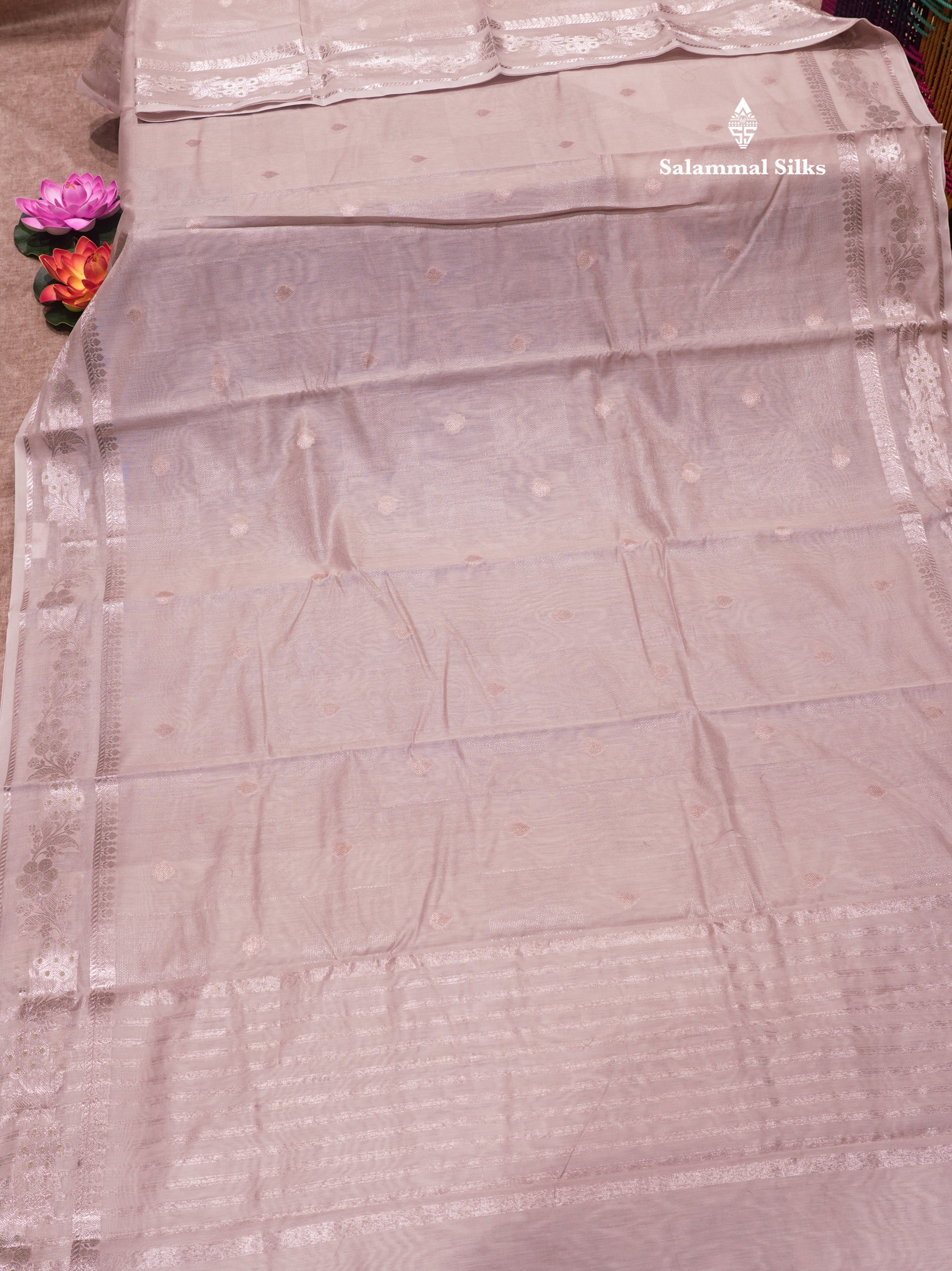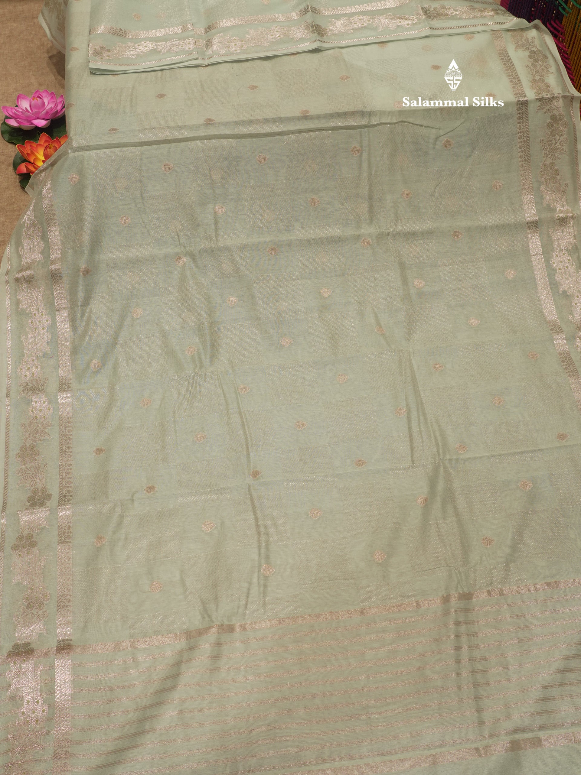 Pastel Blue Colour Cotton Mix Saree With Silver Zari Menna Work Border