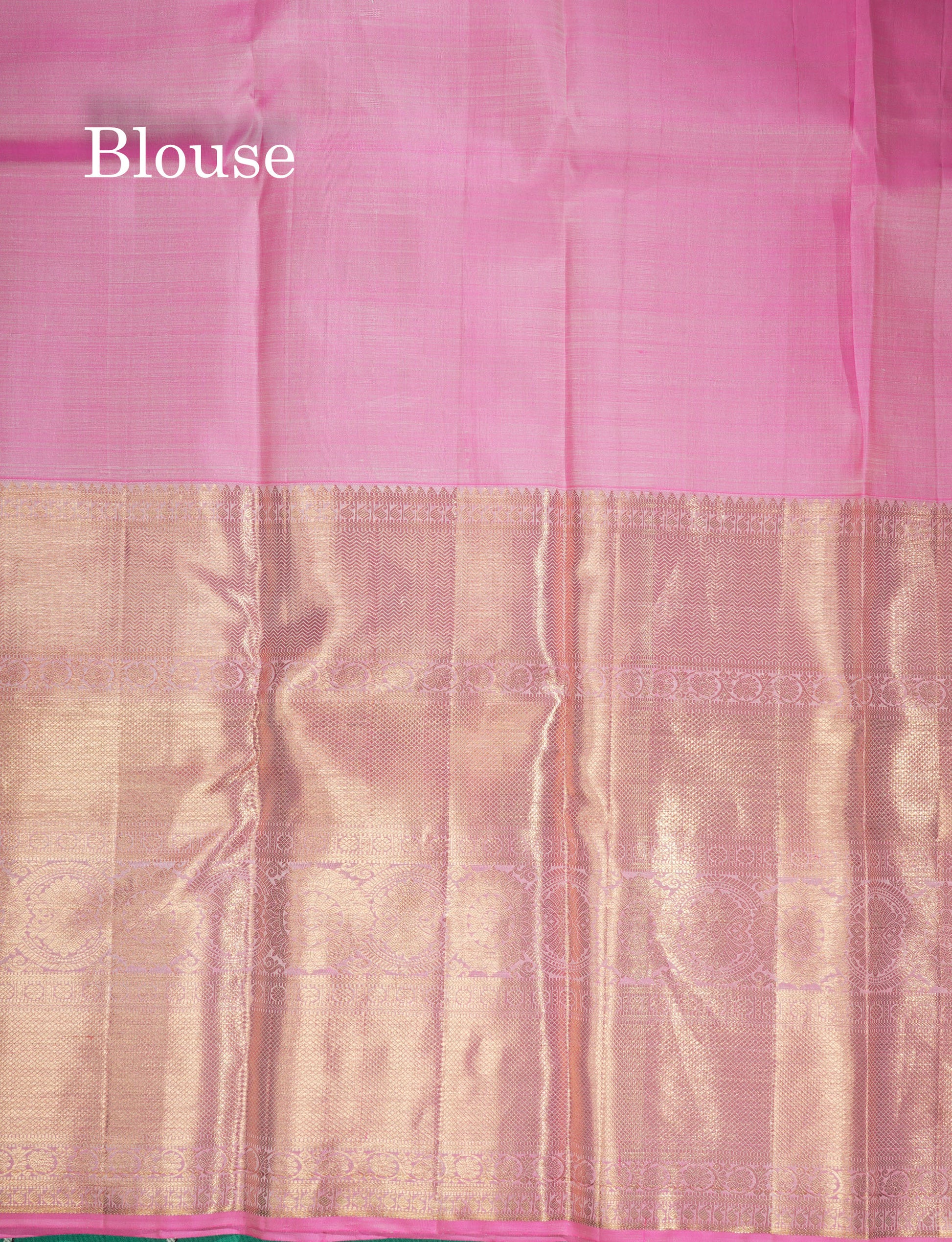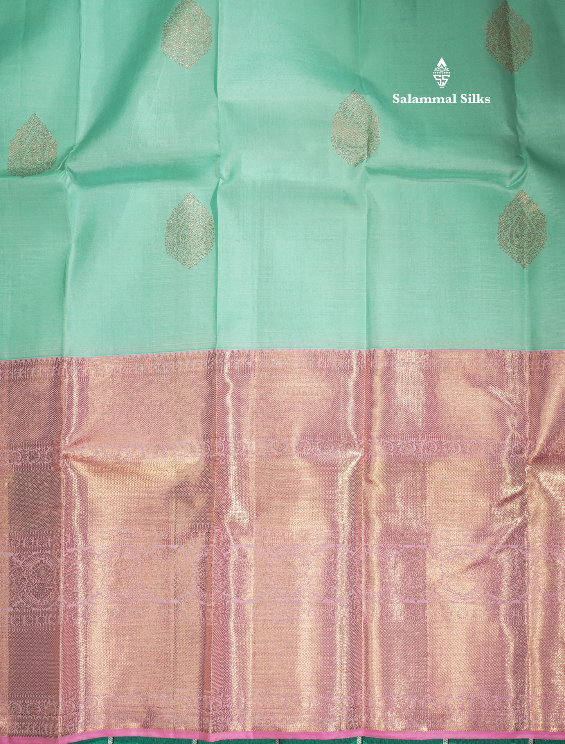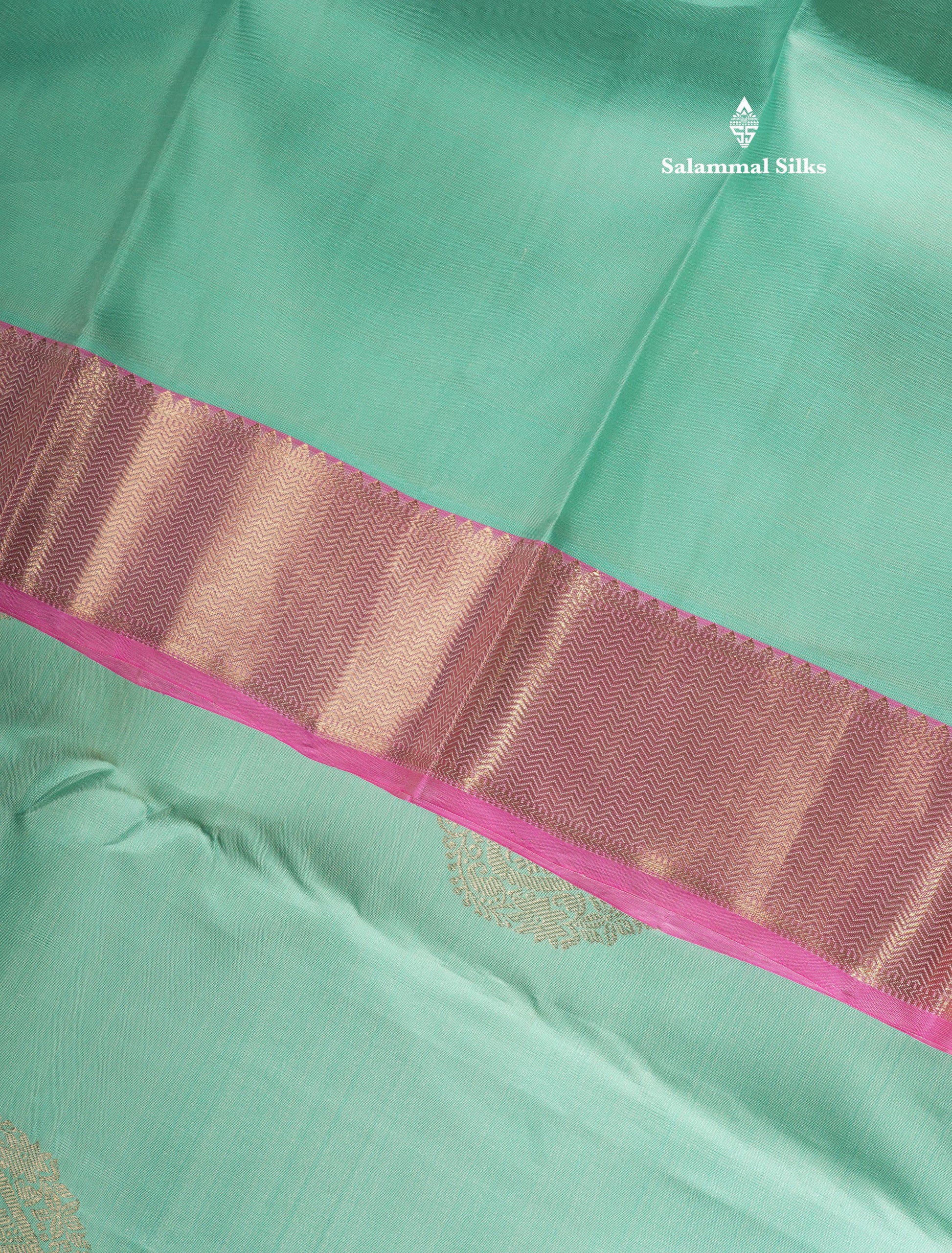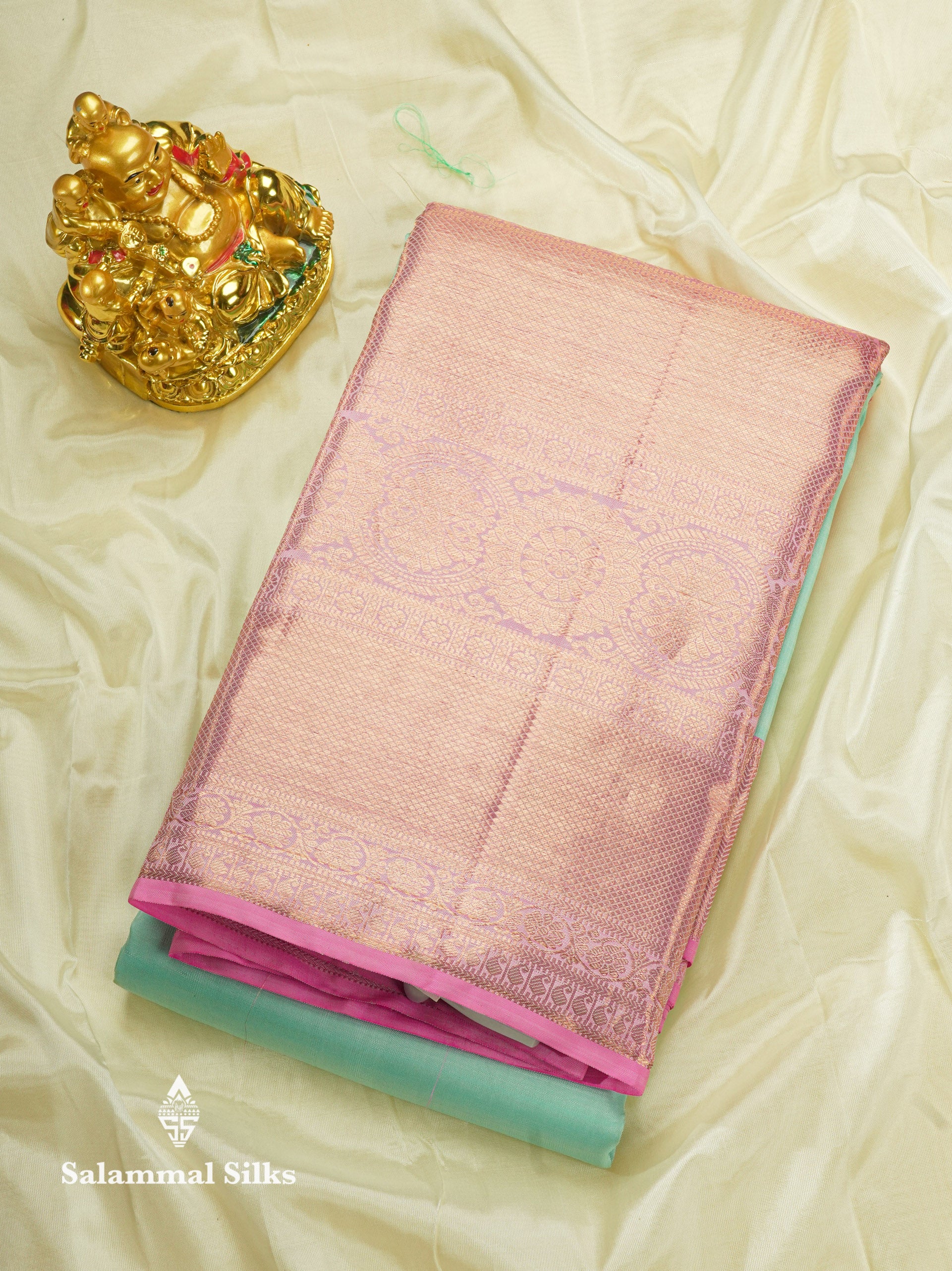 Pastel Blue Pure Kanjivaram Silk Saree with Contrast Baby Pink Long Border