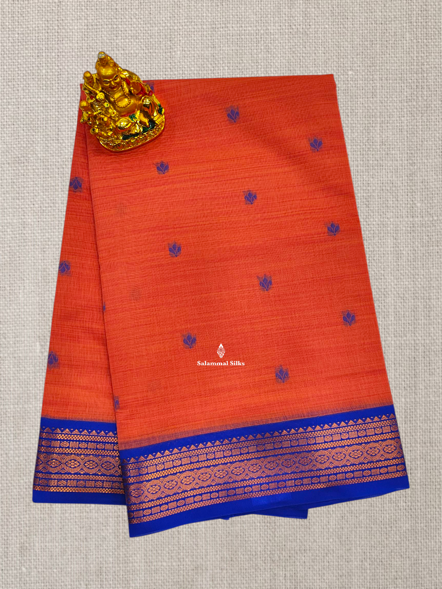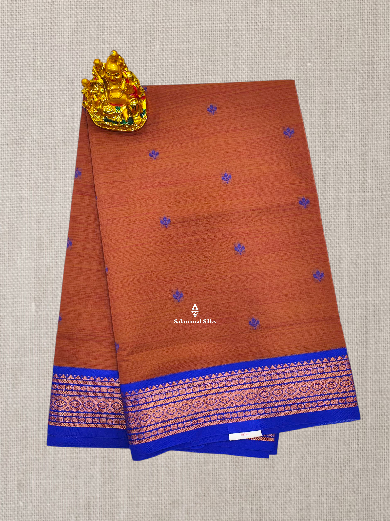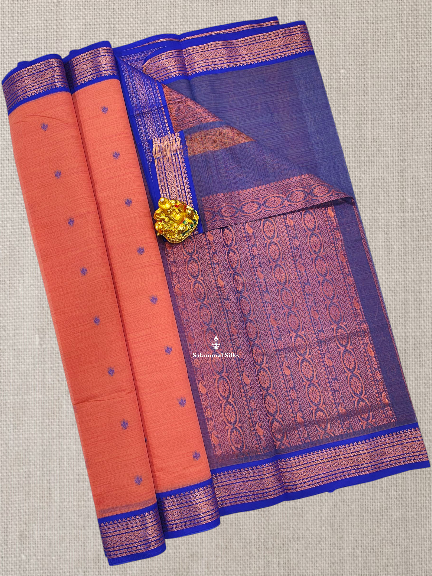 Peach Beautiful Thread Work Buttas Mesmerised Cotton Saree With Royal Blue Border