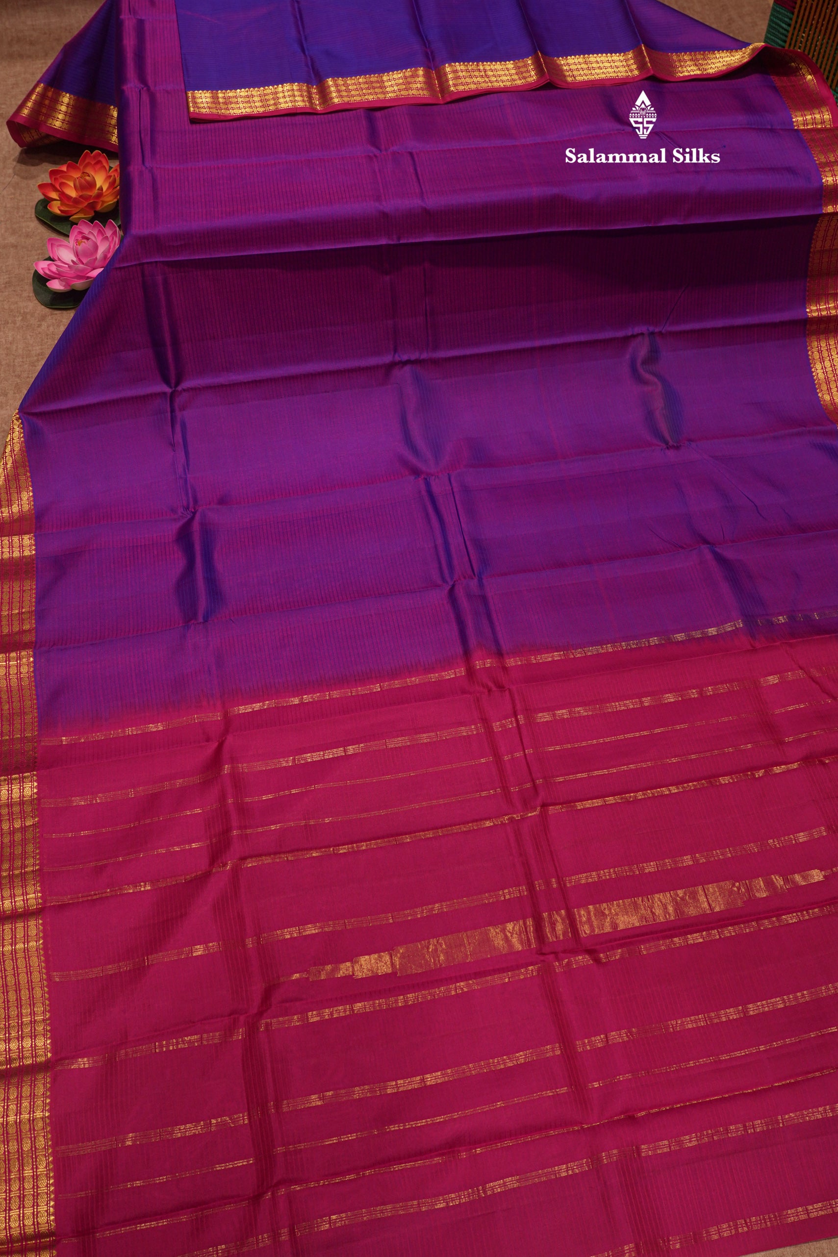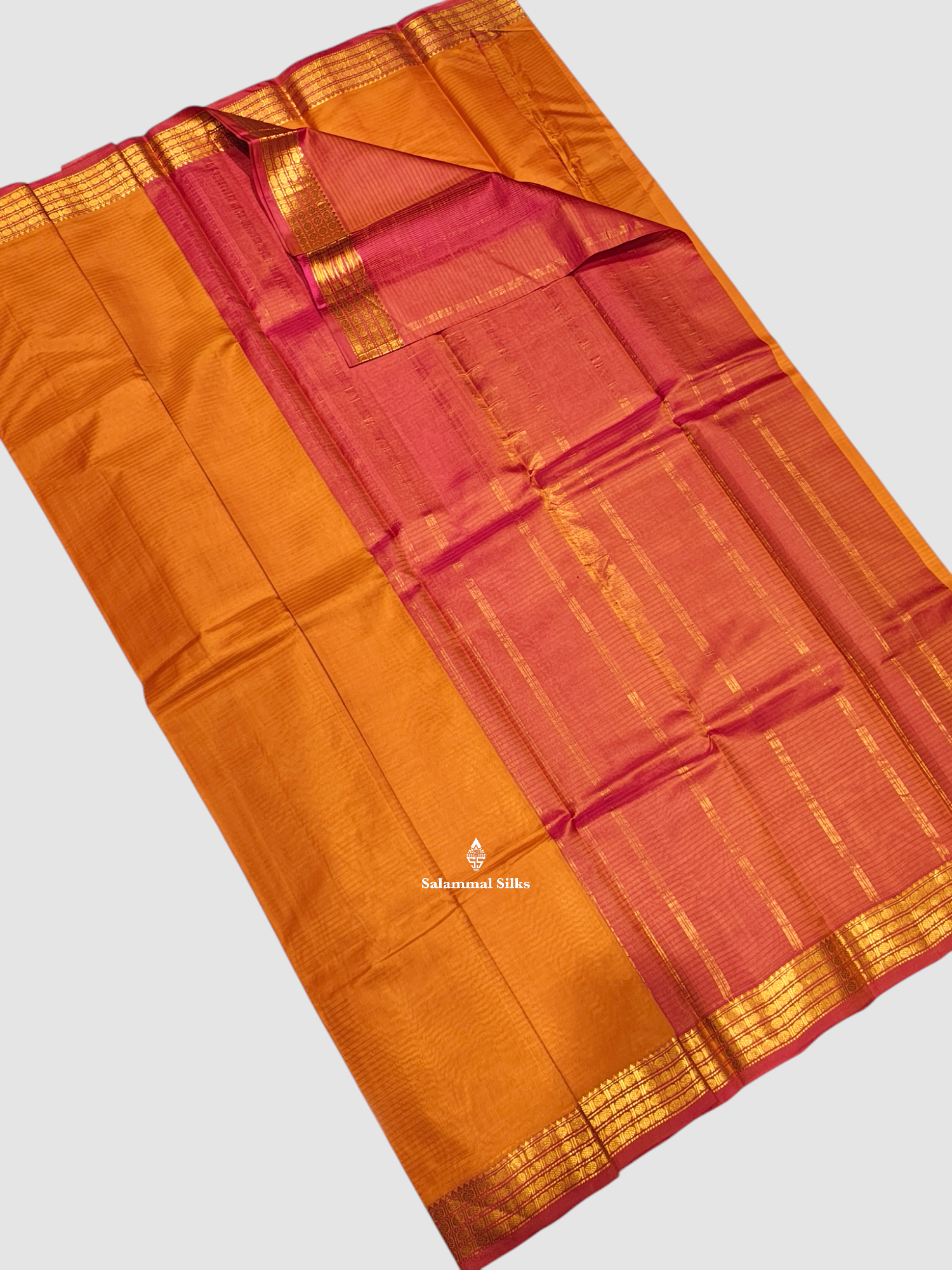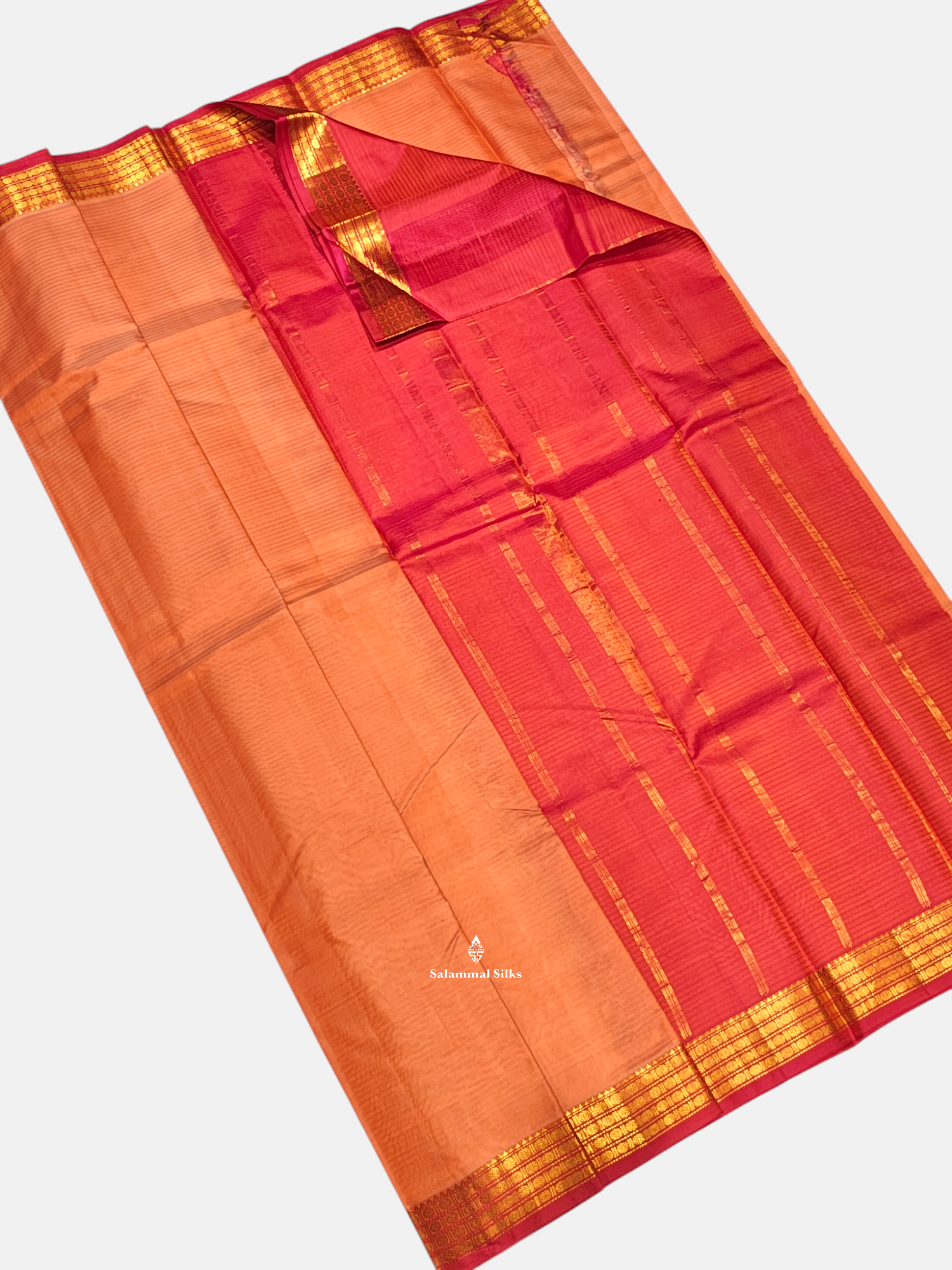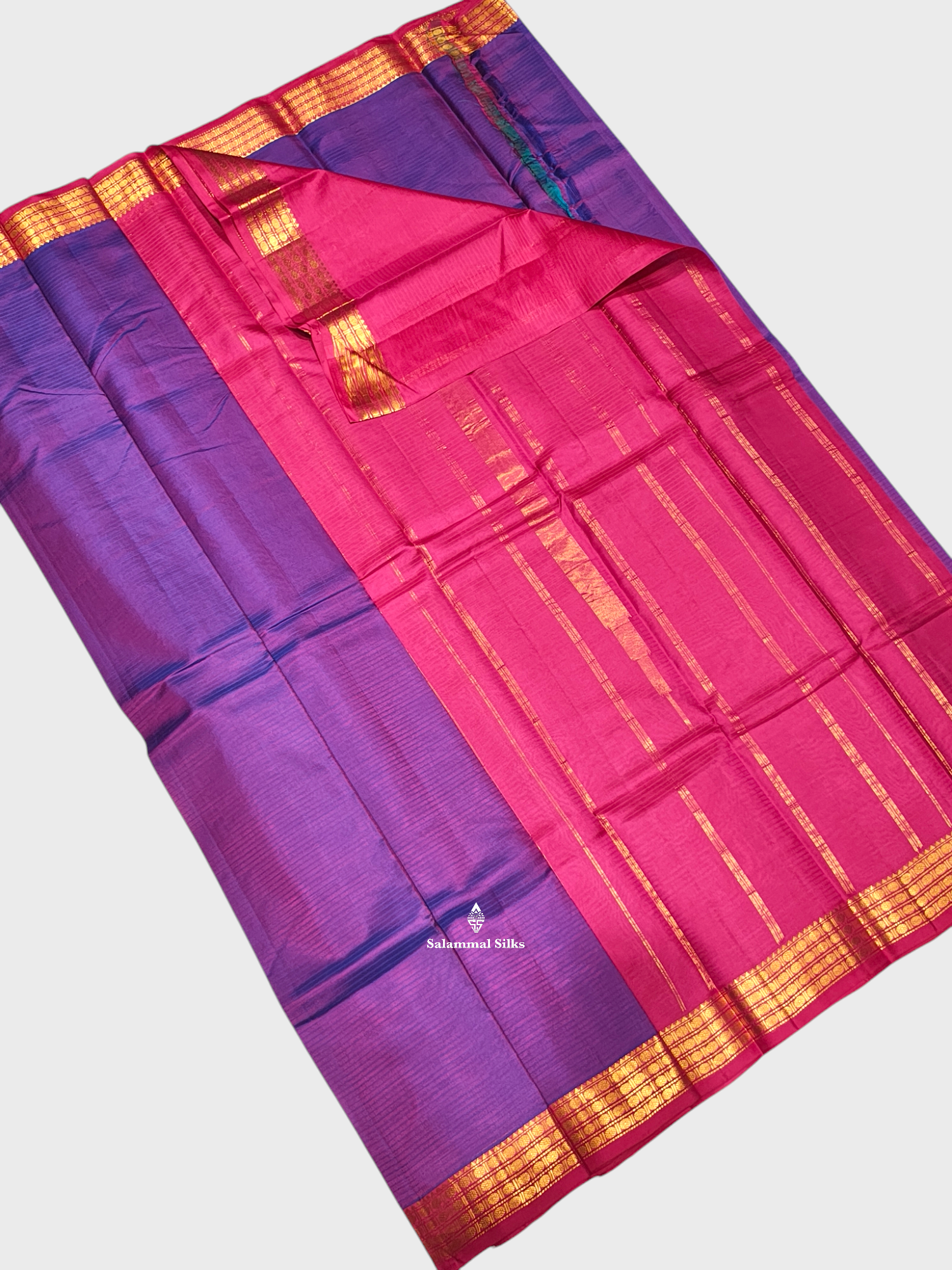 Salammal is known for its handloom sarees. In some sarees, there is cross-weaving between the body and the pallu, which is a sign of pure handloom sarees. This can be seen in Kanchipuram embossed sarees.