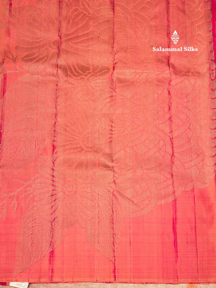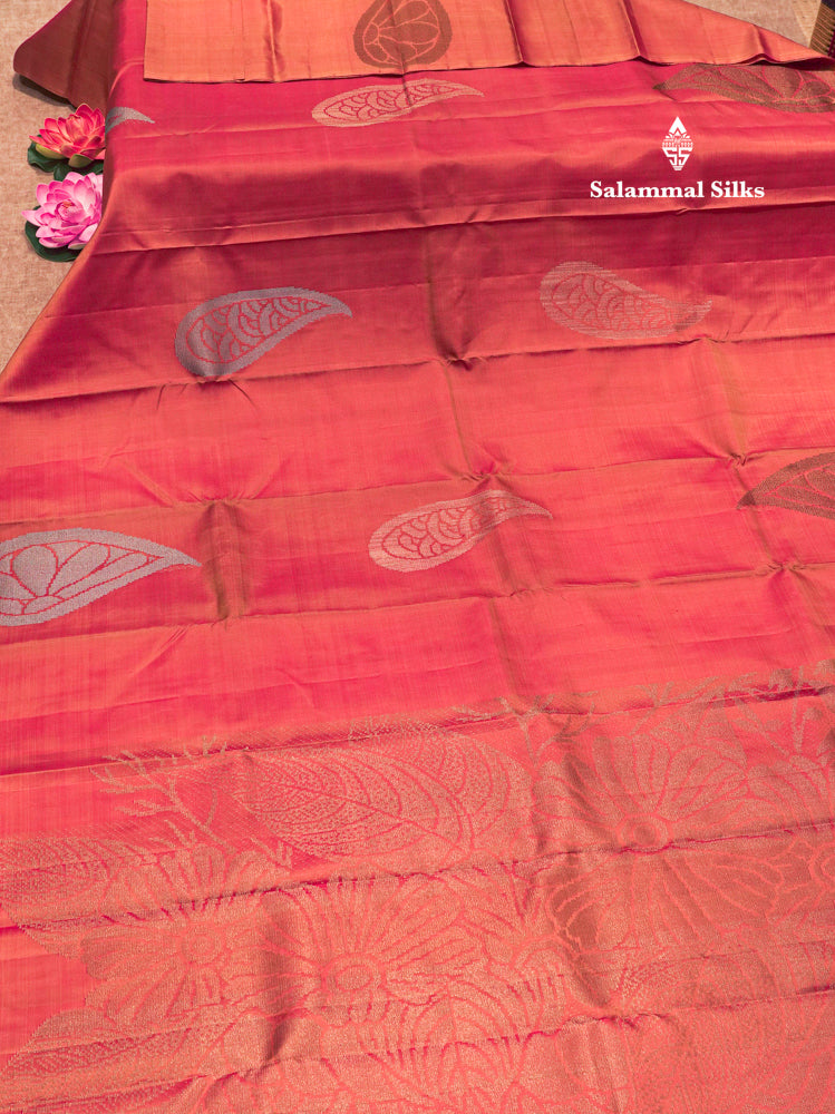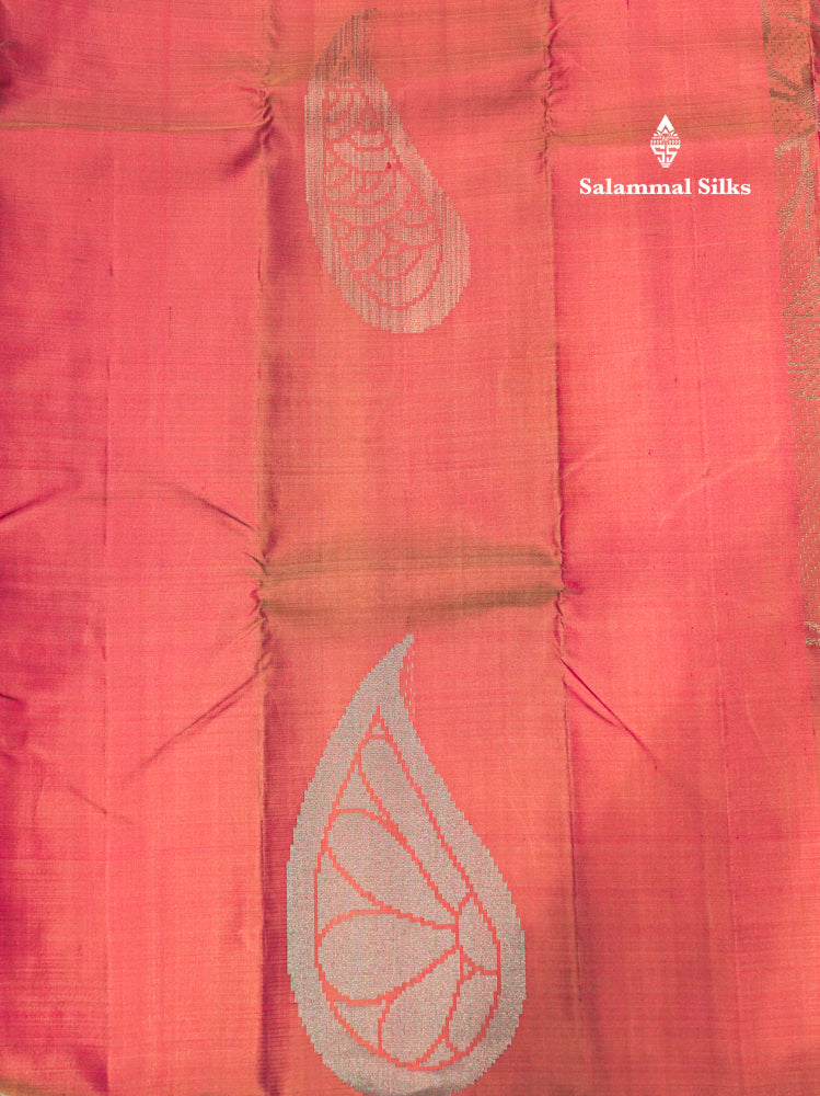 Fancy Peach Orange Colour Pure Kanjivaram Silk Saree