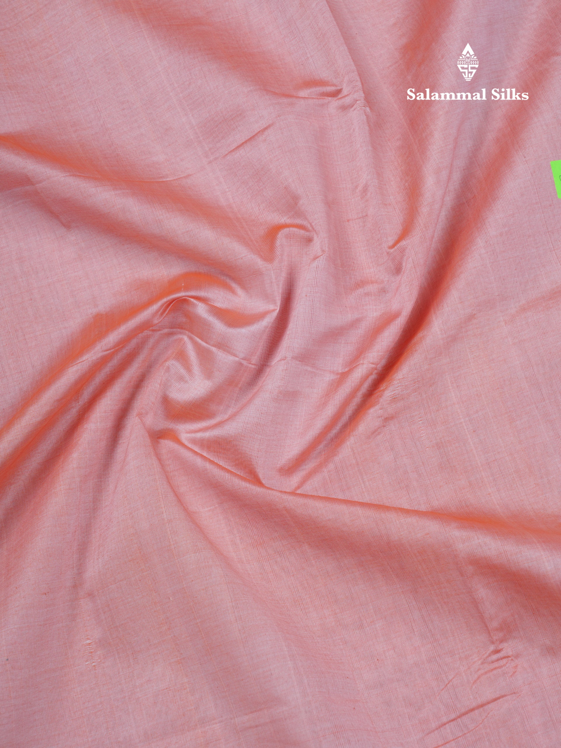 Peach Plain Semi Silk Cotton Saree With Contrast Vadamalli Traditional Border