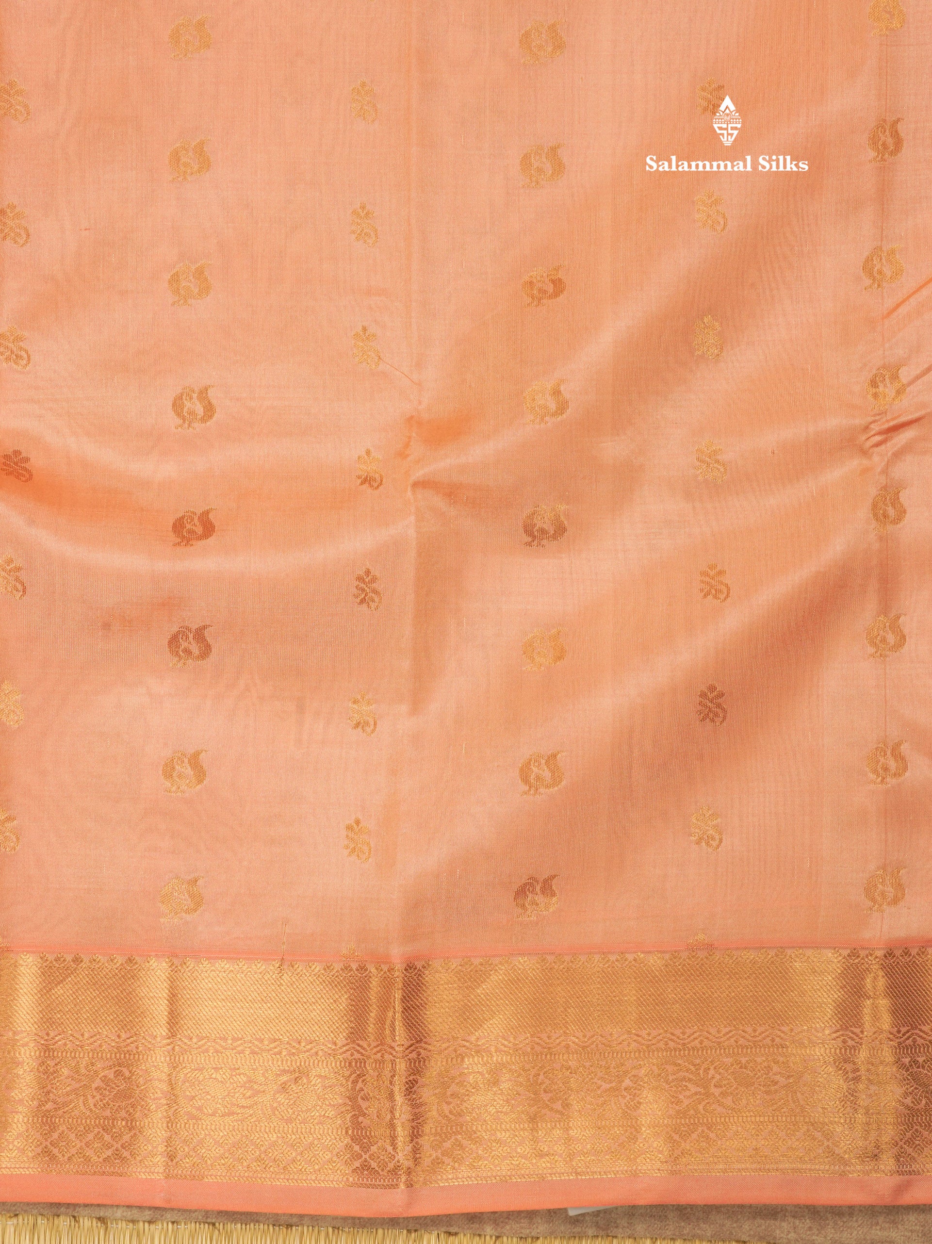 Peach Pure Kanjivaram Silk Saree With Gold Zari Border
