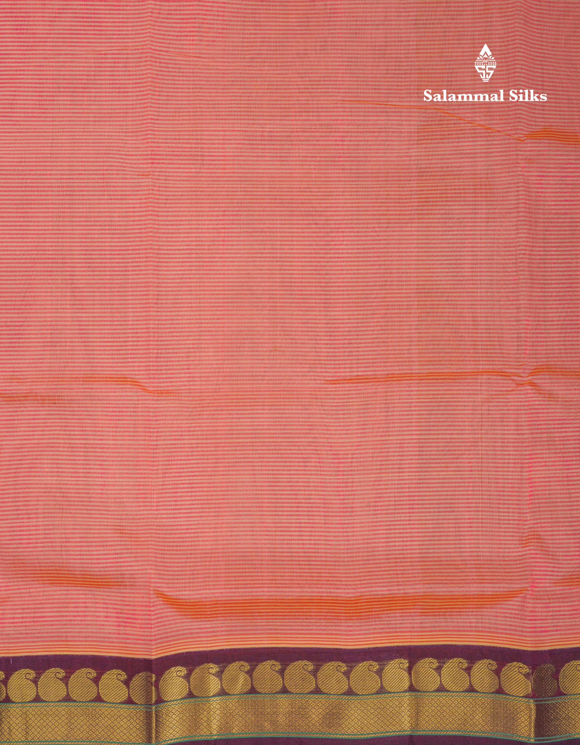 Peach Pure Silk Cotton Saree With Contrast Dark Brown Traditional Border