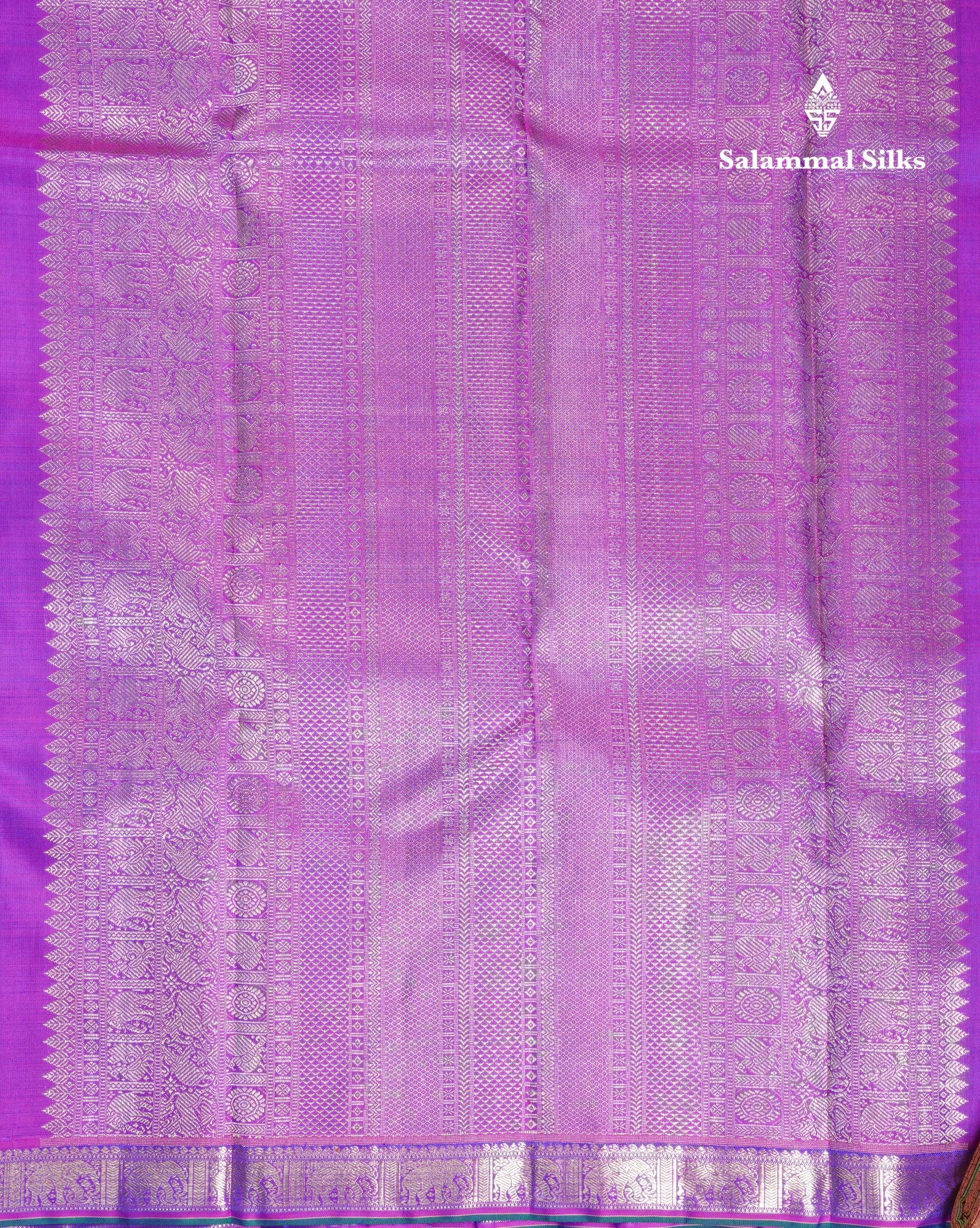 Peacock Blue Beautiful Small Buttas Pure Kanjivaram Silk Saree Pure Zari with Violet Small Border