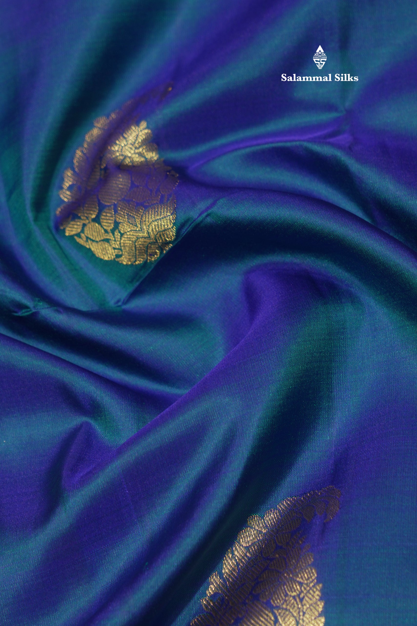 Peacock Blue Colour Pure Kanjivaram Silk Saree With Gold Zari Border