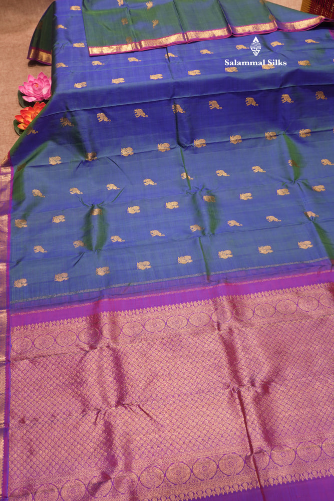 Peacock Blue Colour Pure Kanjivaram Silk Saree With Small Magenta Border