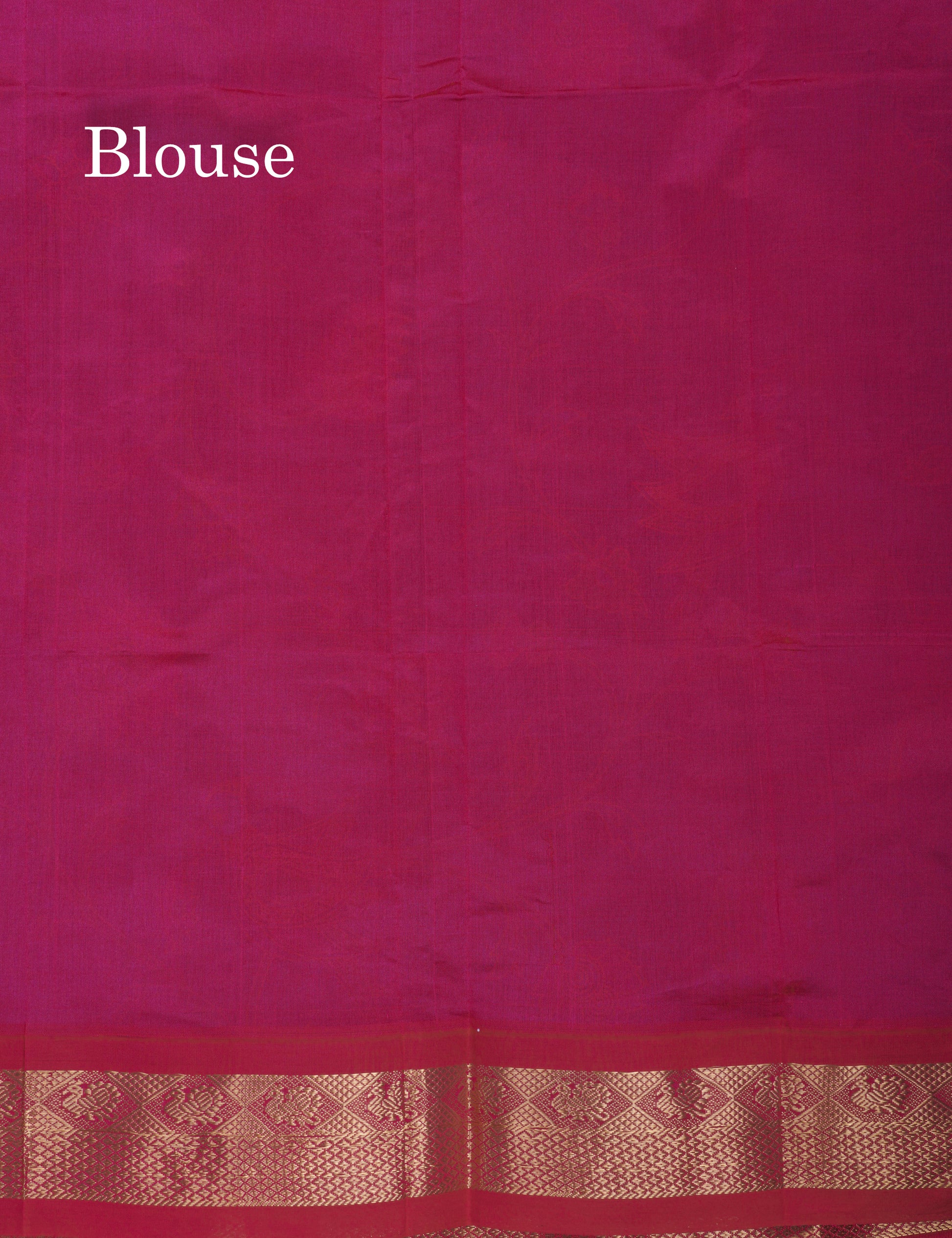 Salammal is known for its handloom sarees. In some sarees, there is cross-weaving between the body and the pallu, which is a sign of pure handloom sarees. This can be seen in Kanchipuram embossed sarees.