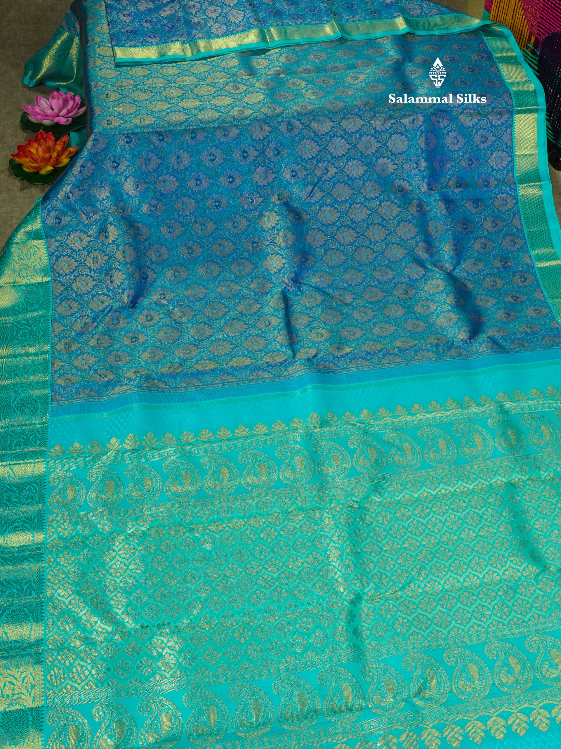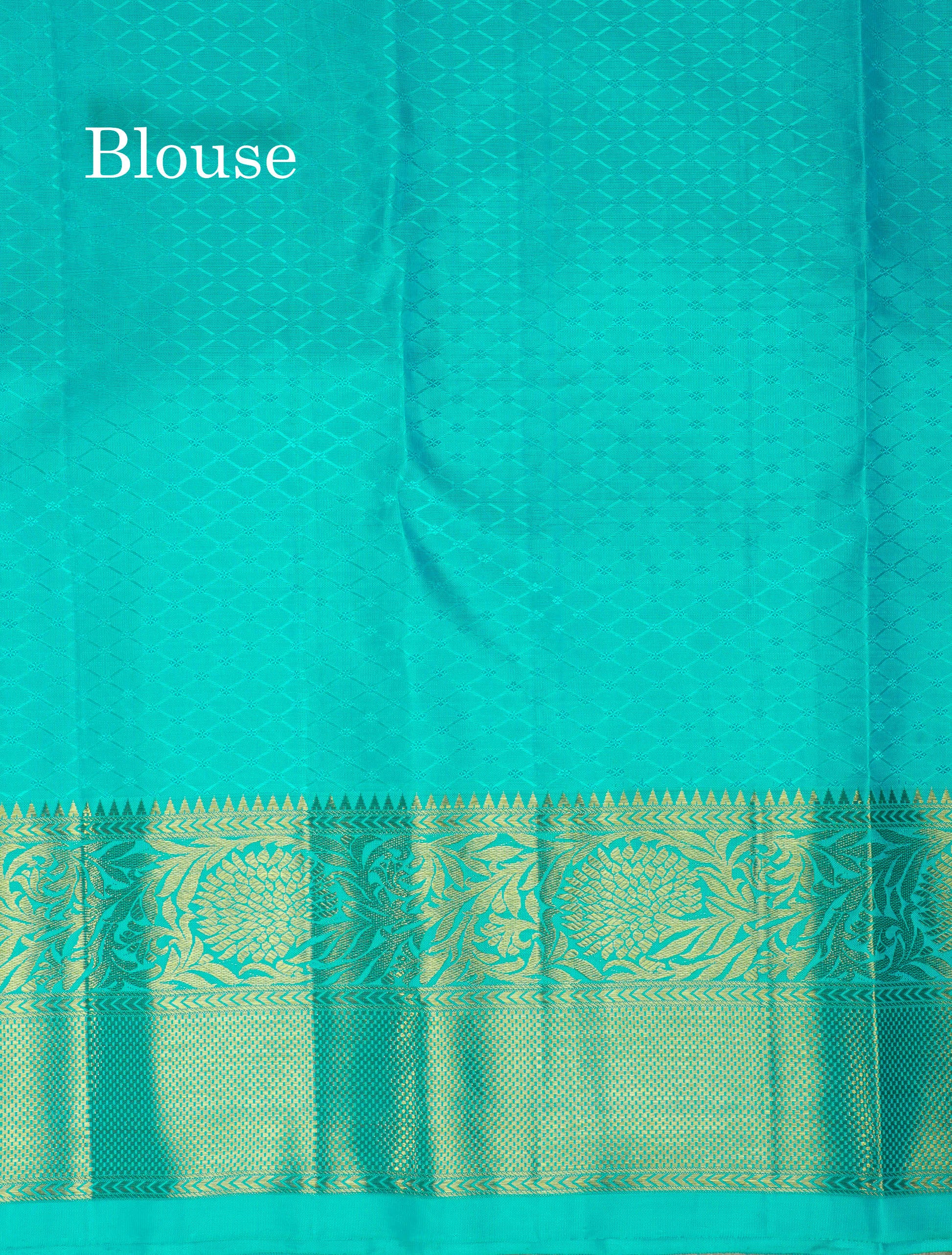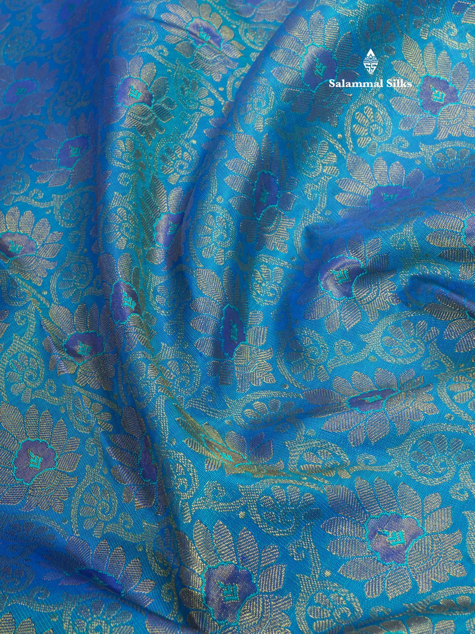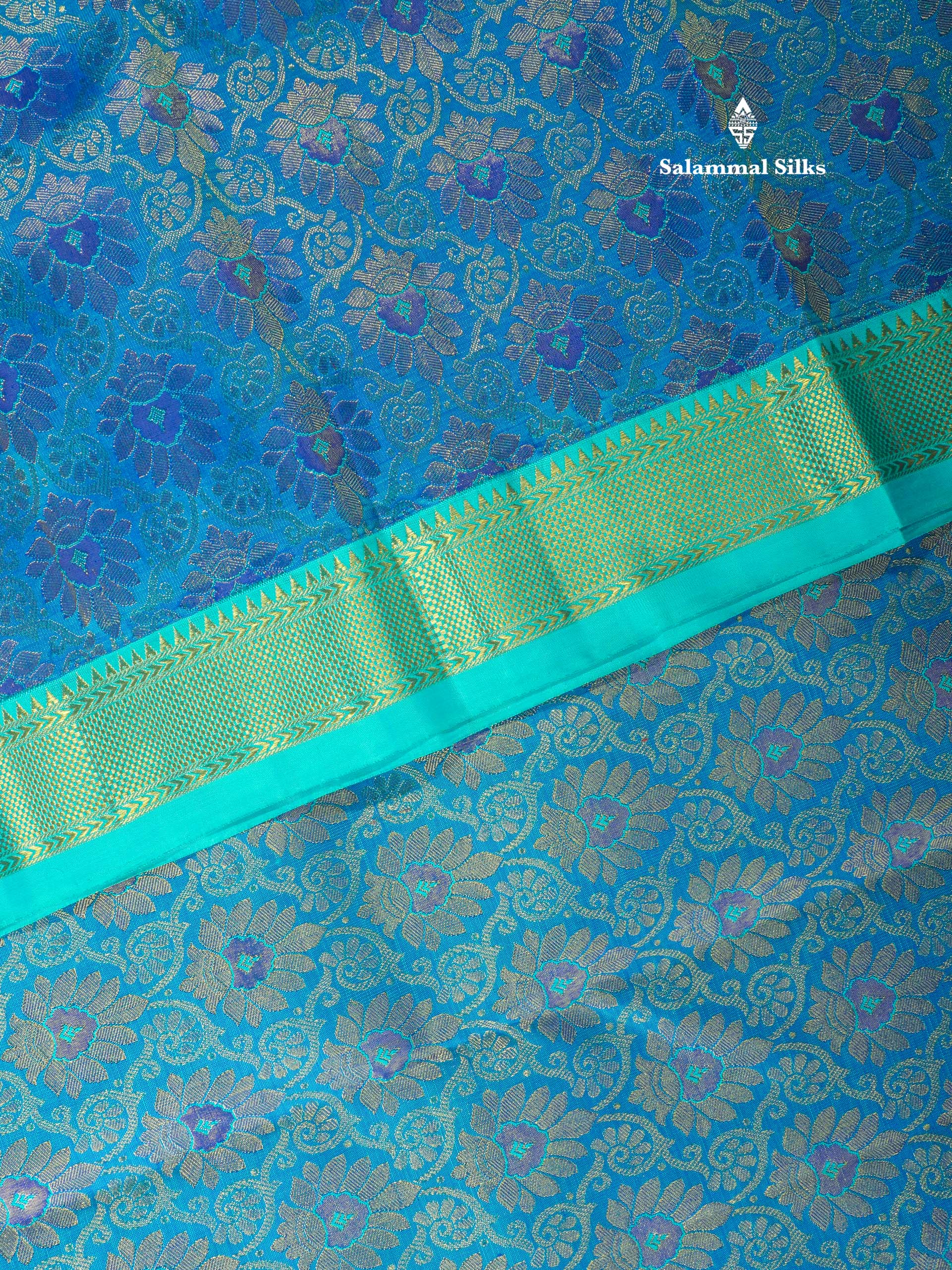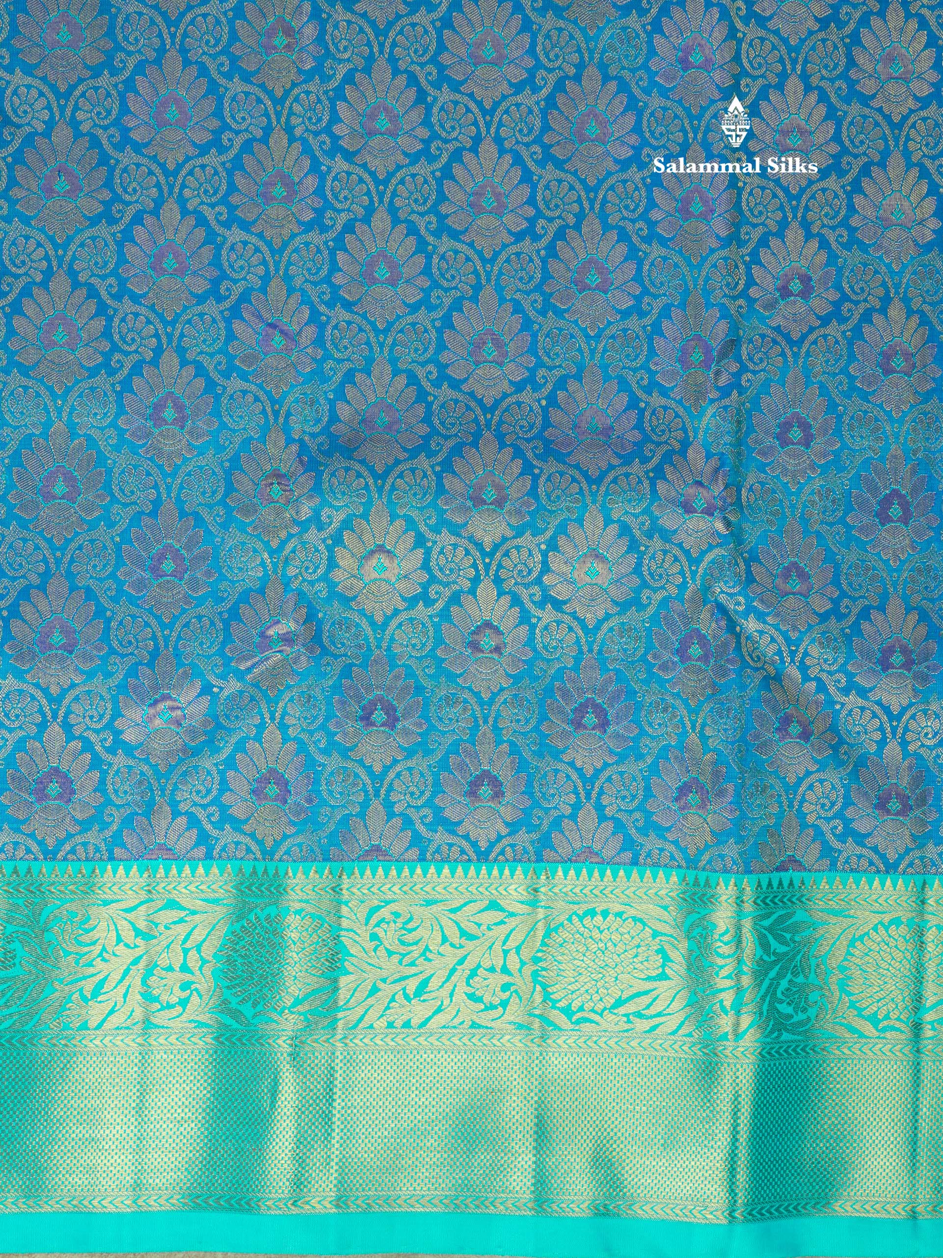Pure Zari Peacock Blue Pure Kanjivaram Silk Saree with Contrast Sky Blue Border