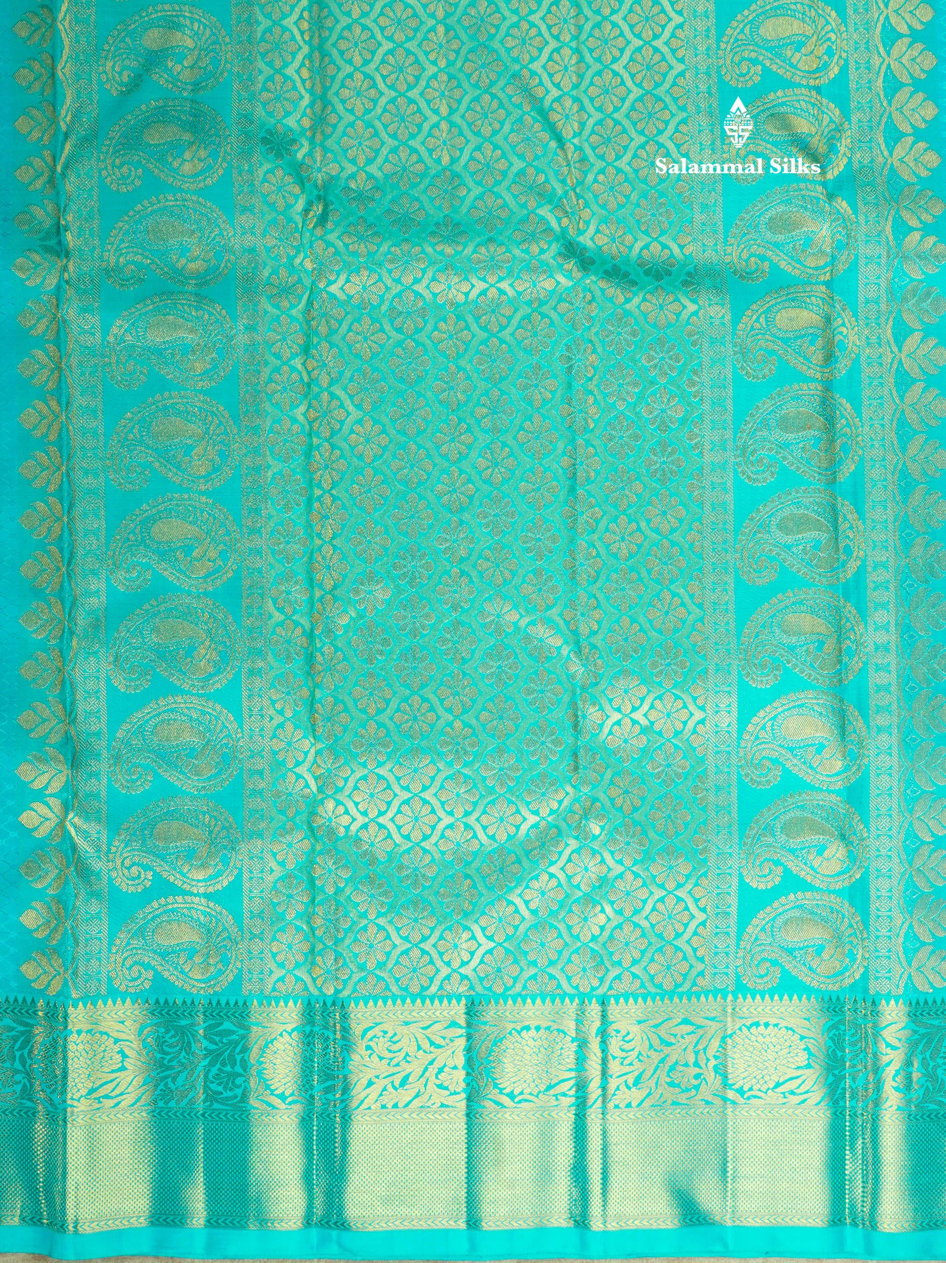 Salammal is known for its handloom sarees. In some sarees, there is cross-weaving between the body and the pallu, which is a sign of pure handloom sarees. This can be seen in Kanchipuram embossed sarees.