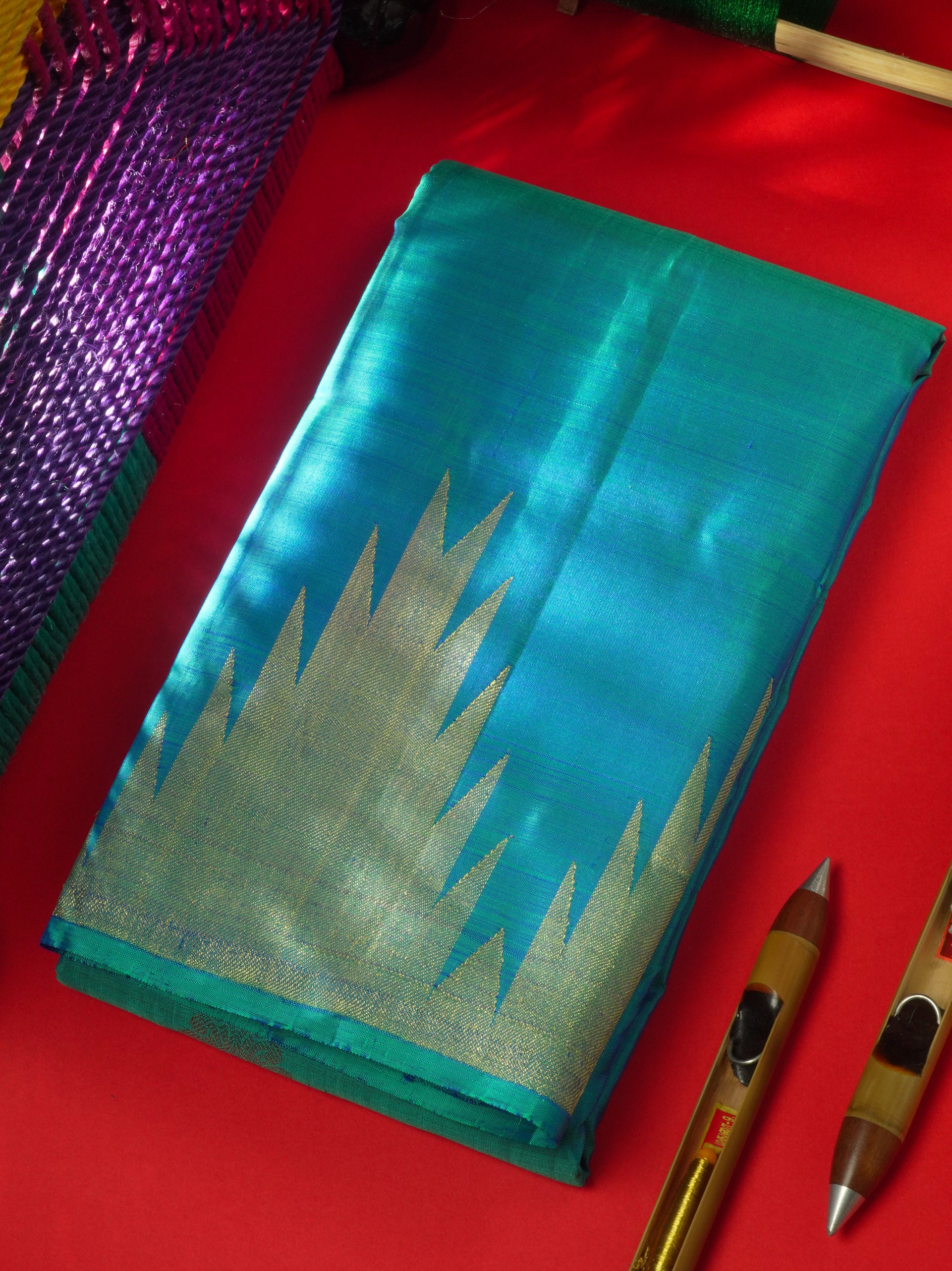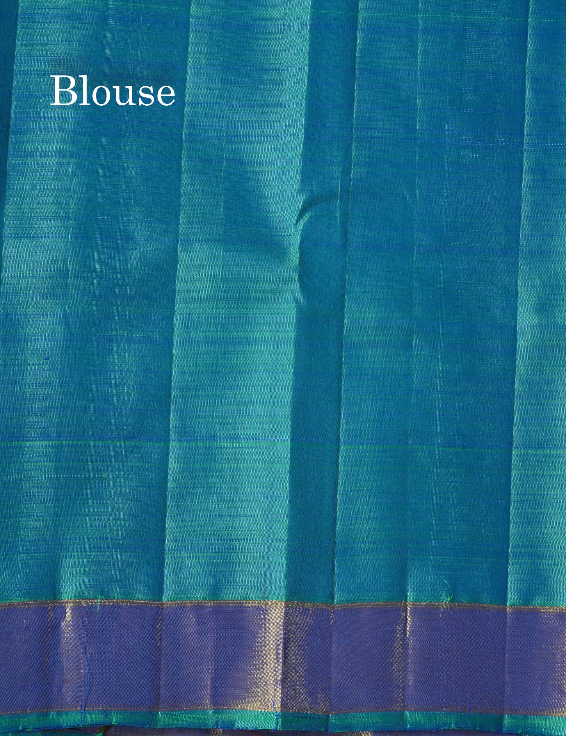 Dual tone Peacock Blue Pure Kanjivaram Silk Saree with Traditional Temple Border