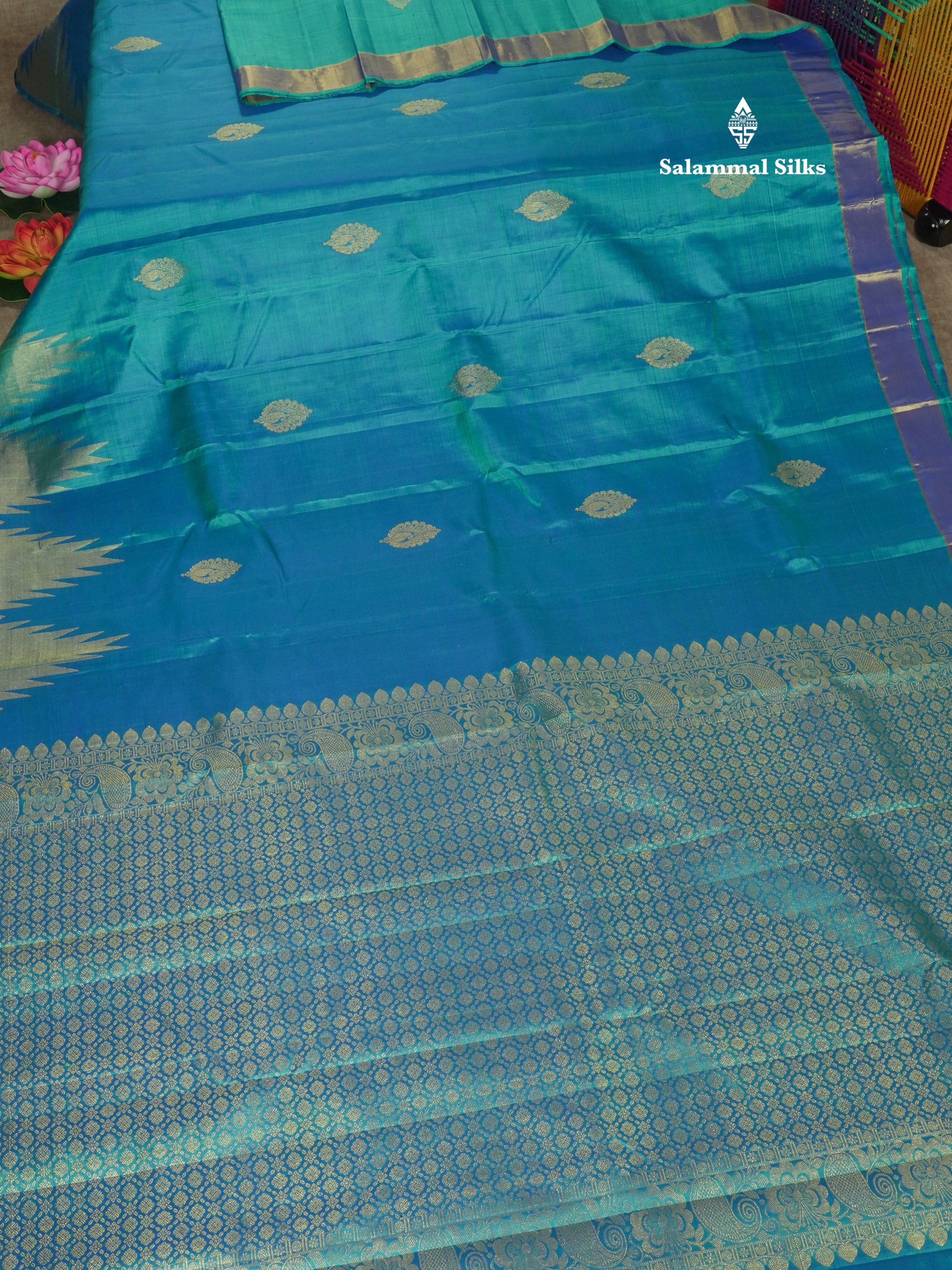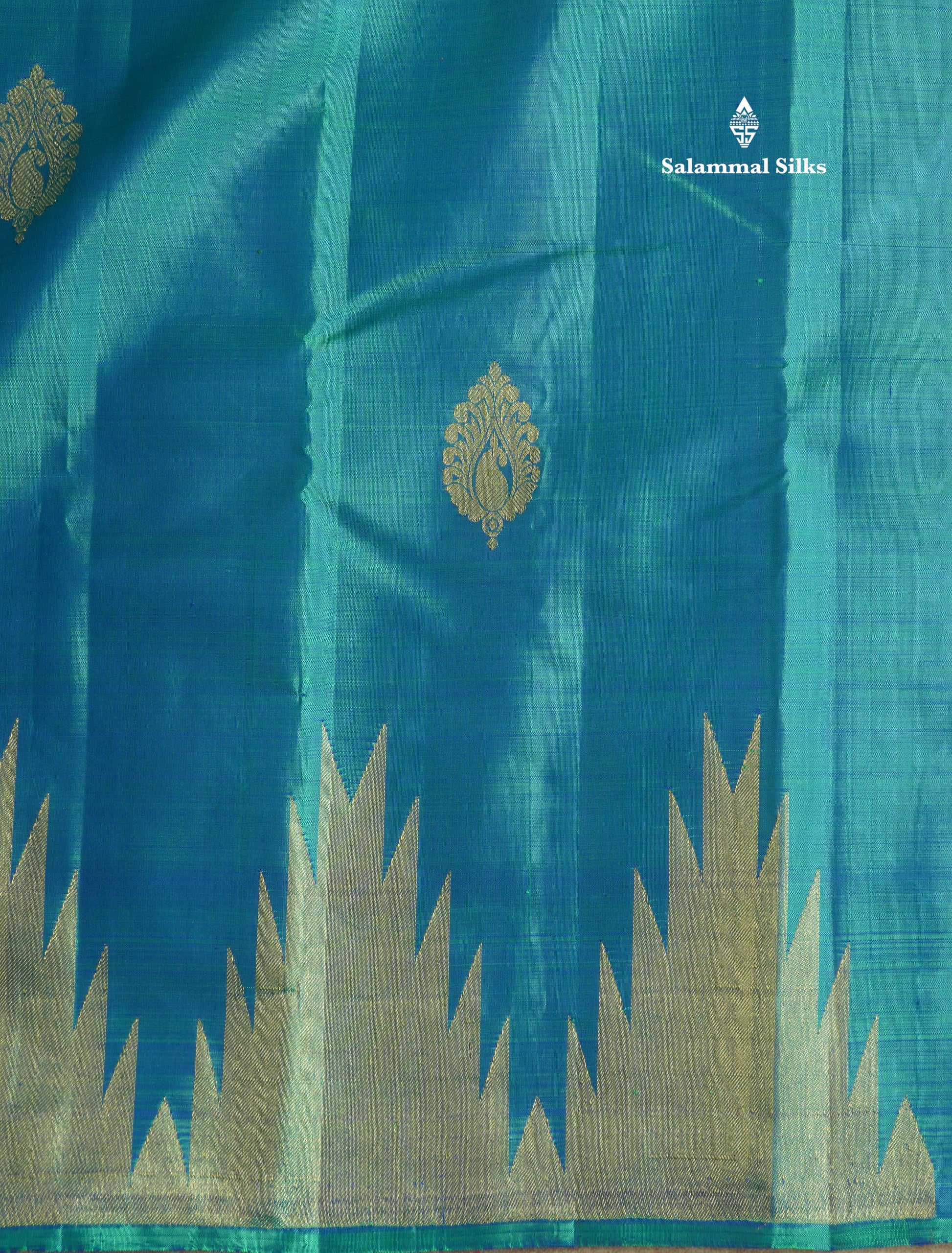 Salammal is known for its handloom sarees. In some sarees, there is cross-weaving between the body and the pallu, which is a sign of pure handloom sarees. This can be seen in Kanchipuram embossed sarees.