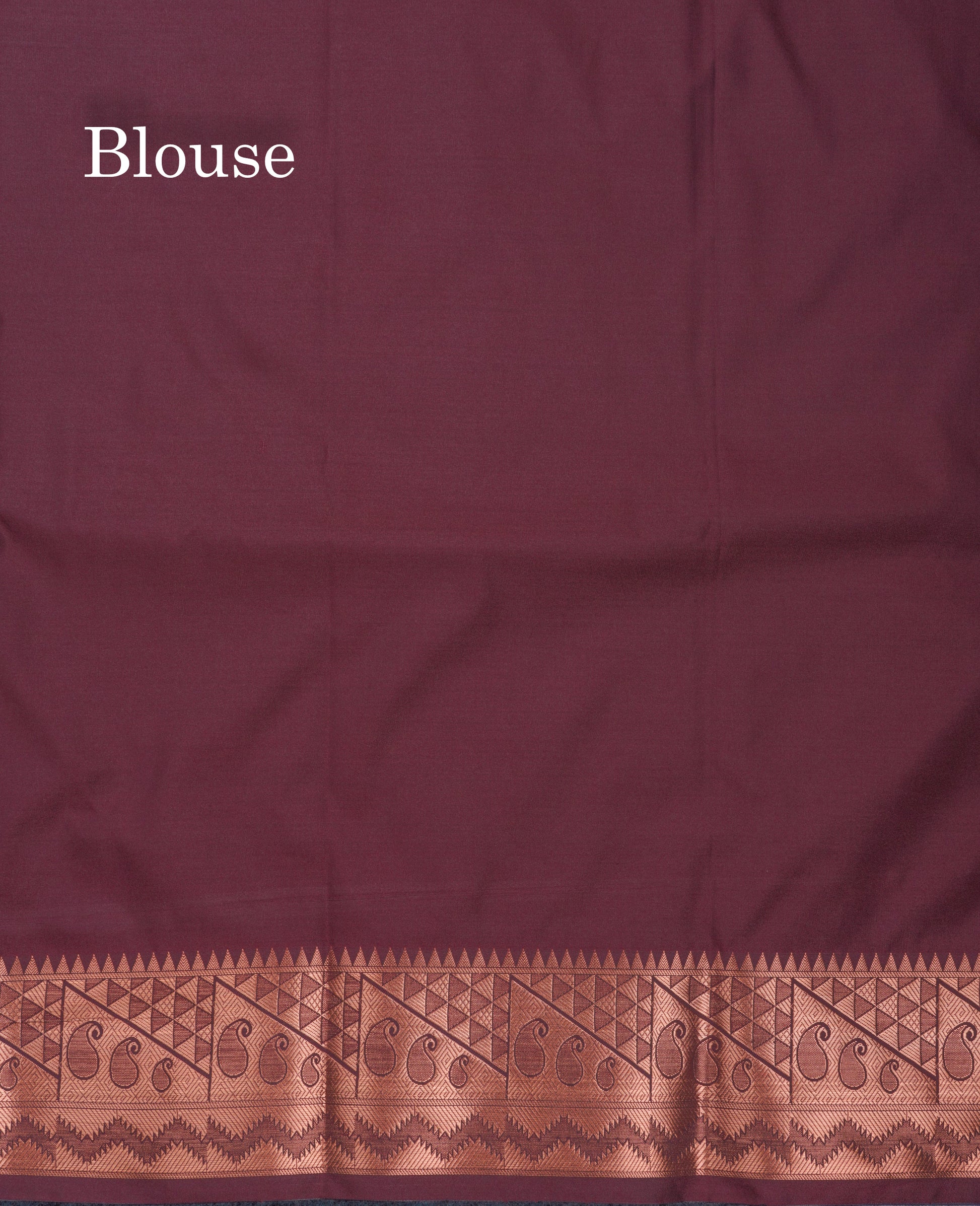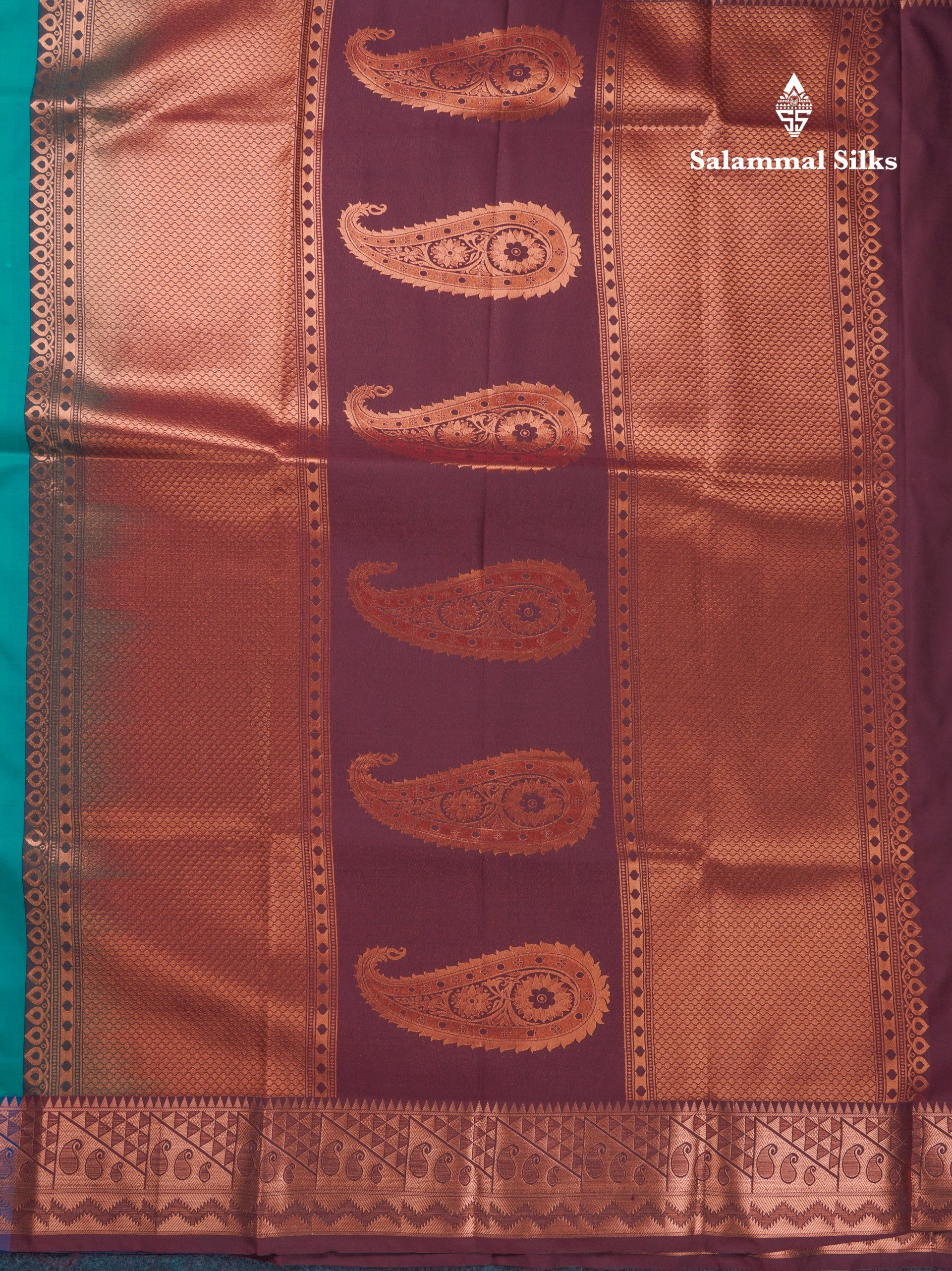 Peacock Blue Semi Silk Saree With Contrast Dark Brown Blouse