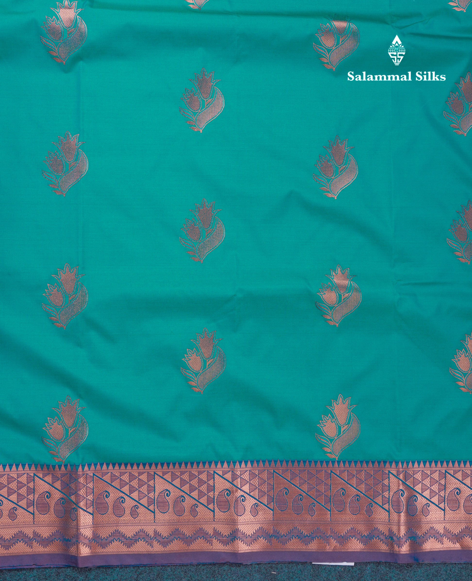 Salammal is known for its handloom sarees. In some sarees, there is cross-weaving between the body and the pallu, which is a sign of pure handloom sarees. This can be seen in Kanchipuram embossed sarees.