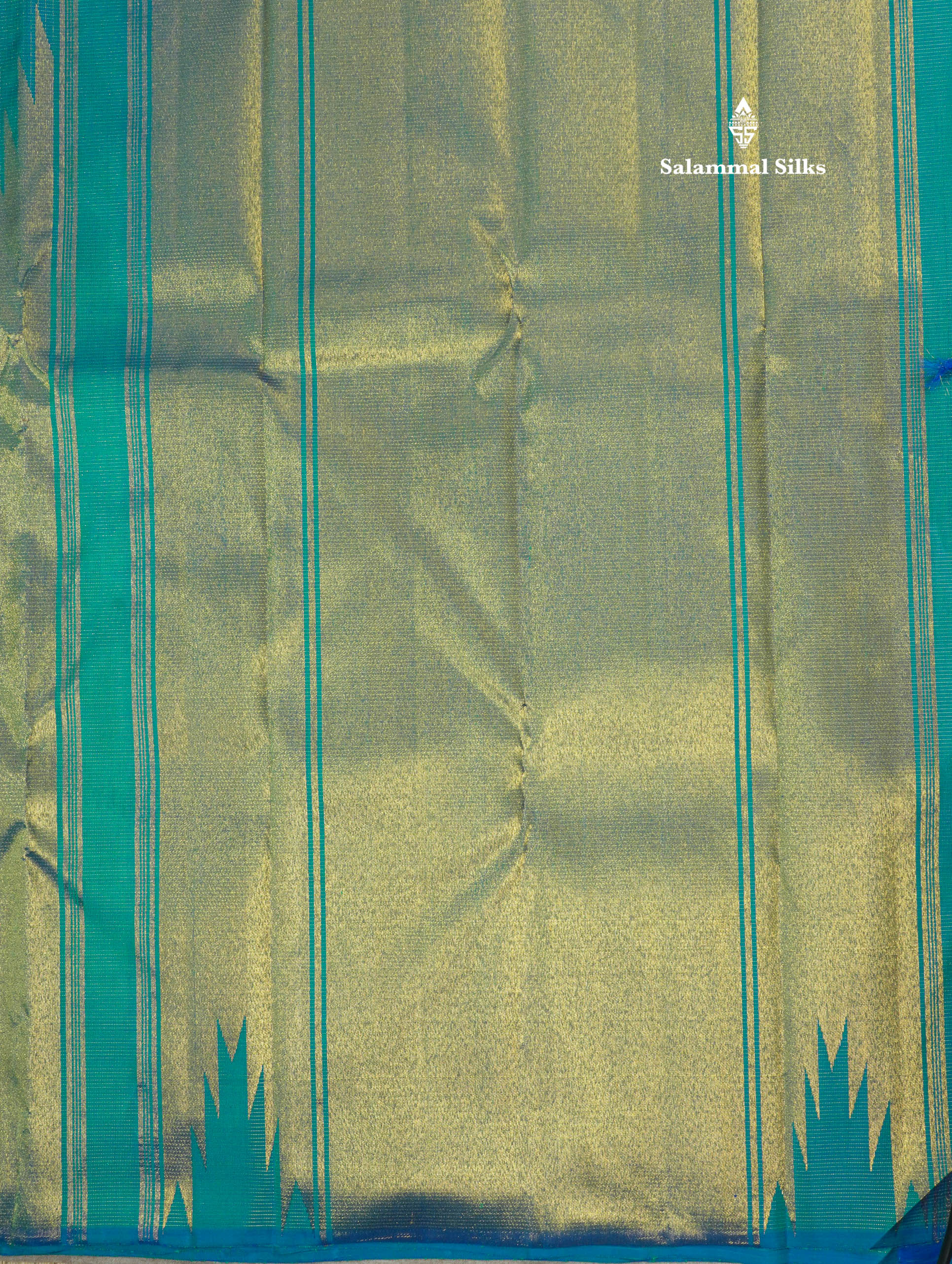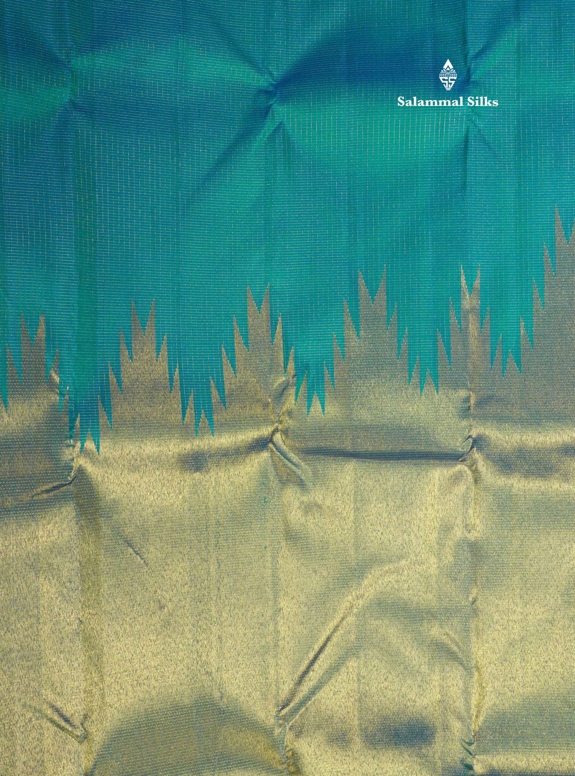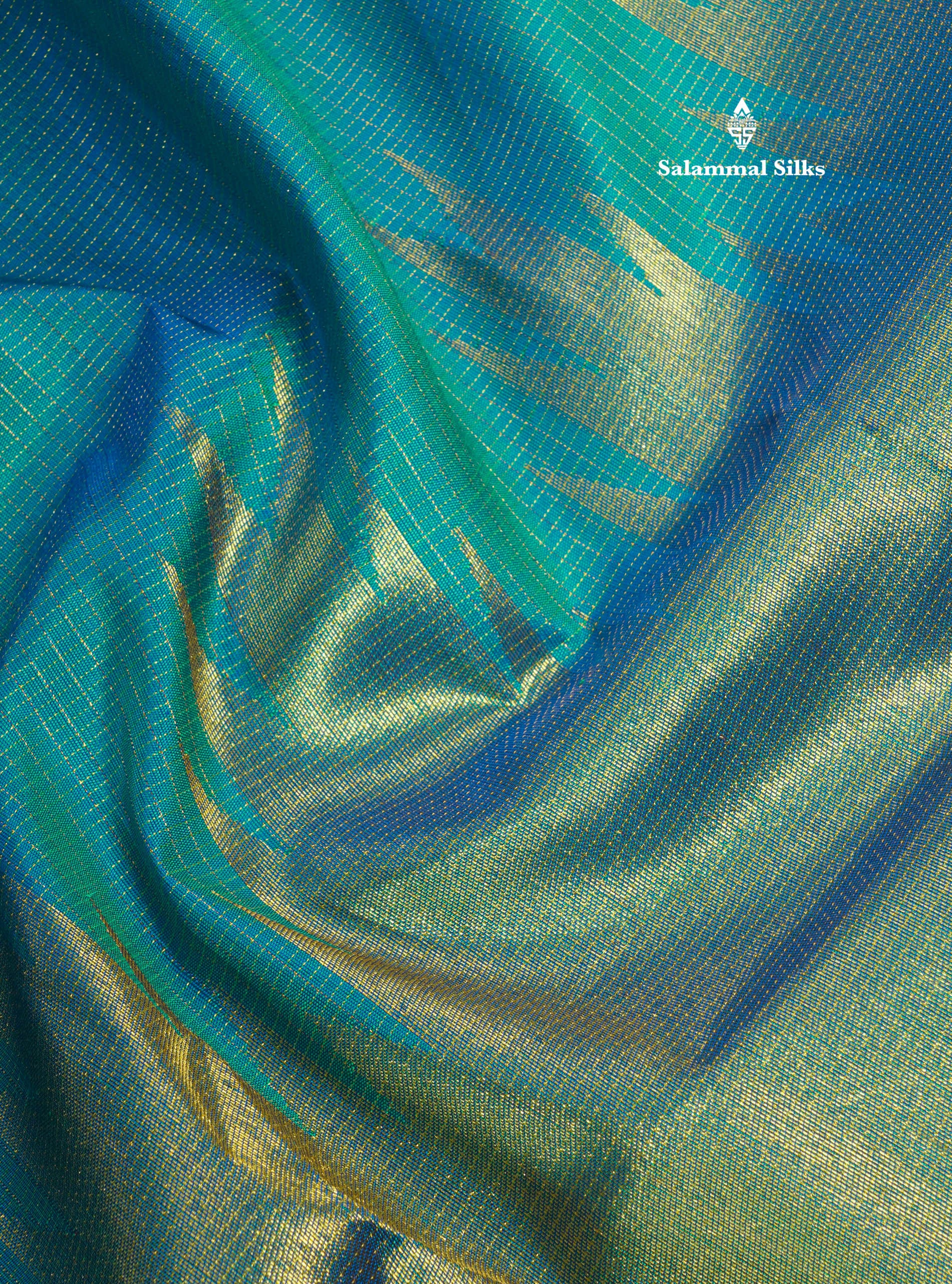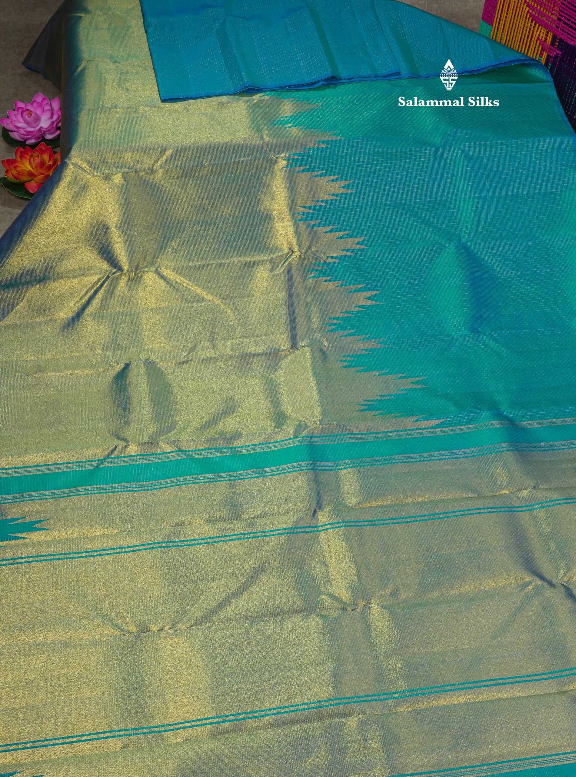 Peacock Blue Traditional Vairaoosi Checks Pure 8 Kol Kanjivaram Silk Saree With Rising Temple Border