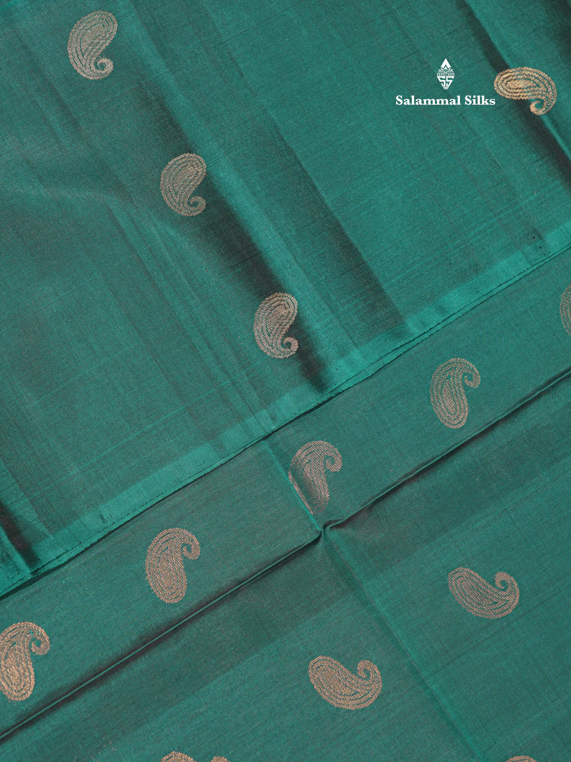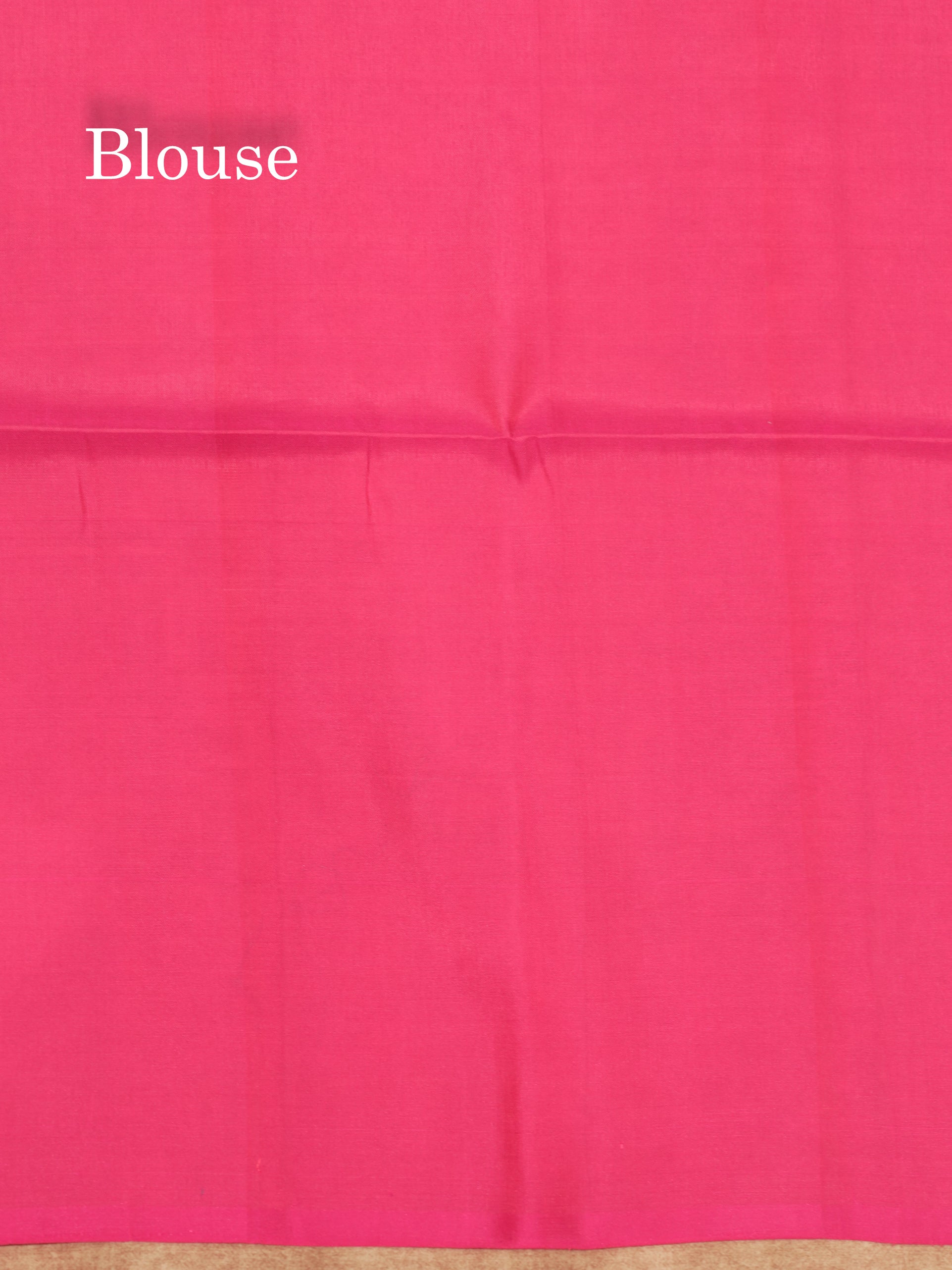Peacock Green Colour Pure Kanjivaram Soft Silk Saree With Magenta Pink Blouse