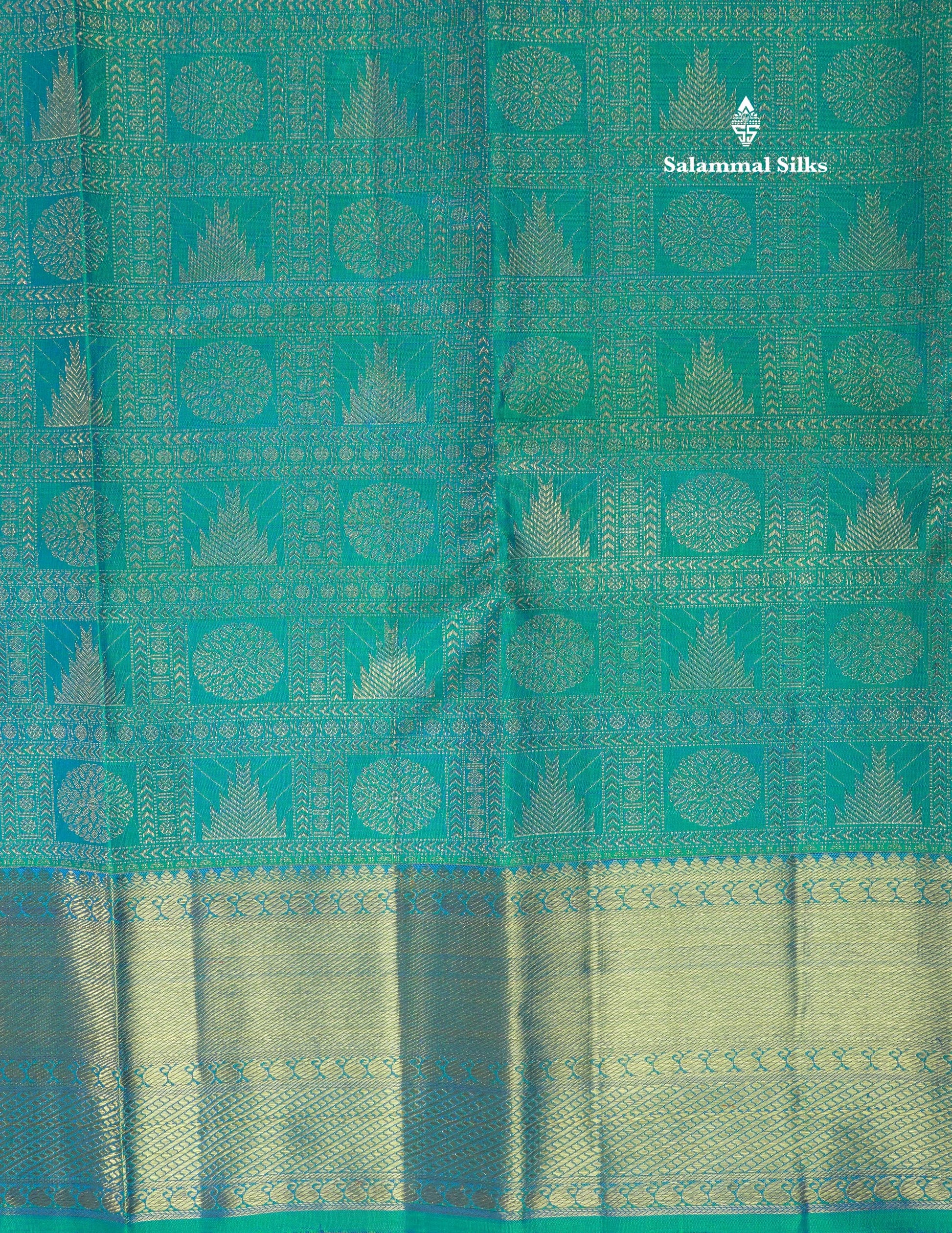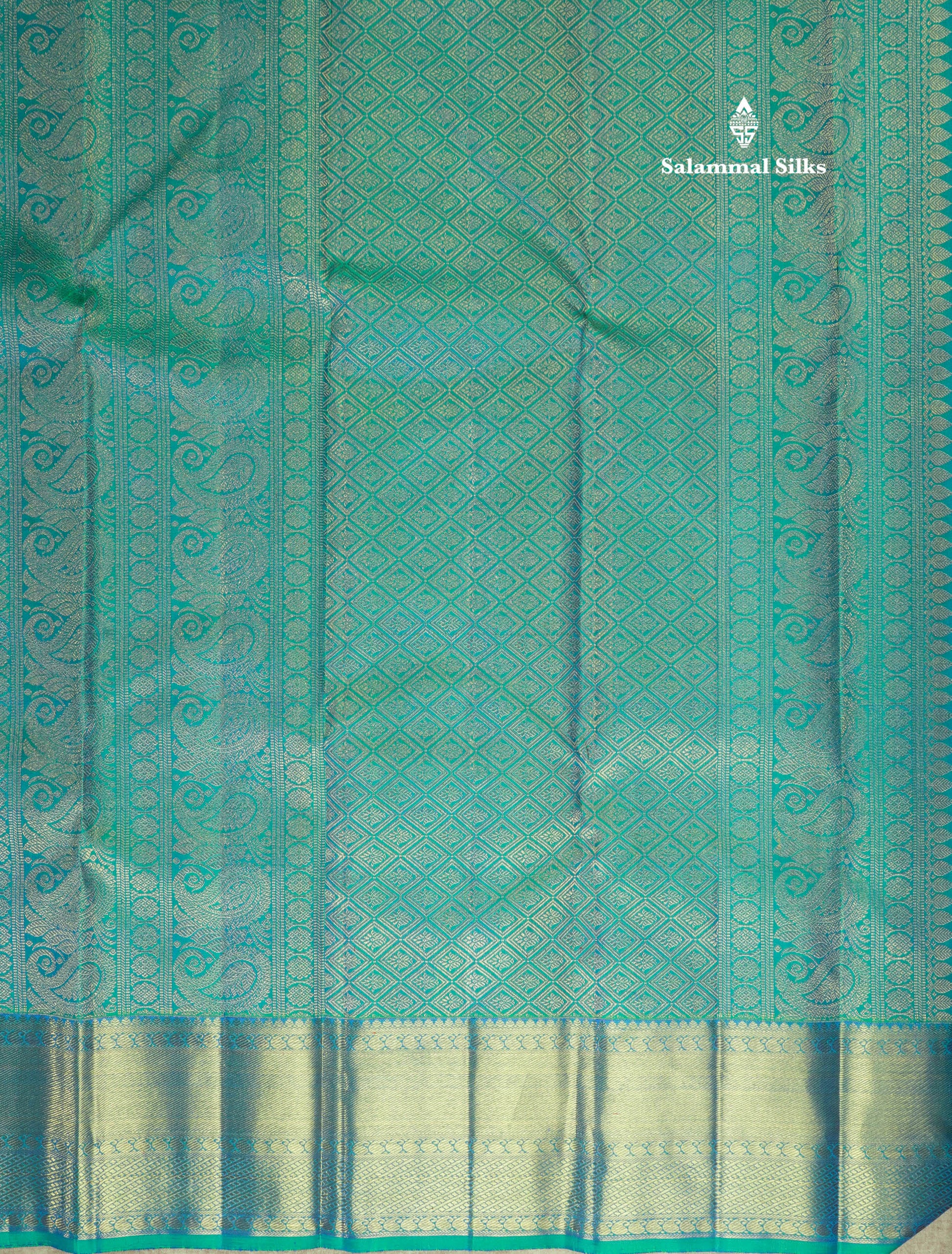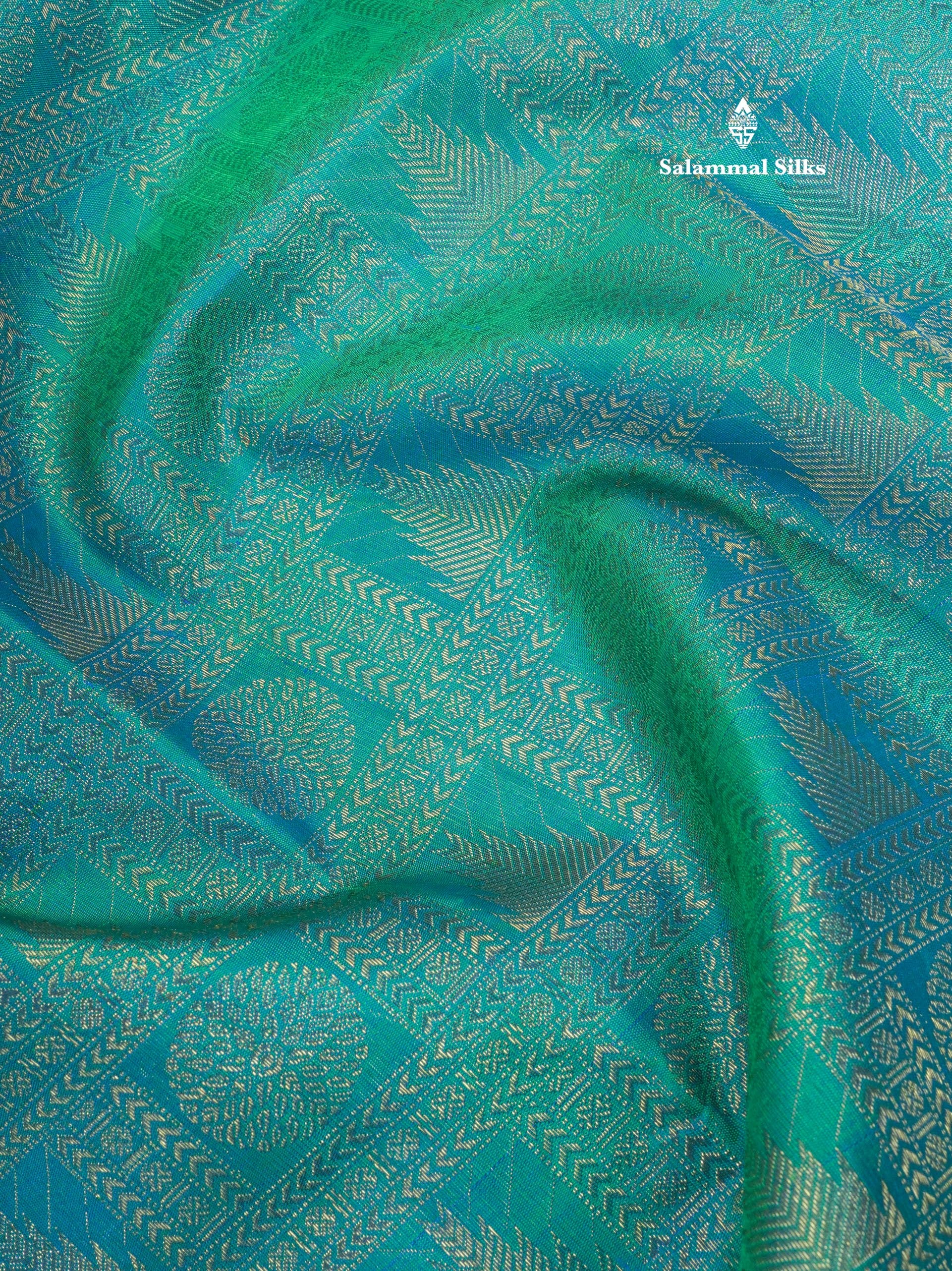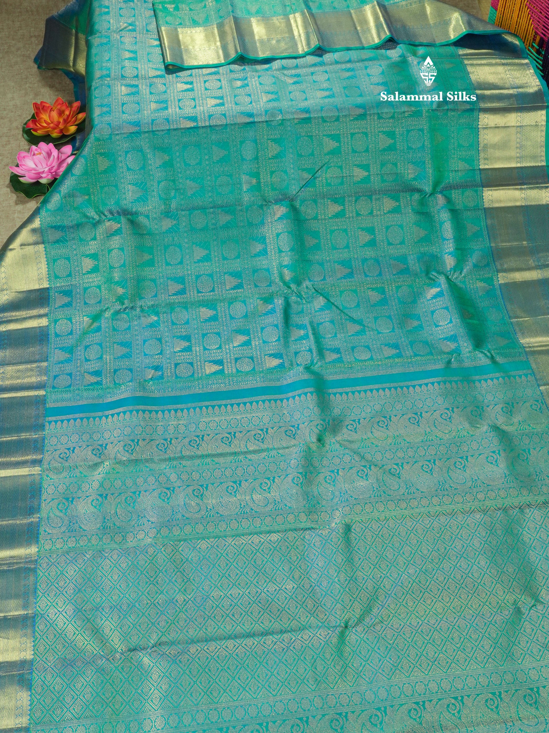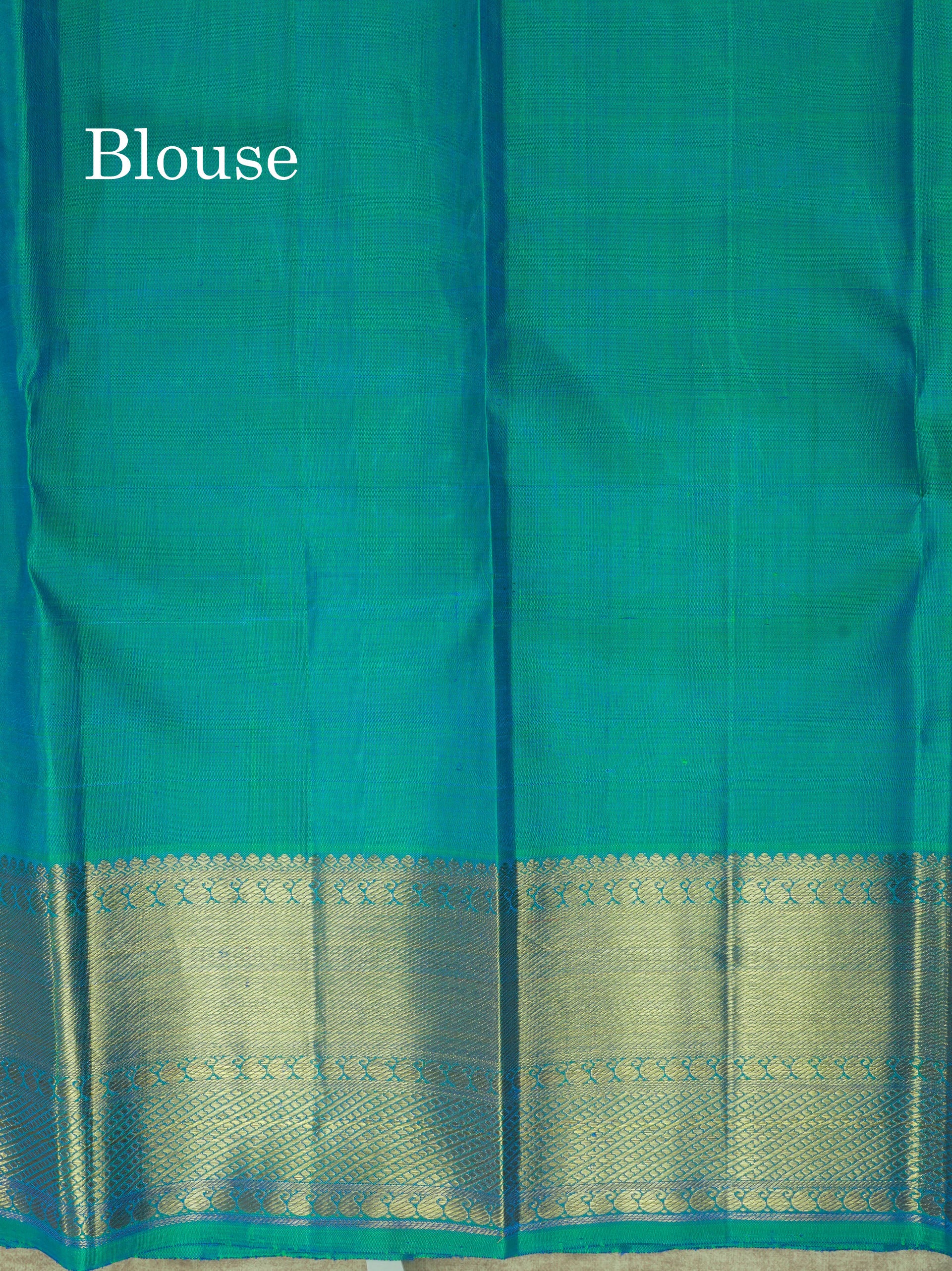 Dual Tone Peacock Blue Pure Kanjivaram Silk Saree Pure Zari (3G) with Traditional Gold Zari Border