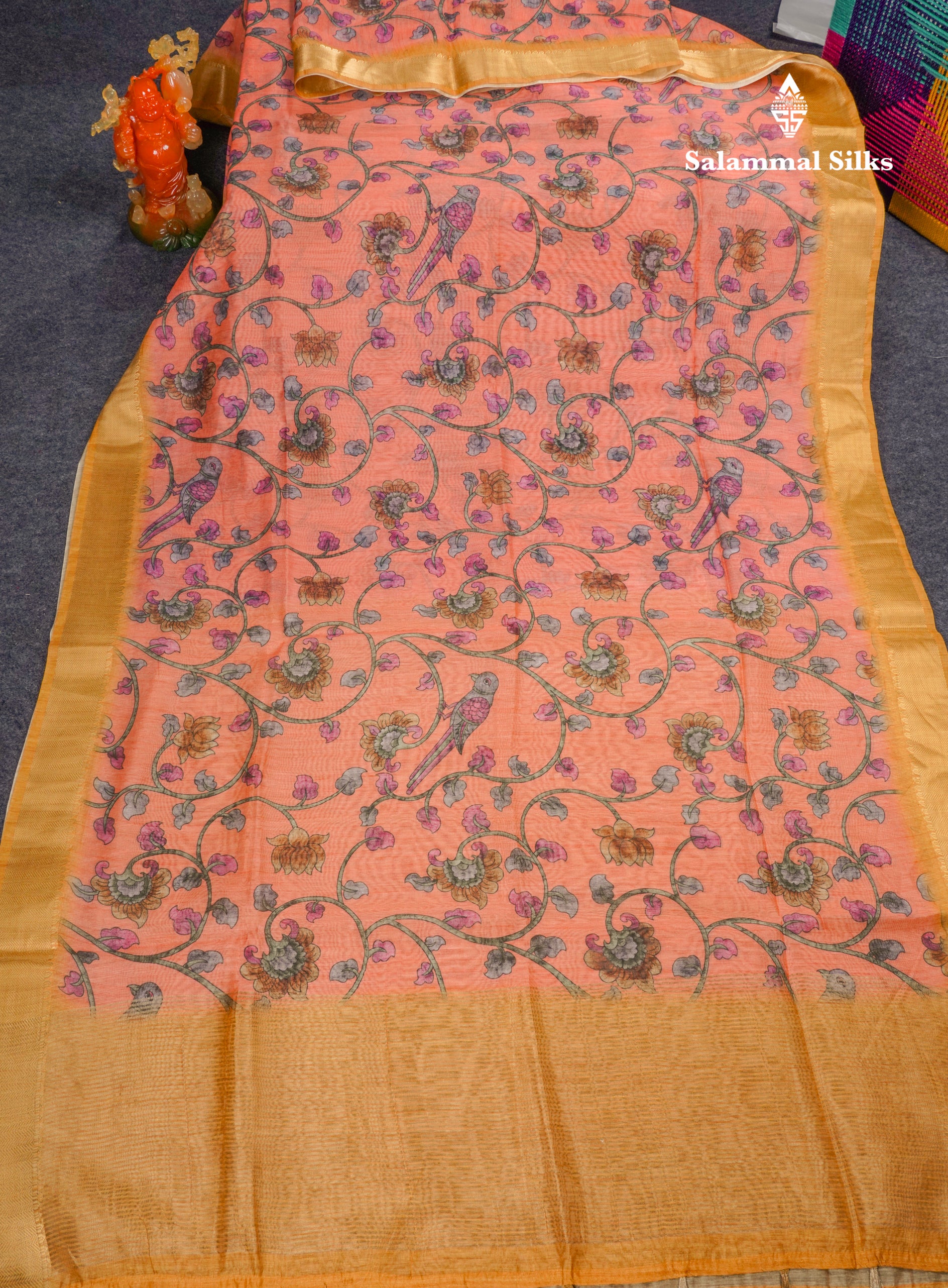 Pink Chanderi Mixed Cotton Saree With Contrast Orange Blouse