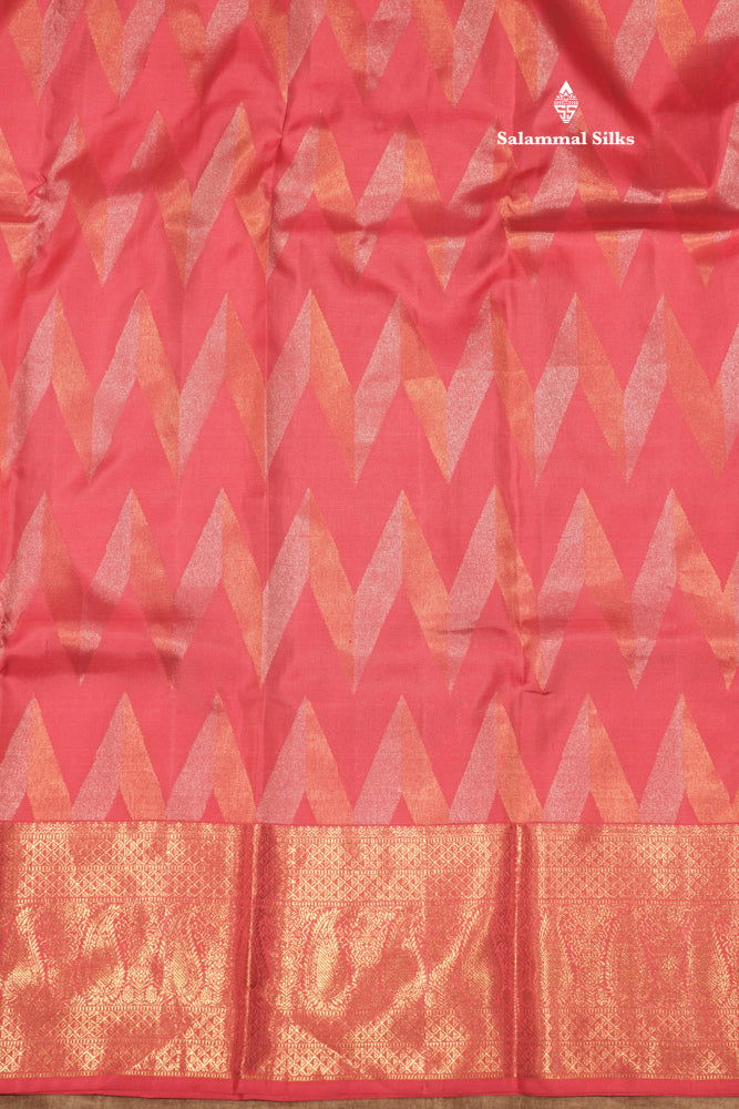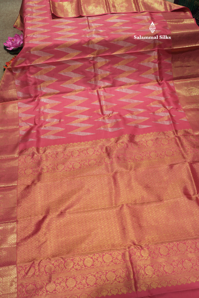 Pink Colour Pure Kanjivaram Silk Saree With Gold Zari Border