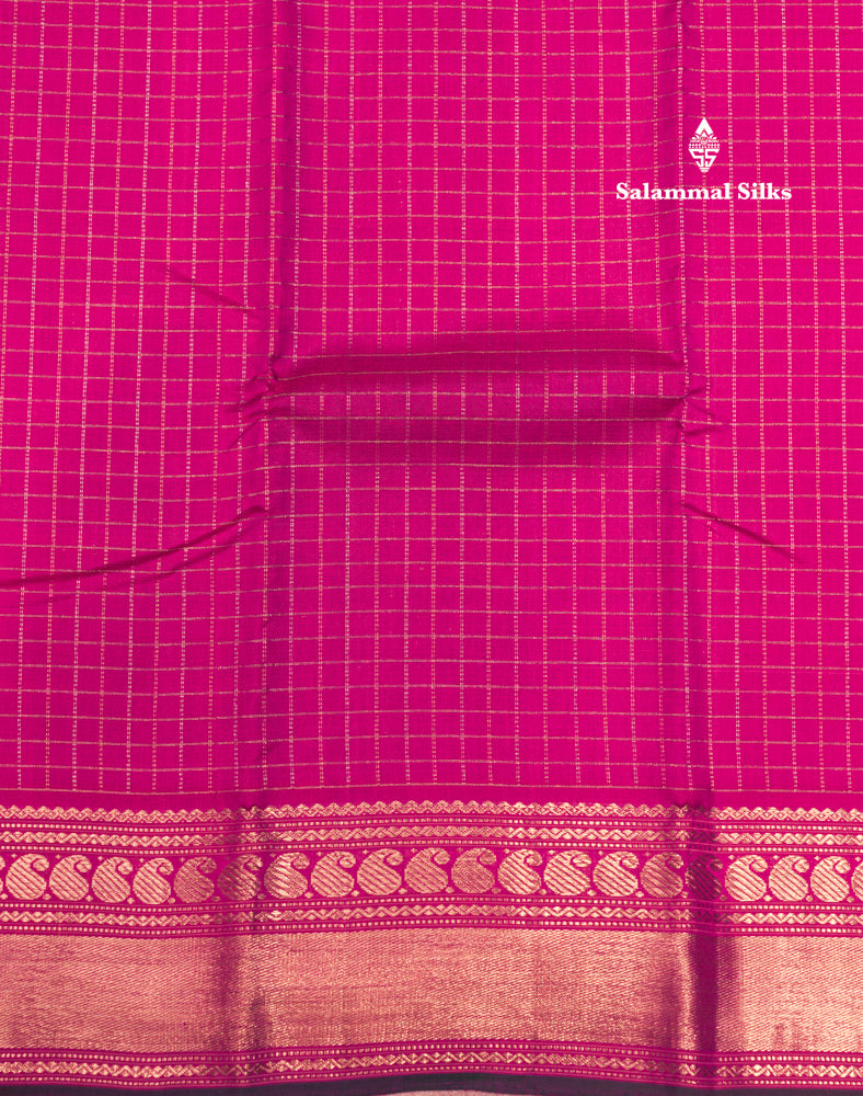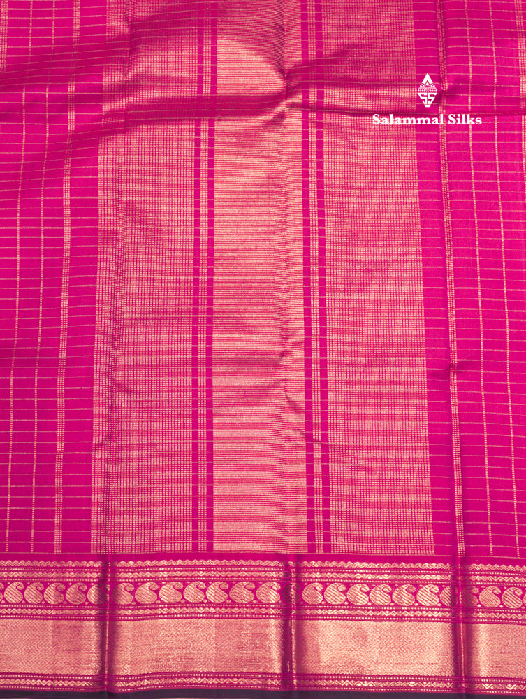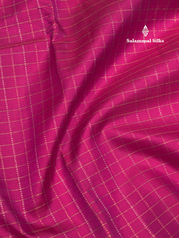 Pink Colour Small Checks Kanjivaram Pure Silk Saree With Traditional Border