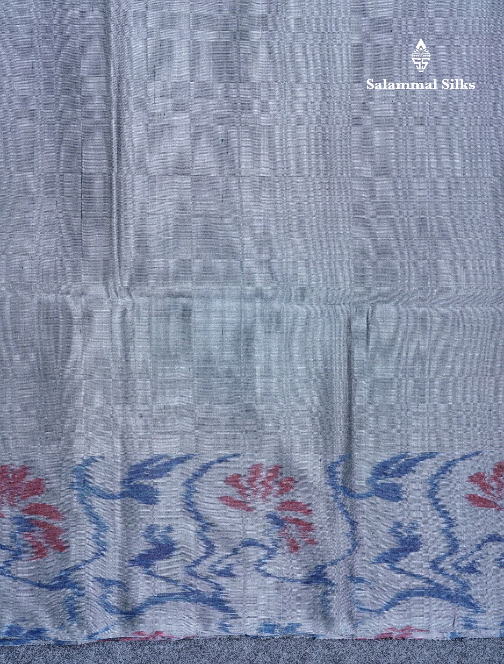 Pink Pure Kanjivaram Soft Silk Saree With Grey Beautiful Pochampalli Border