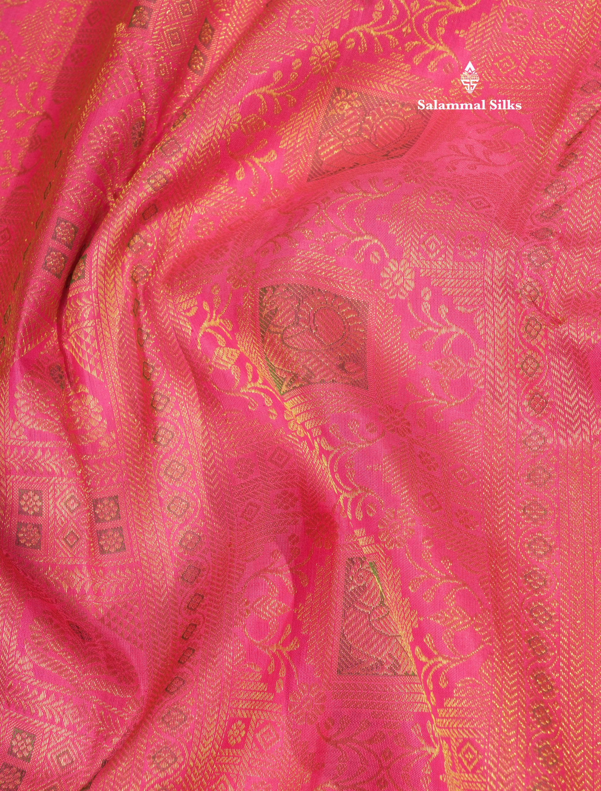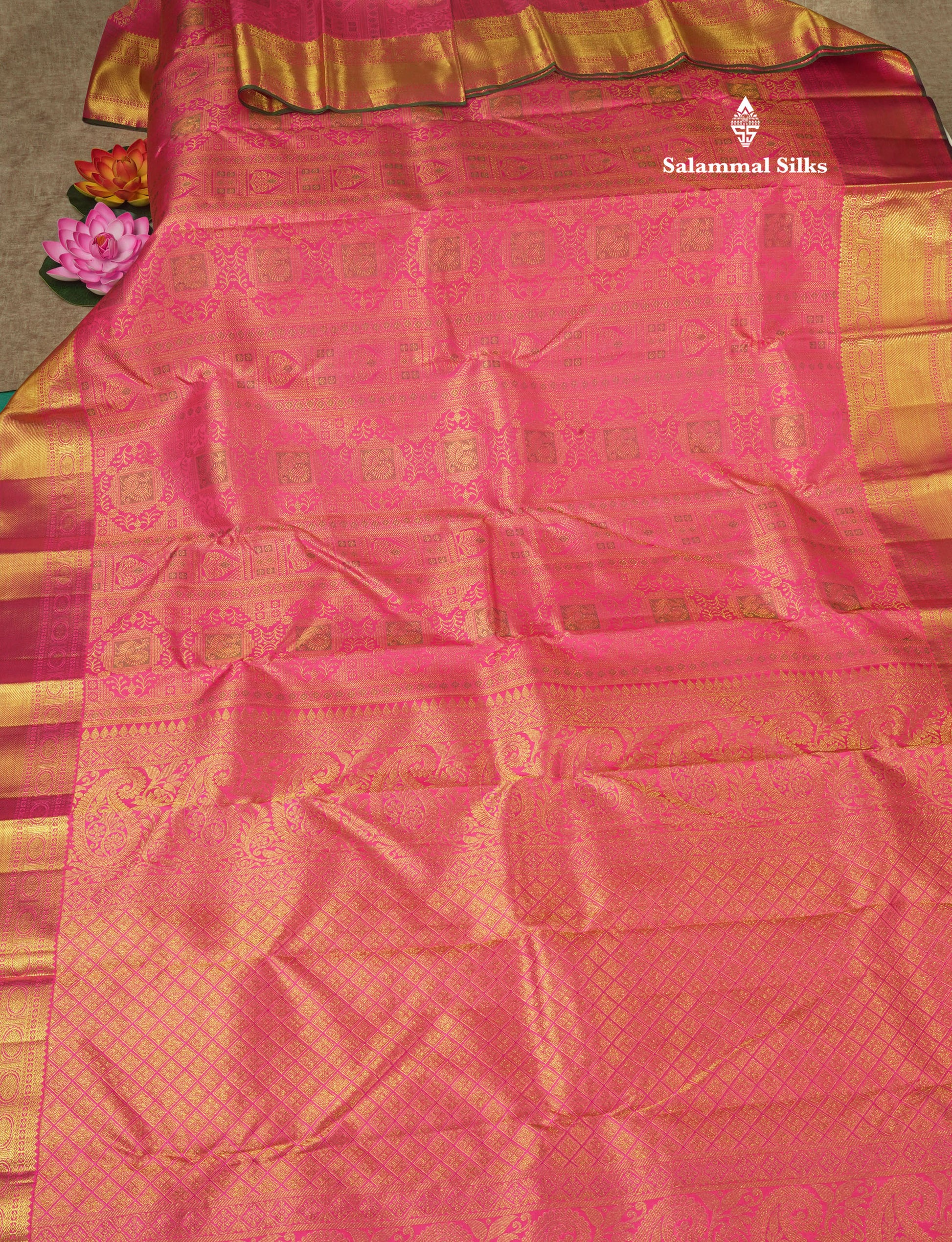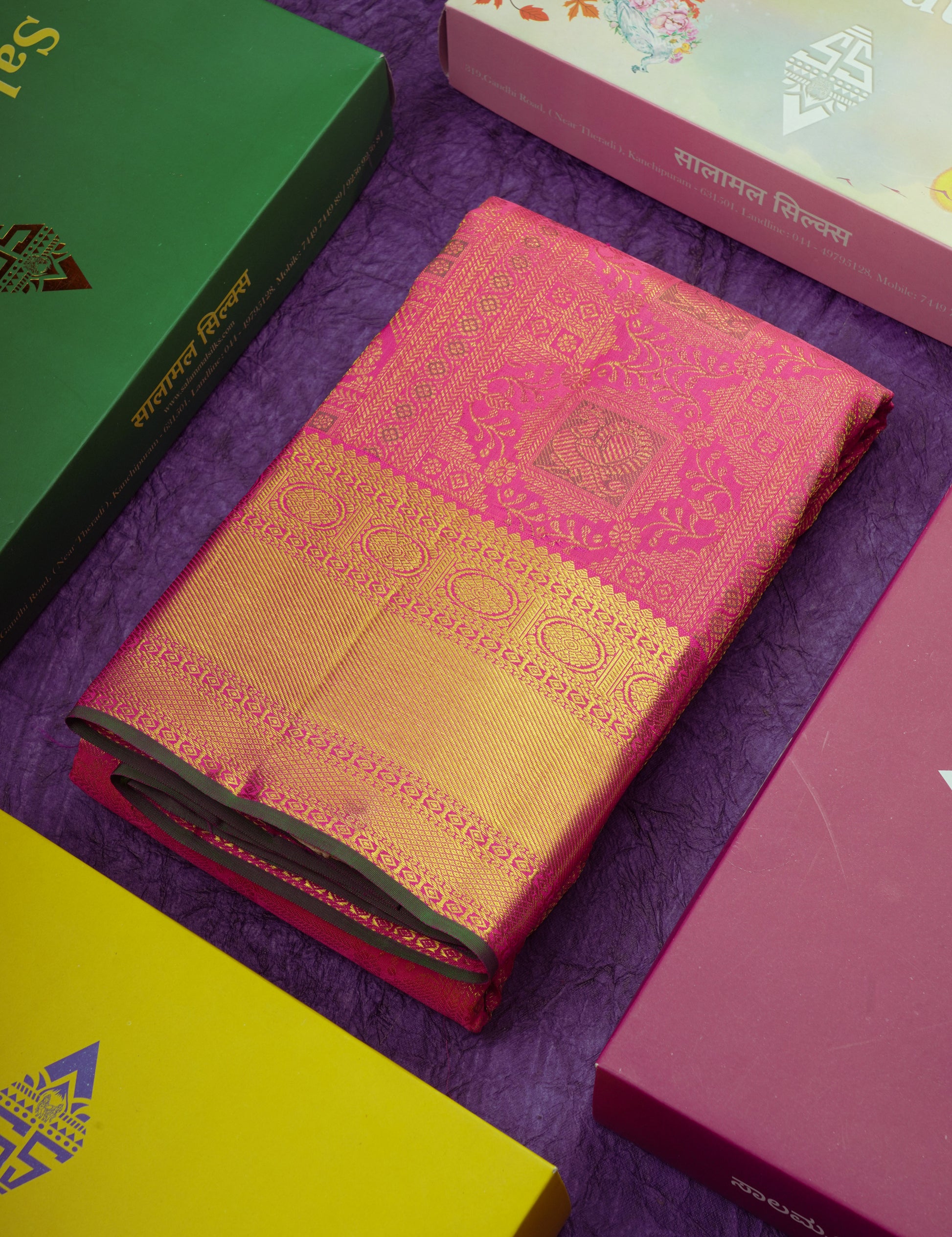 Beautiful Pink Bridal Pure Kanjivaram Silk Saree With Meenakari Work