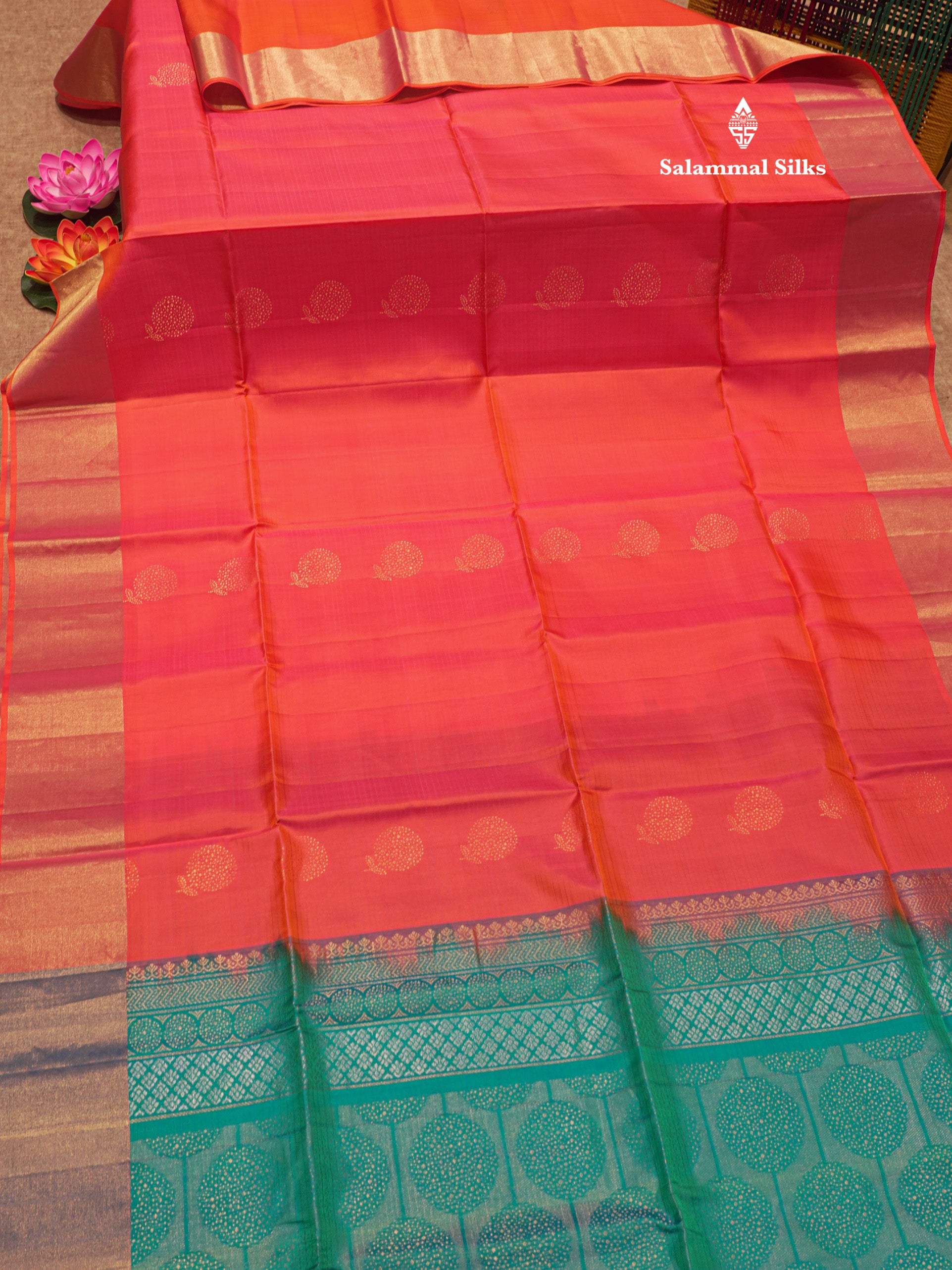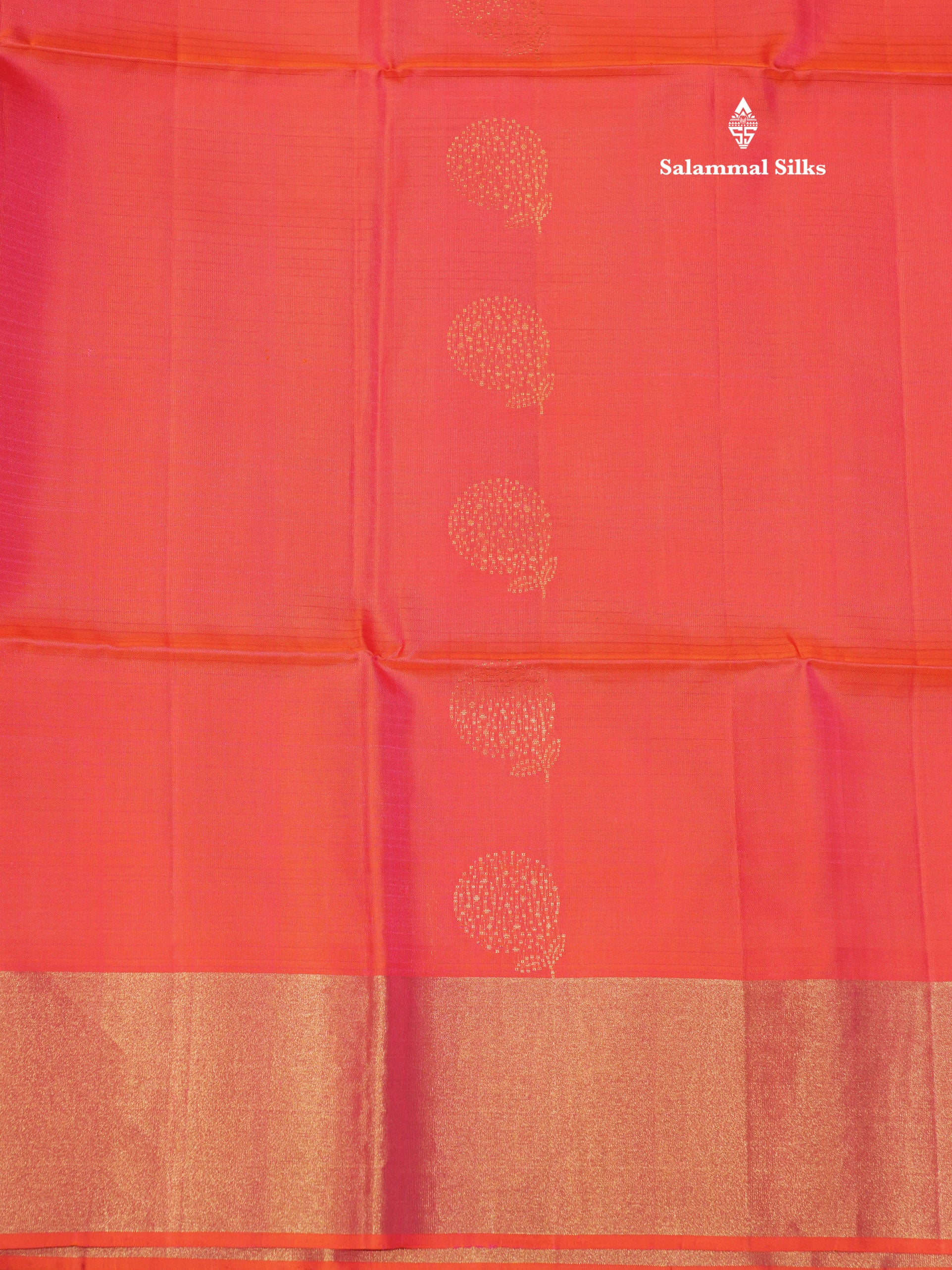 Pinkish Orange Colour Pure Kanjivaram Soft Silk Saree With Copper Zari Border