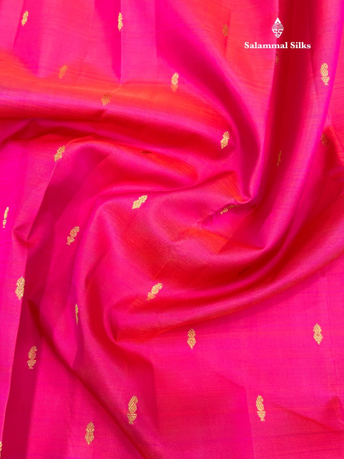Salammal is known for its handloom sarees. In some sarees, there is cross-weaving between the body and the pallu, which is a sign of pure handloom sarees. This can be seen in Kanchipuram embossed sarees.