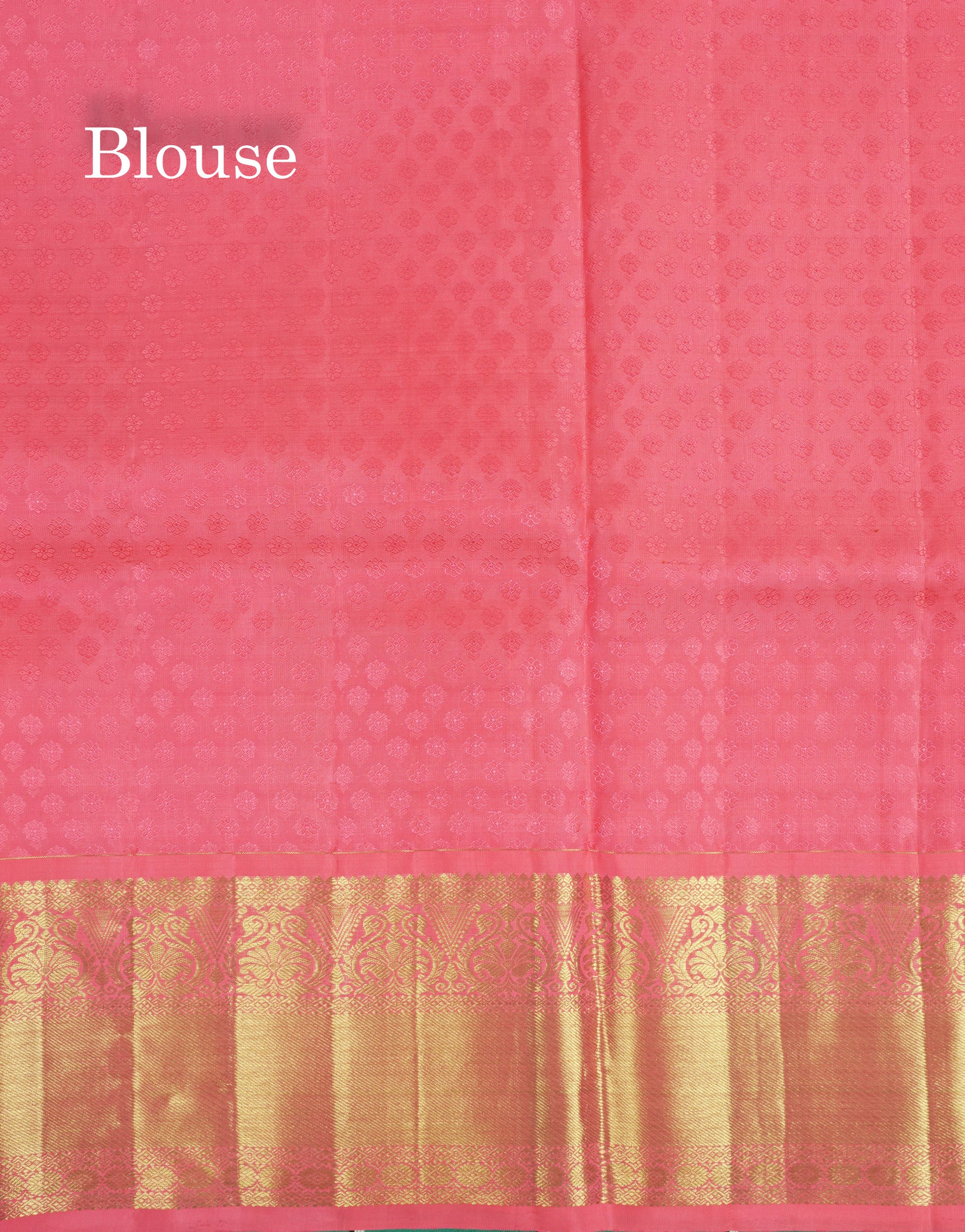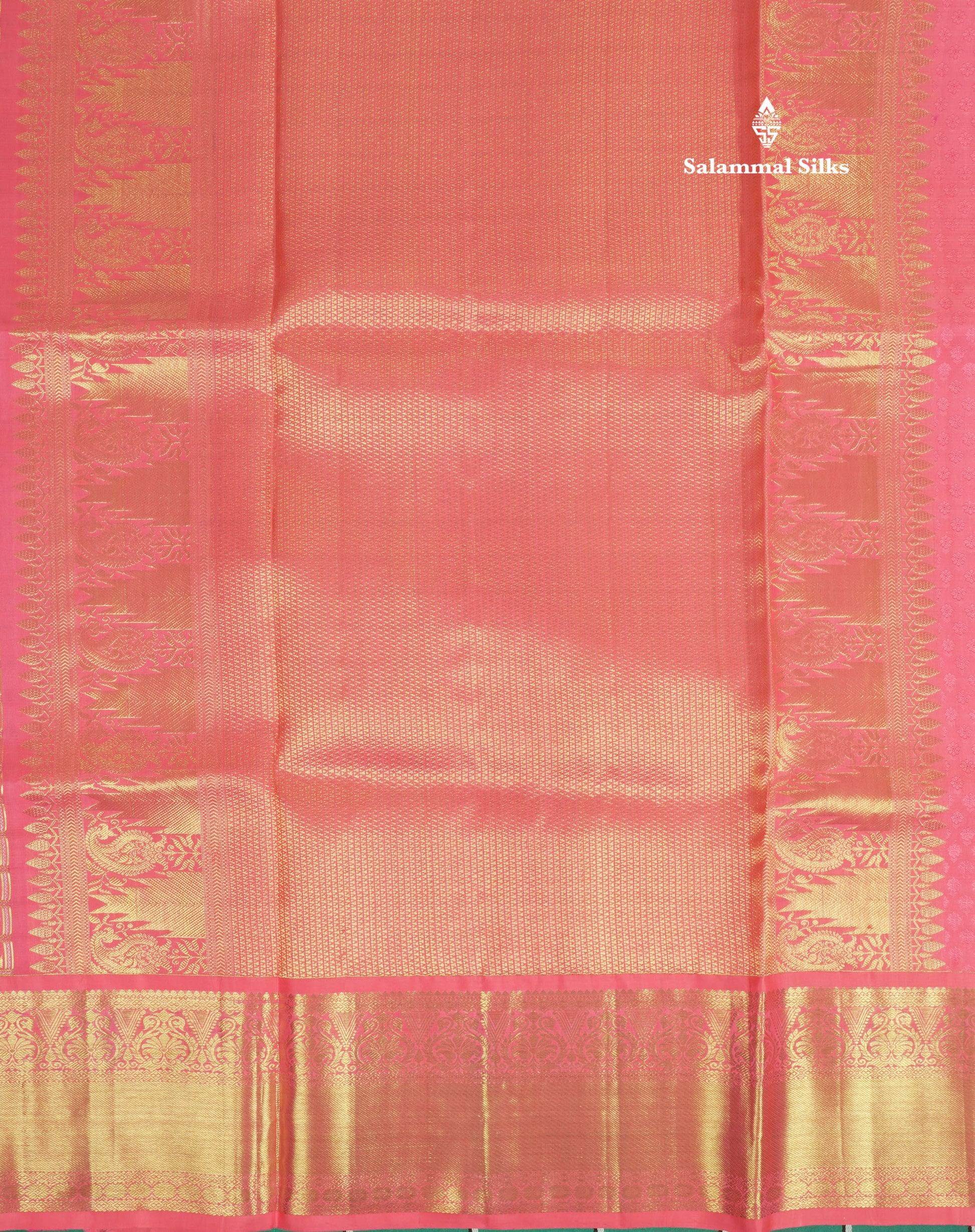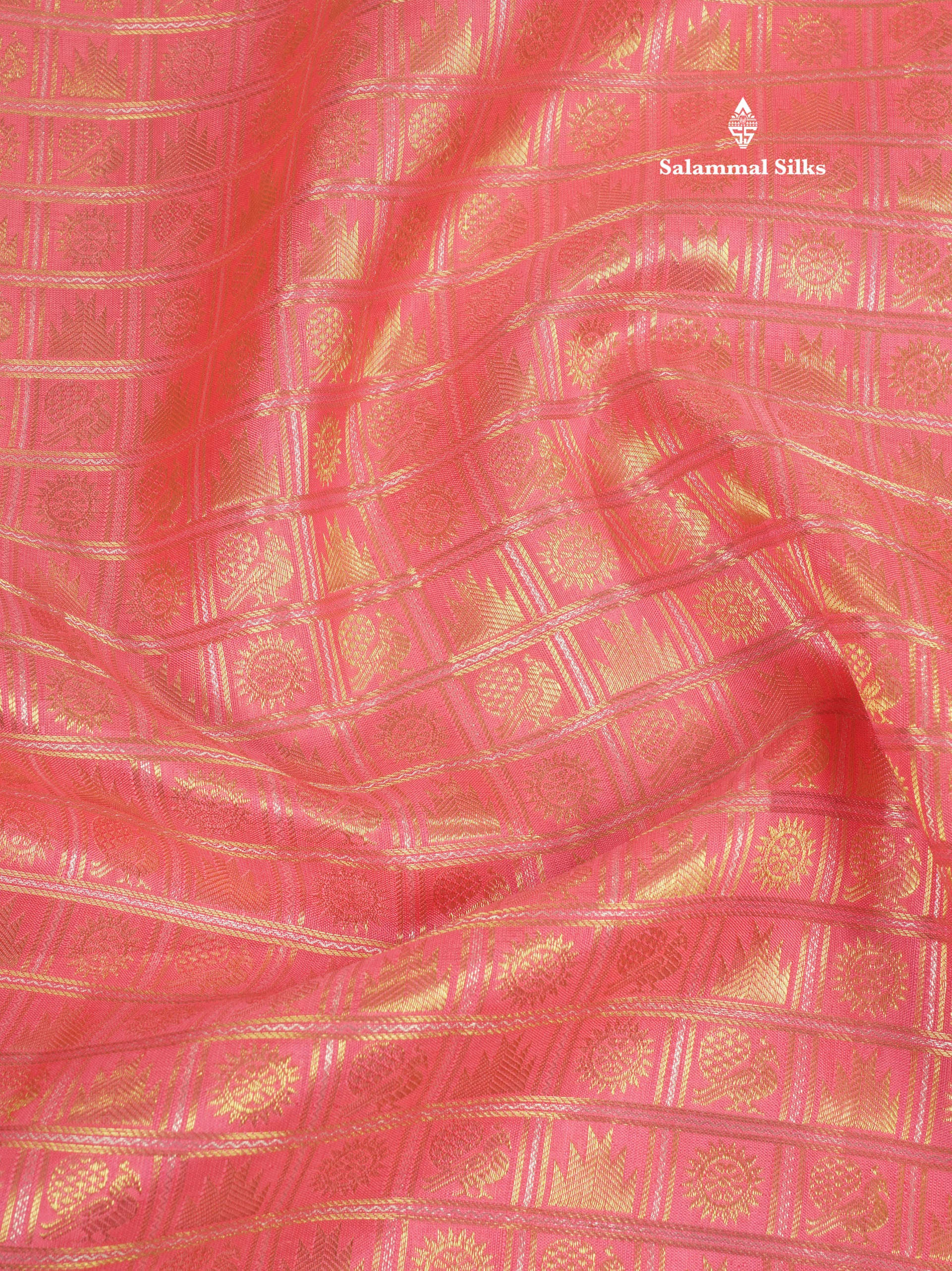 Pinkish Peach Checks With Traditional Butta Bridal Pure Kanjivaram Silk Saree With Self Border