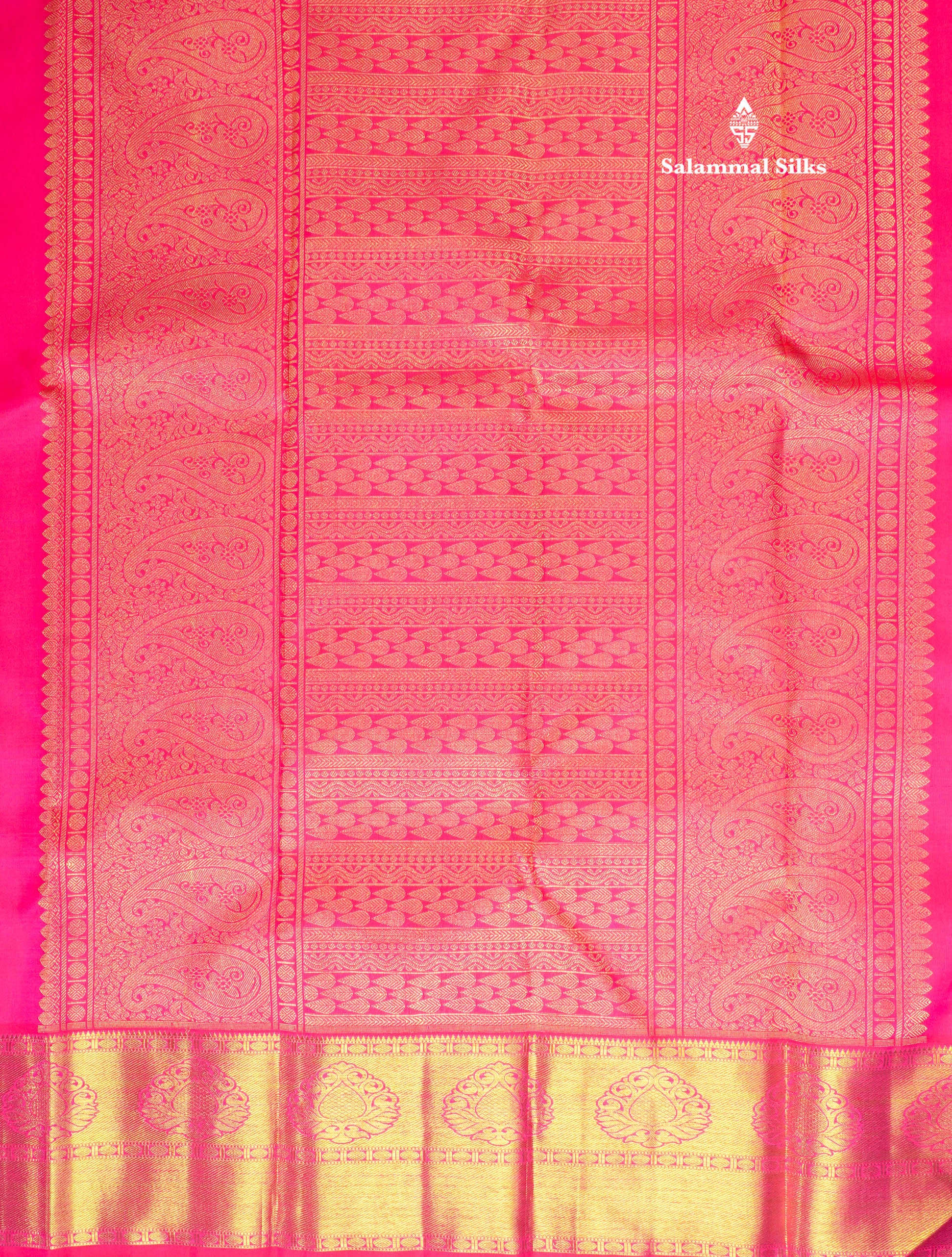 Pinkish Red Pure Kanjivaram Silk Pure Zari Saree with Gold Zari Border