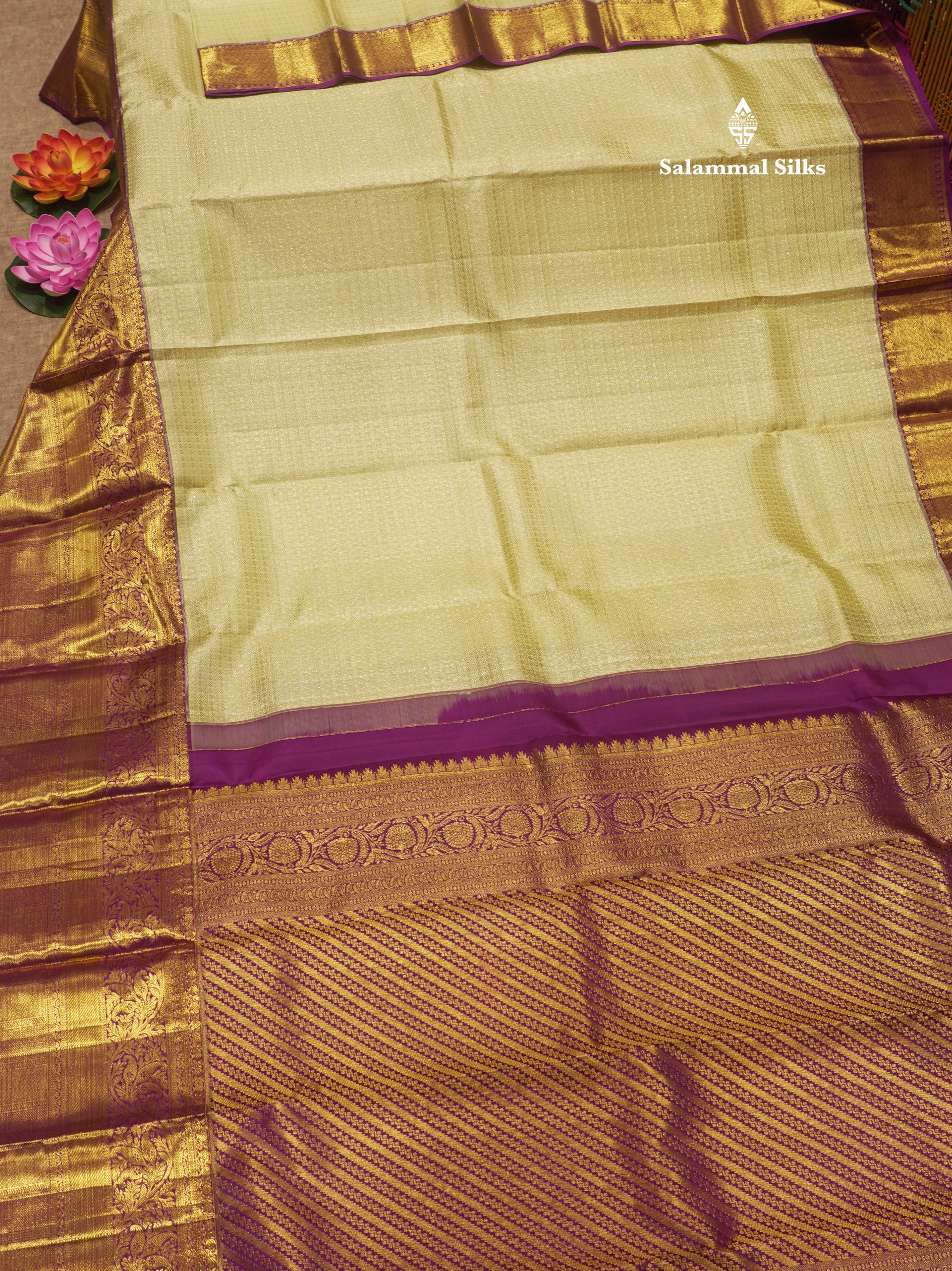 Pista Green Colour Pure Kanjivaram Silk Saree With Contrast Vadamalli Border