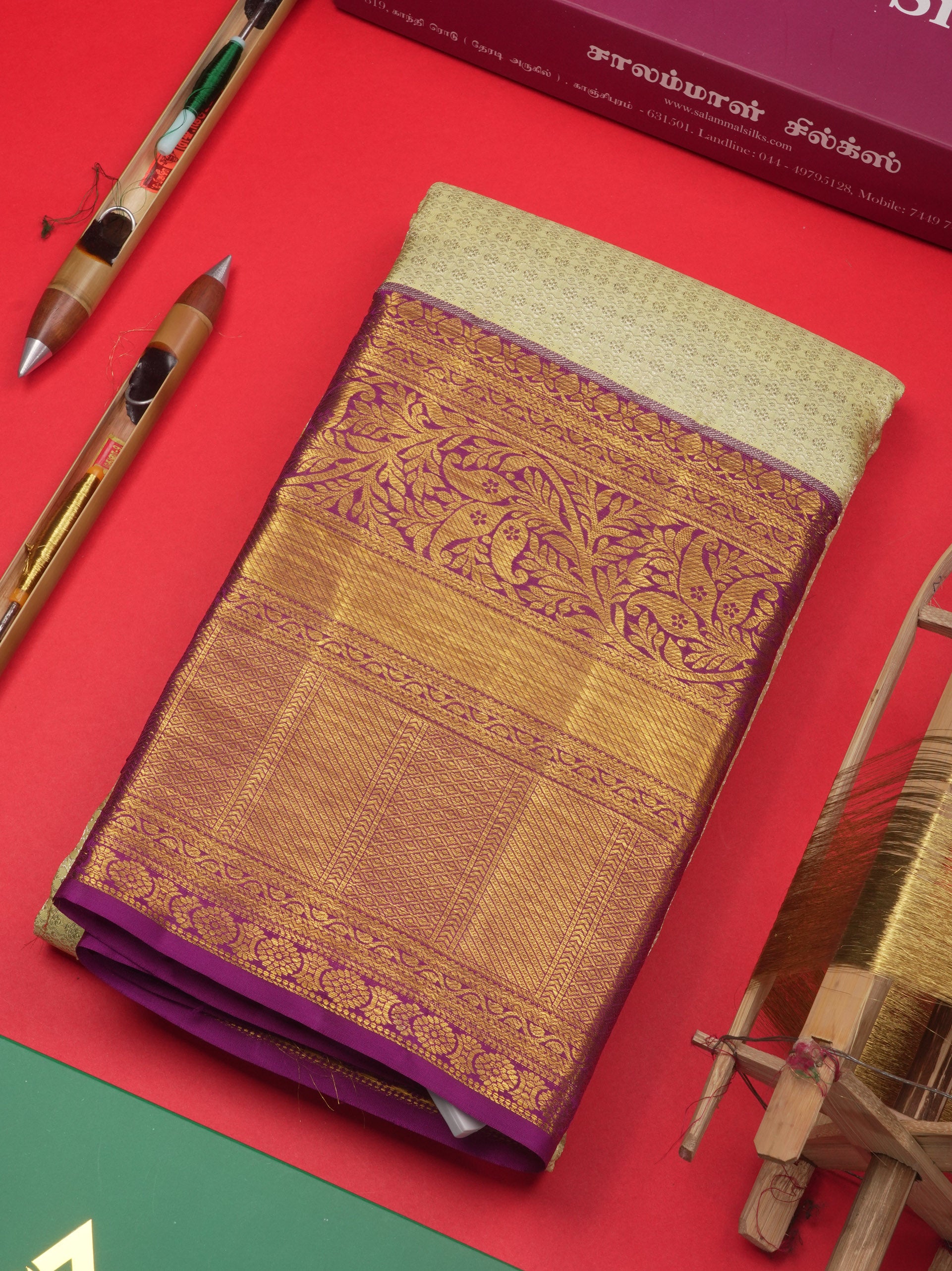 Salammal is known for its handloom sarees. In some sarees, there is cross-weaving between the body and the pallu, which is a sign of pure handloom sarees. This can be seen in Kanchipuram embossed sarees.
