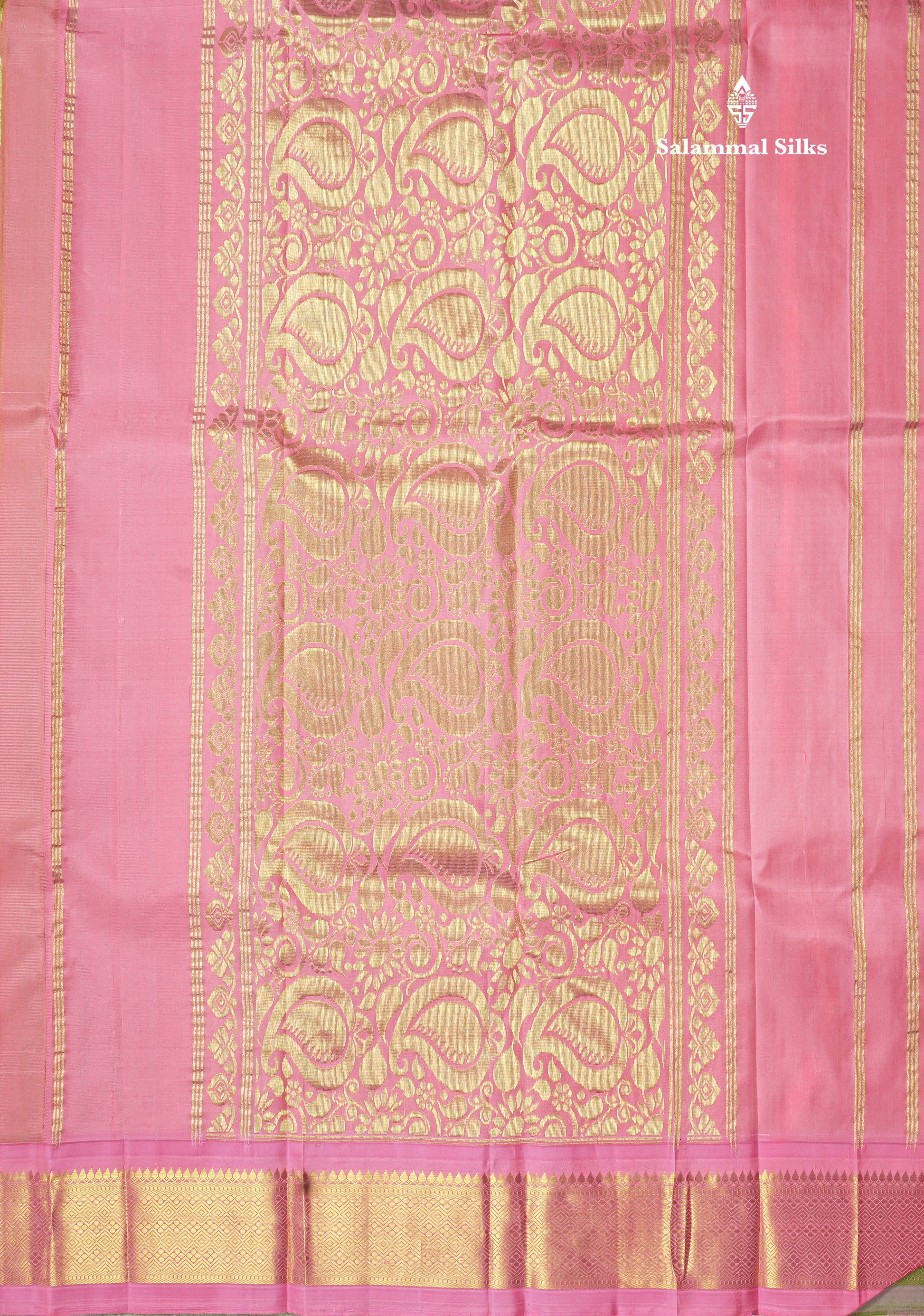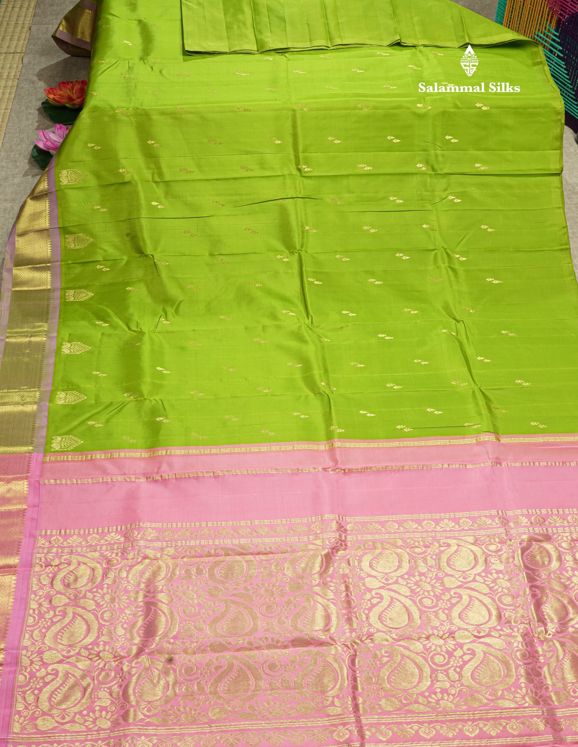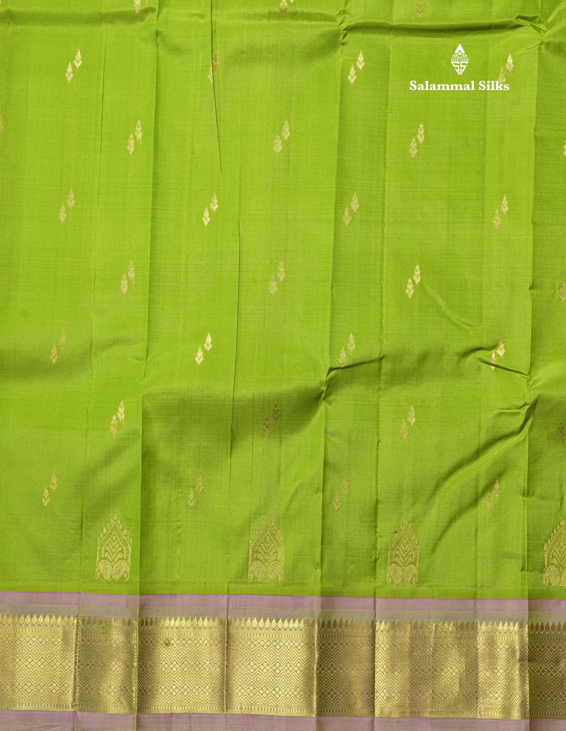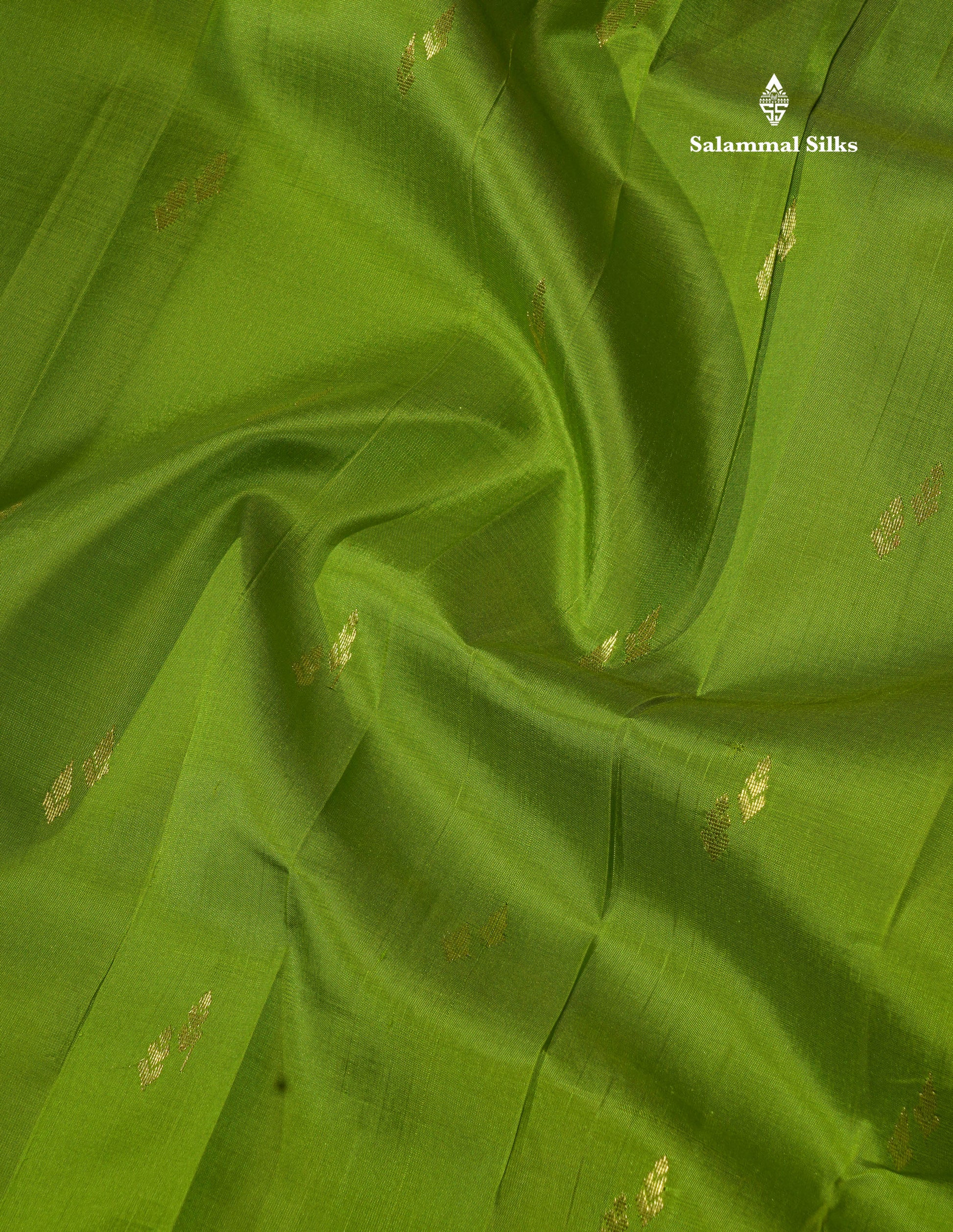 Pista Green Pure Kanjivaram Silk Saree With One Side Traditional Border