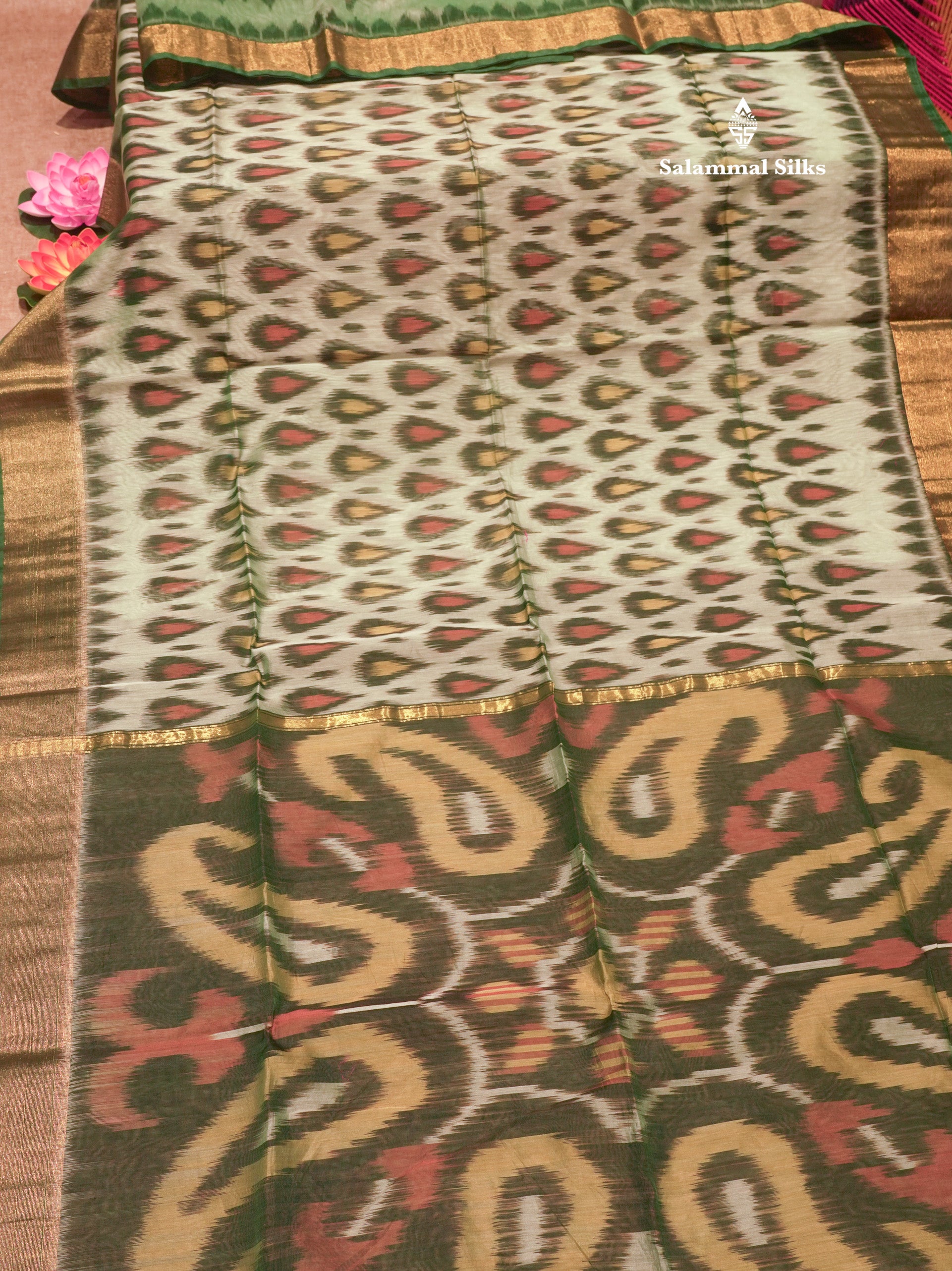 Premium Light Green Colour Pochampalli SICO Cotton Saree With Gold Zari Border