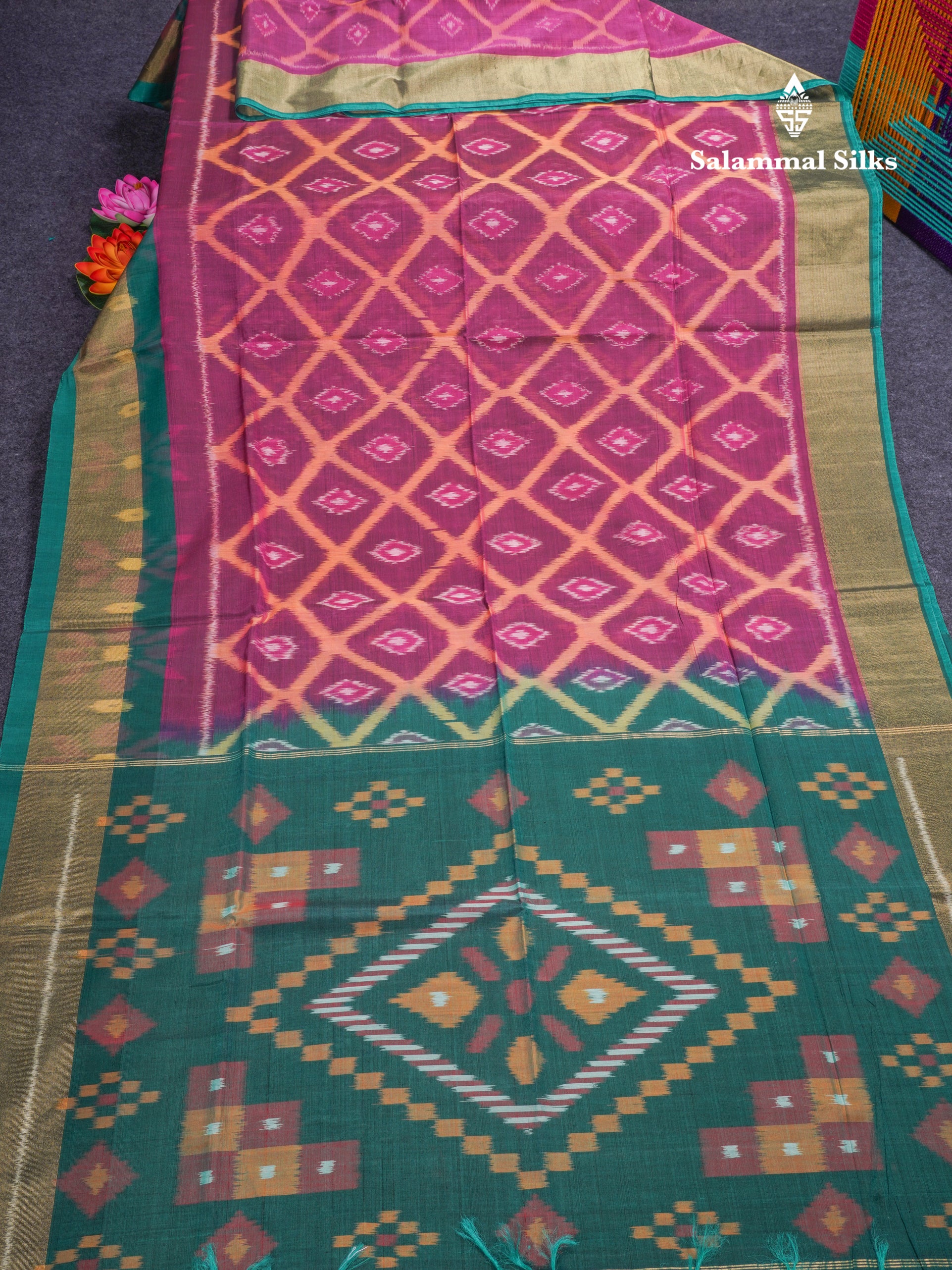 Premium Magenta Colour Pochampalli SICO Cotton Saree With Contrast Bottle Green Border