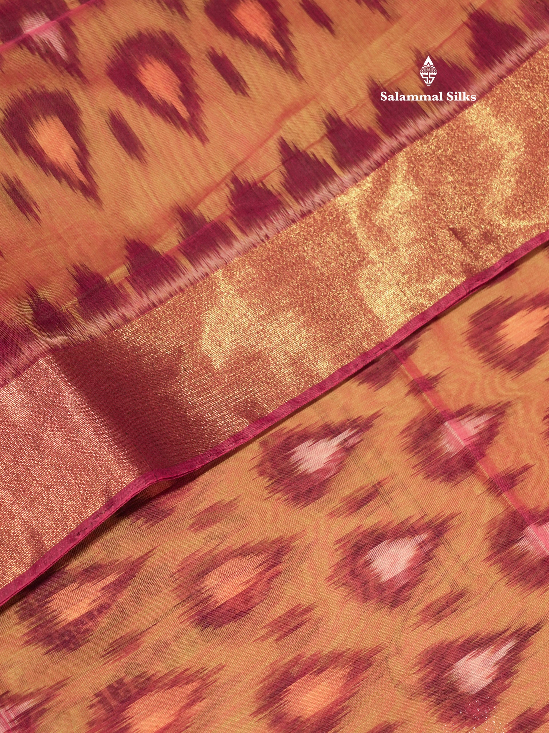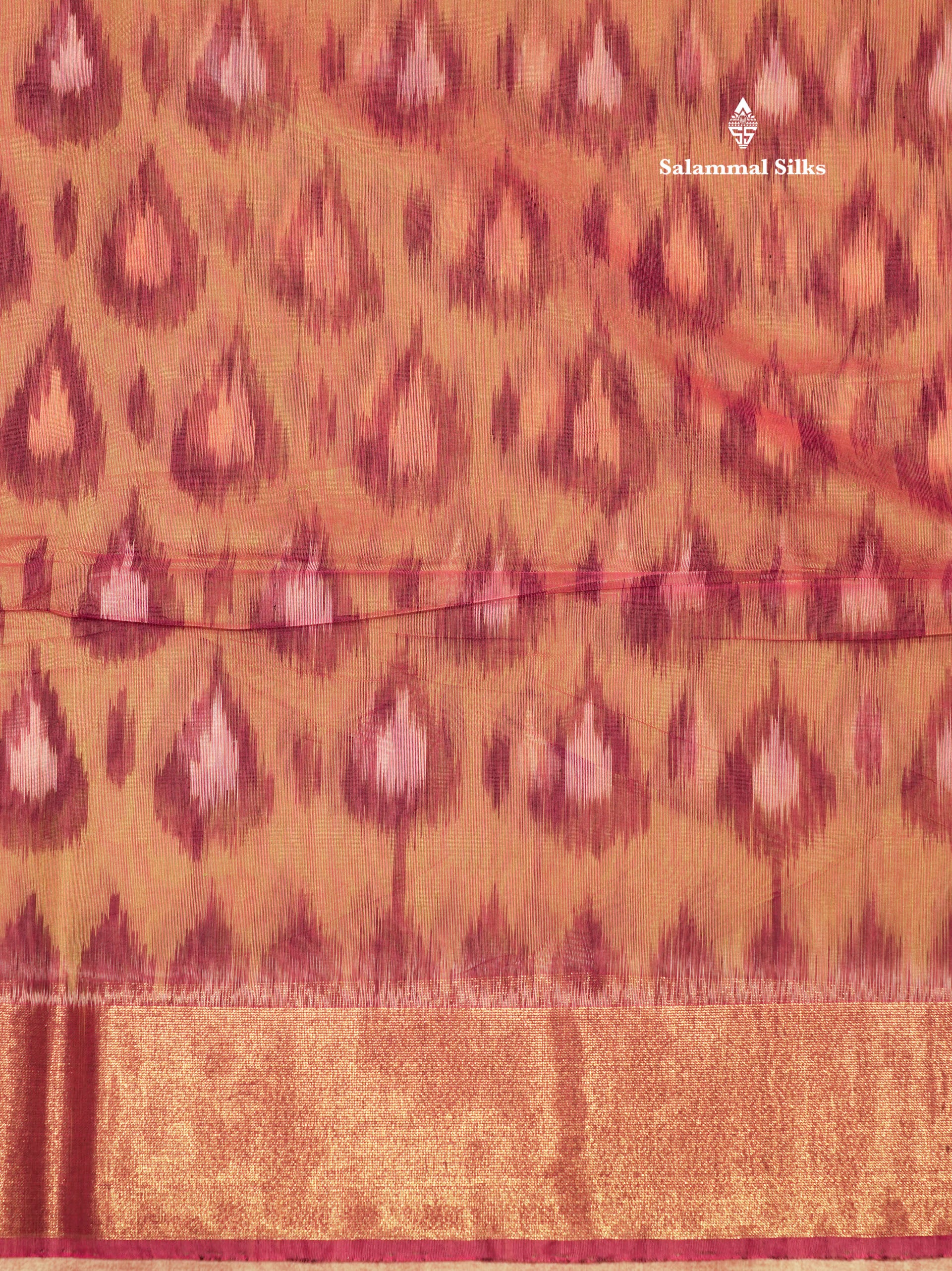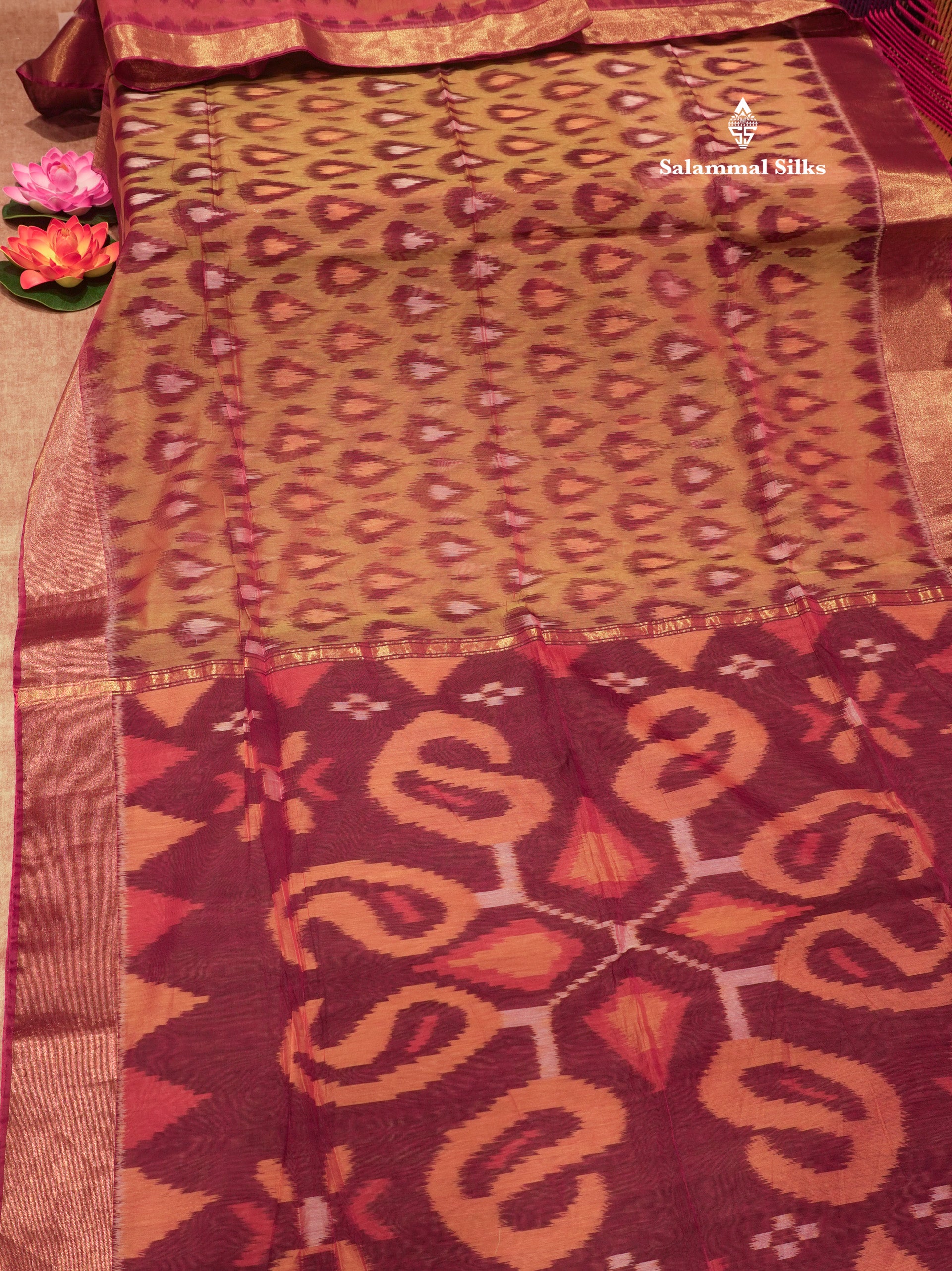 Premium Olive Mustard Yellow Colour Pochampalli SICO Cotton Saree With Gold Zari Border