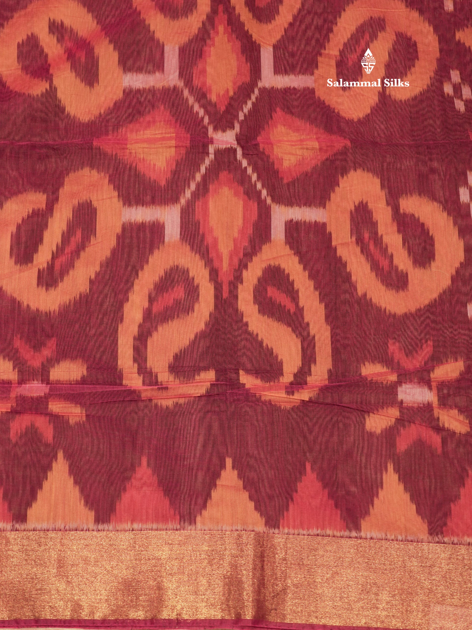 Salammal is known for its handloom sarees. In some sarees, there is cross-weaving between the body and the pallu, which is a sign of pure handloom sarees. This can be seen in Kanchipuram embossed sarees.