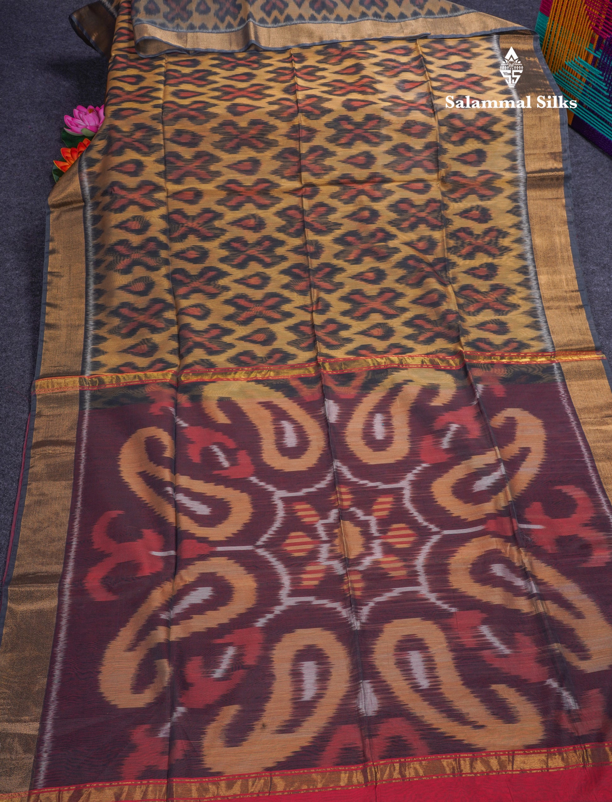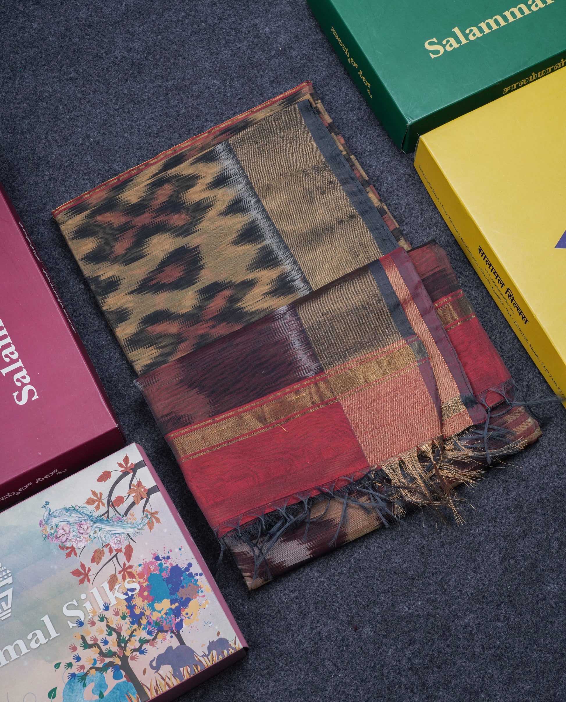 Premium Sandal Colour Pochampalli SICO Cotton Saree With Gold Zari Border