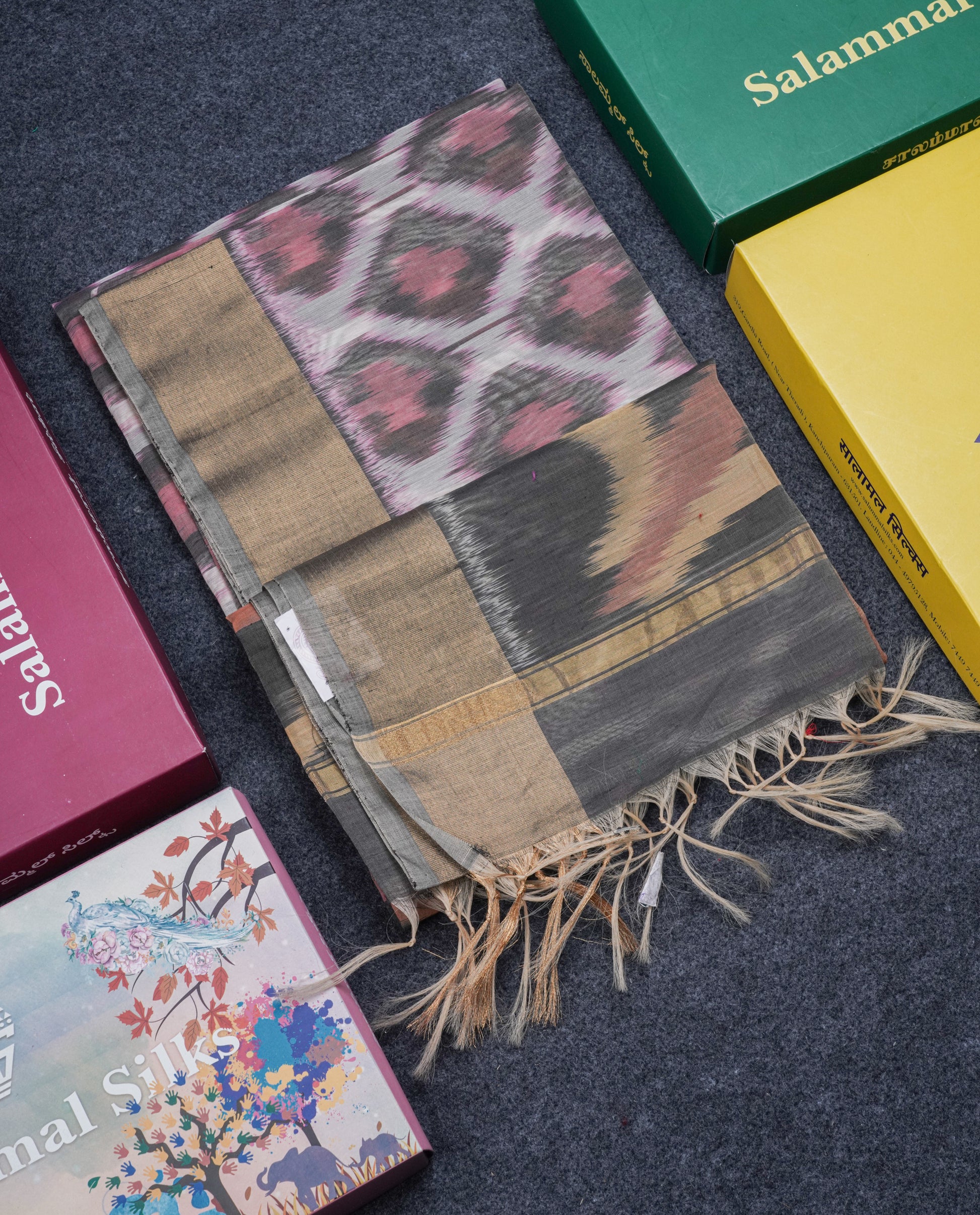 Salammal is known for its handloom sarees. In some sarees, there is cross-weaving between the body and the pallu, which is a sign of pure handloom sarees. This can be seen in Kanchipuram embossed sarees.