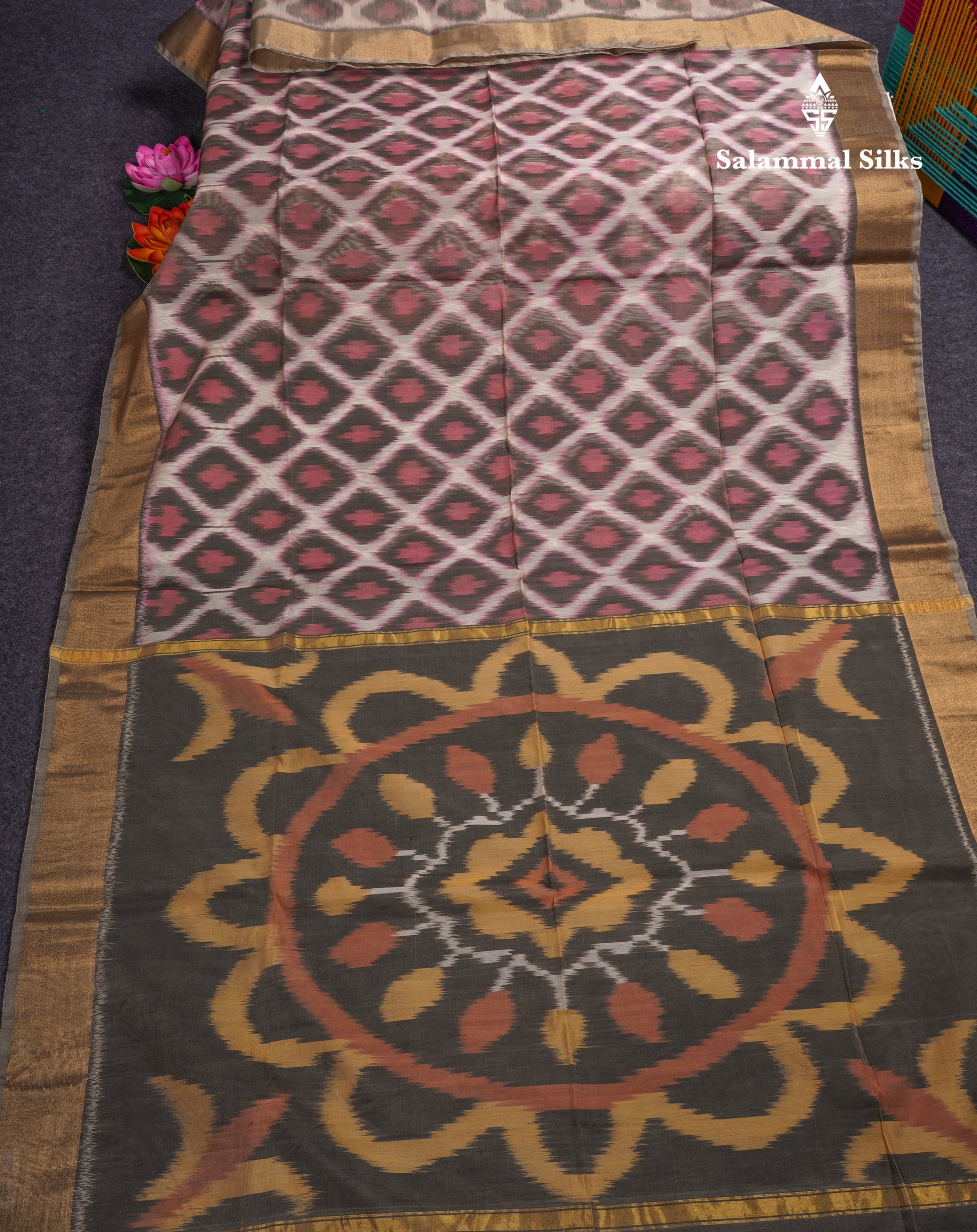 Premium White Pochampalli SICO Cotton Saree With Gold Zari Border