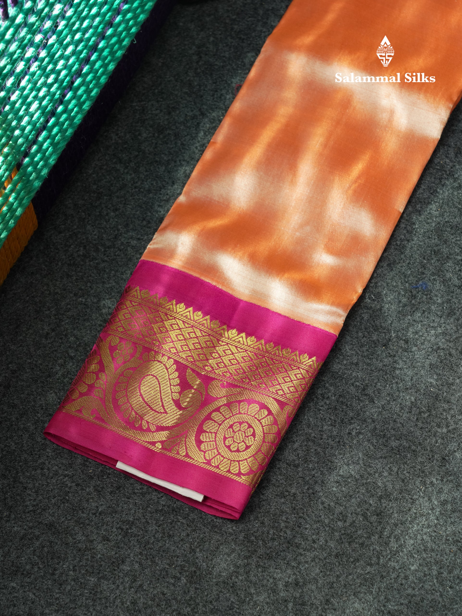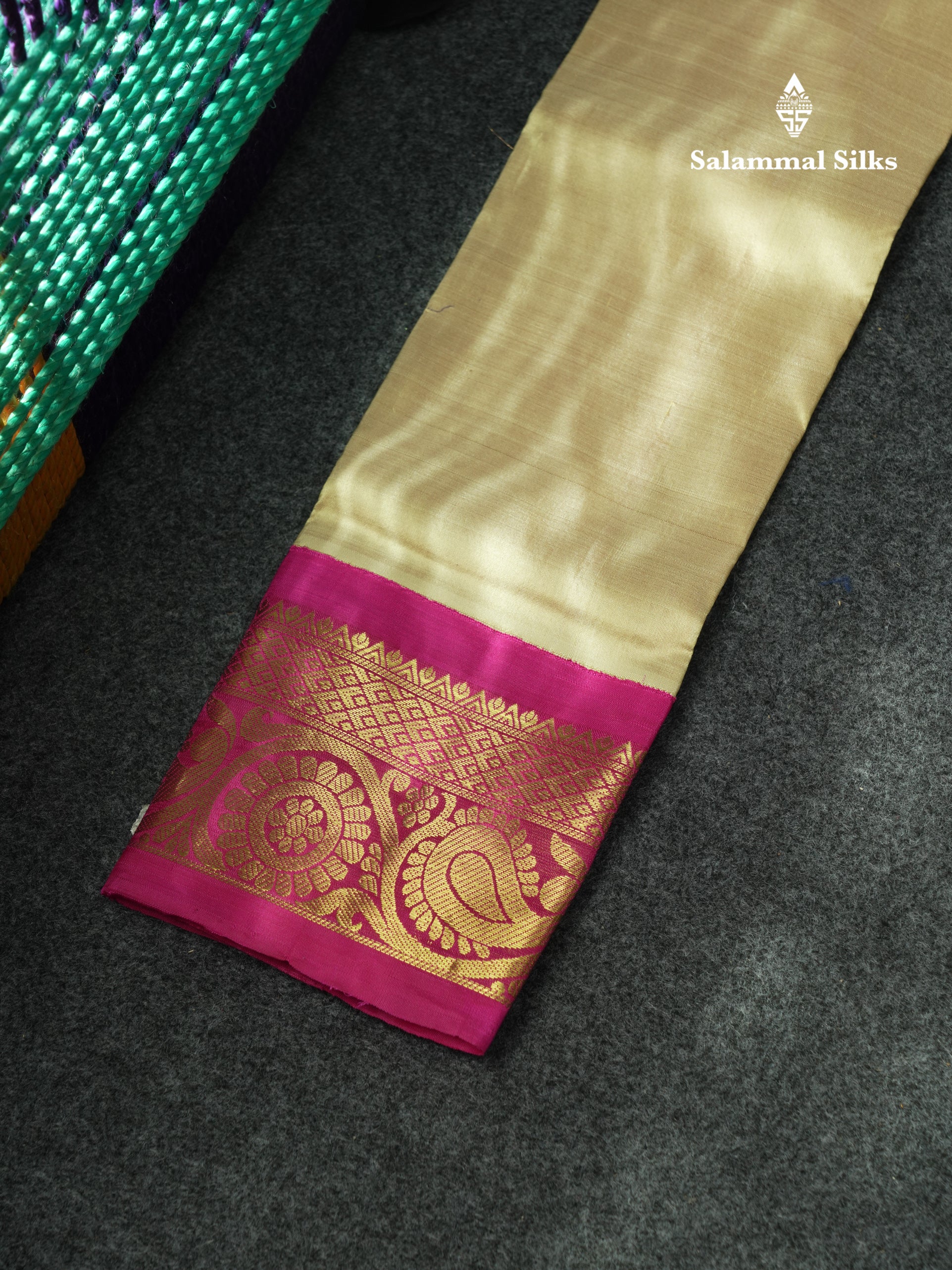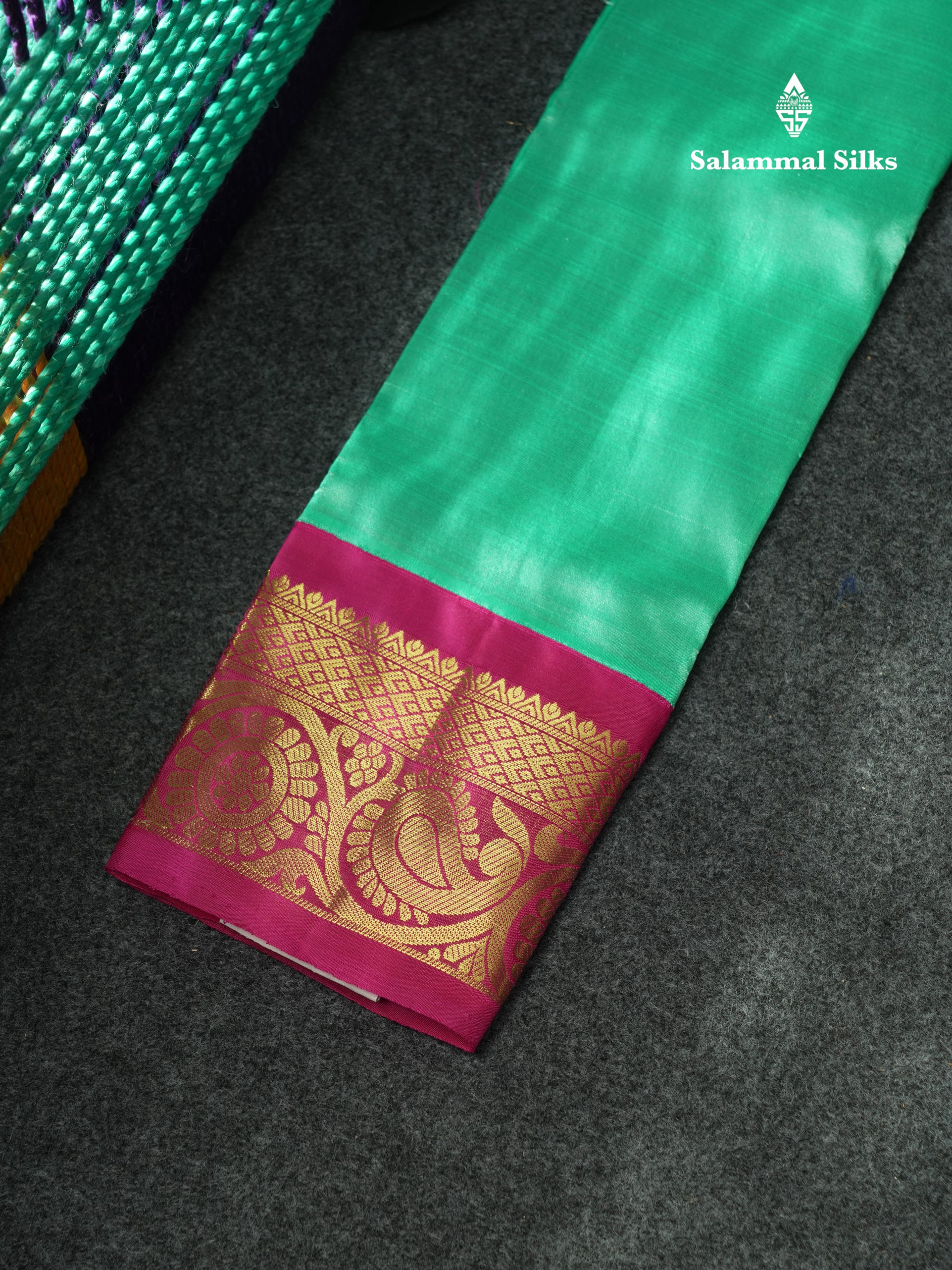 Salammal is known for its handloom sarees. In some sarees, there is cross-weaving between the body and the pallu, which is a sign of pure handloom sarees. This can be seen in Kanchipuram embossed sarees.