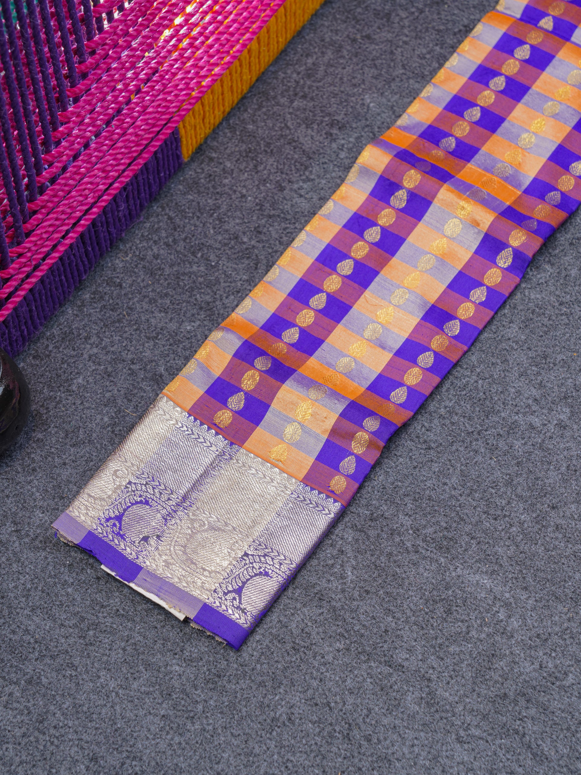 Salammal is known for its handloom sarees. In some sarees, there is cross-weaving between the body and the pallu, which is a sign of pure handloom sarees. This can be seen in Kanchipuram embossed sarees.