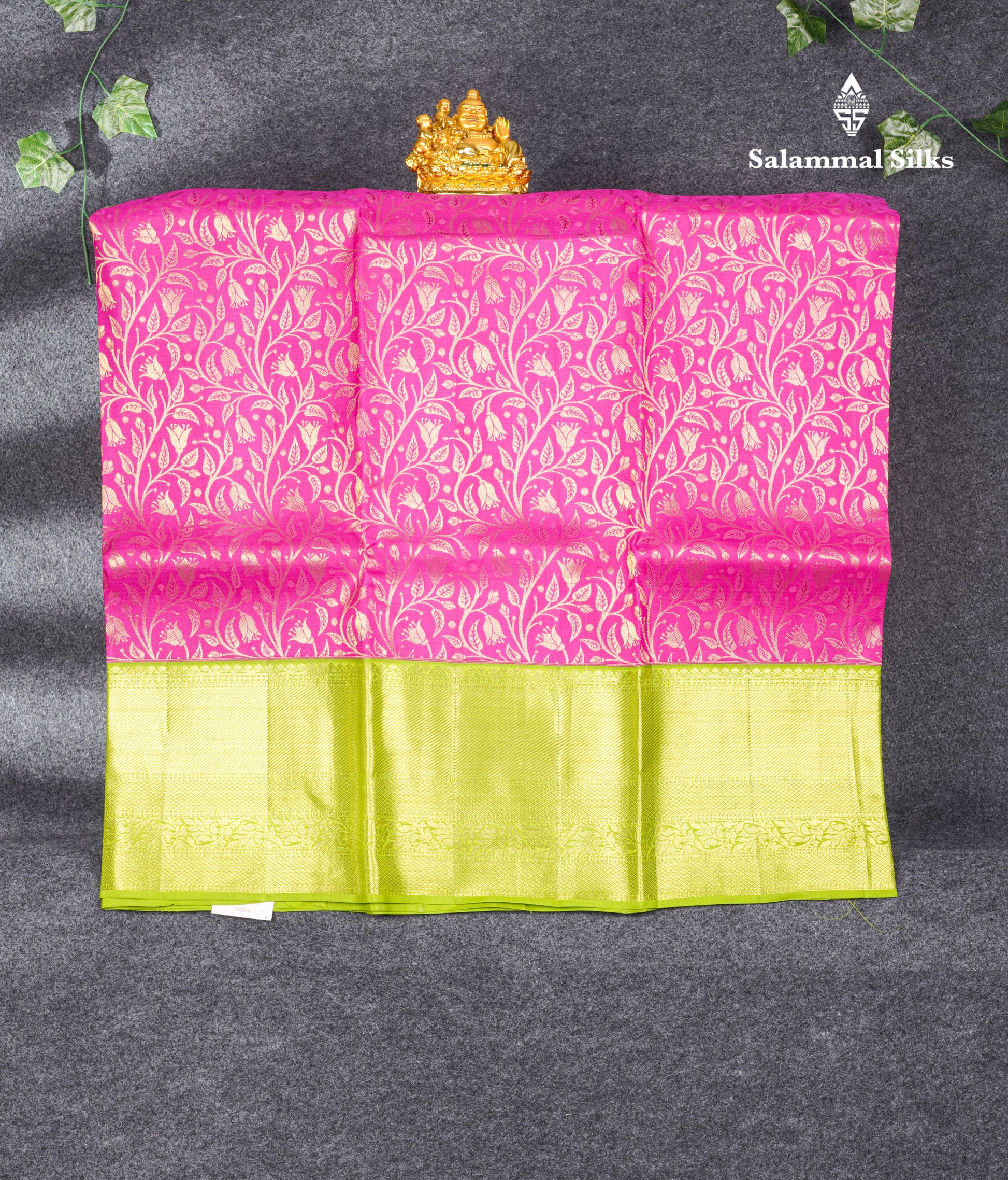 Pure Silk Pattu Pavadai (Pink) With Parrot Green Blouse 44"