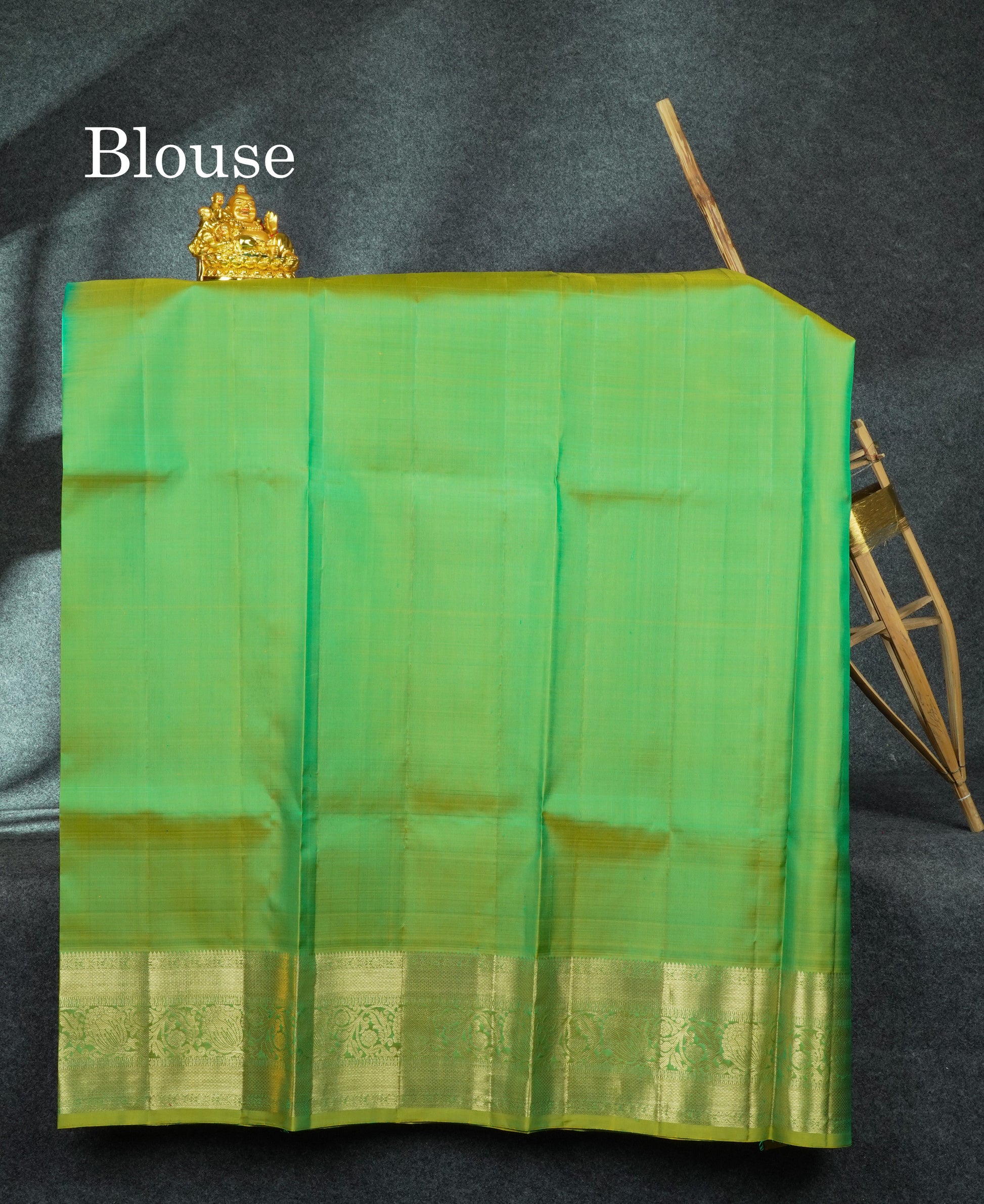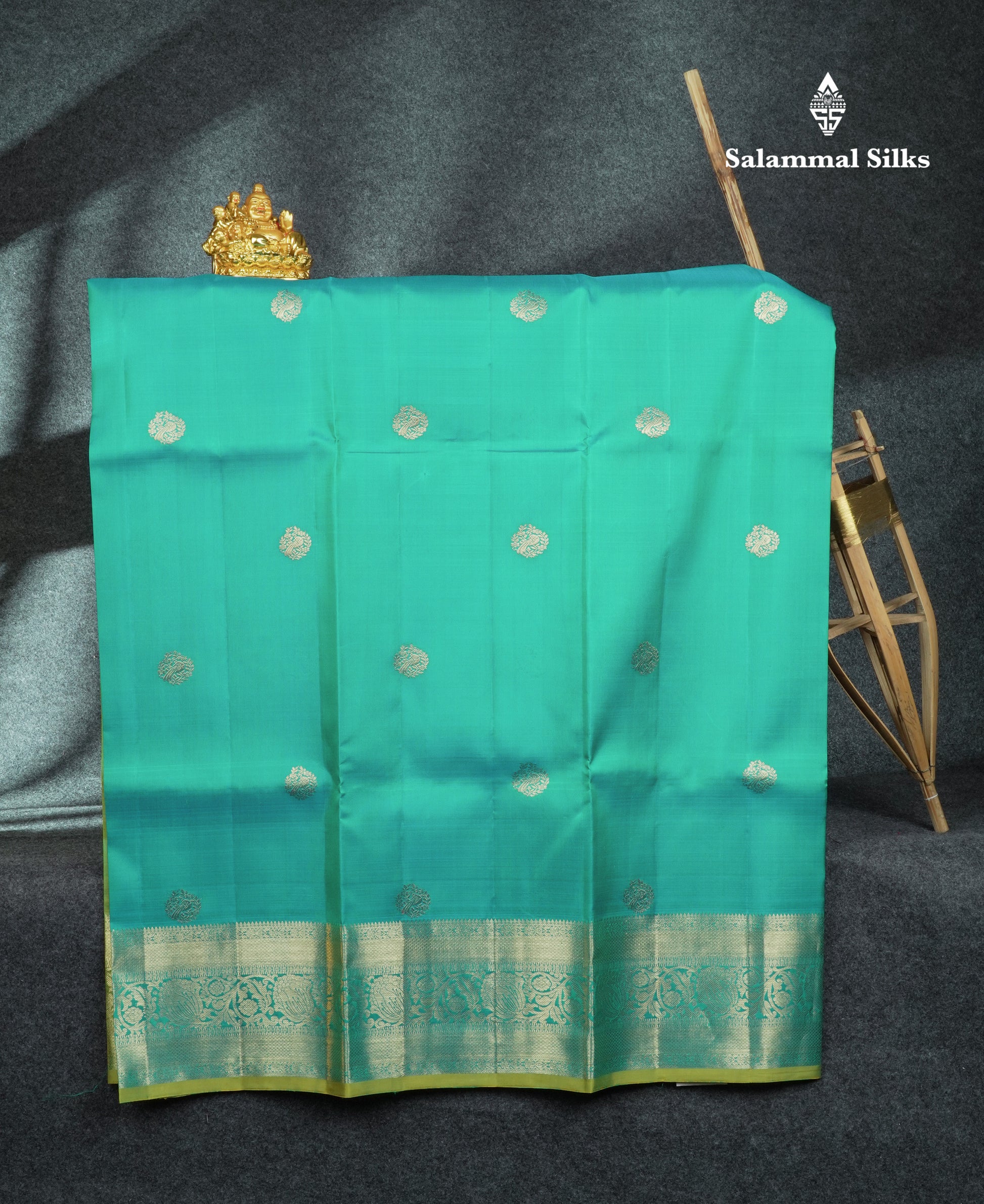 Pure Silk Pattu Pavadai (Sapphire Green) With Manthulir Green Blouse 44"