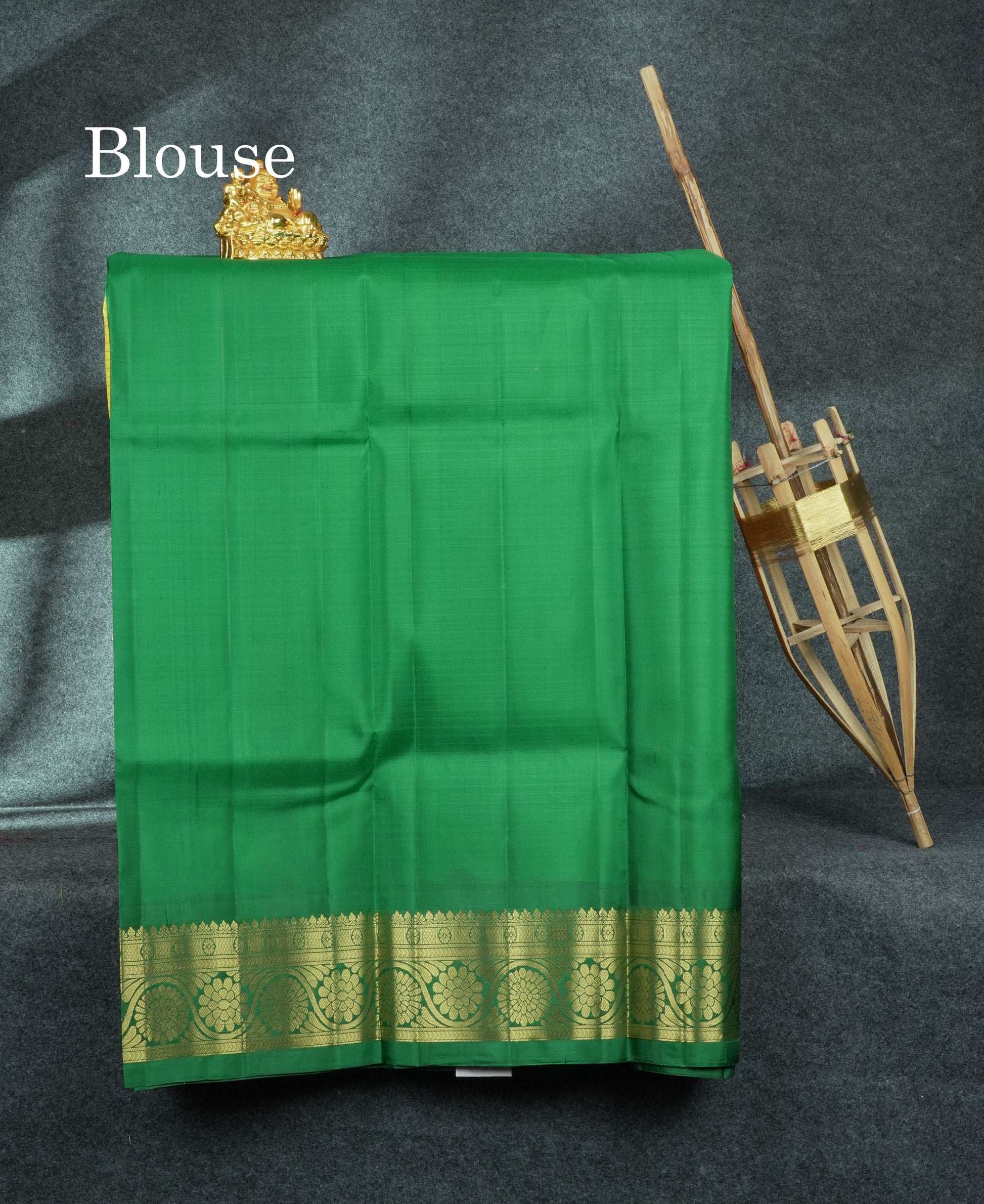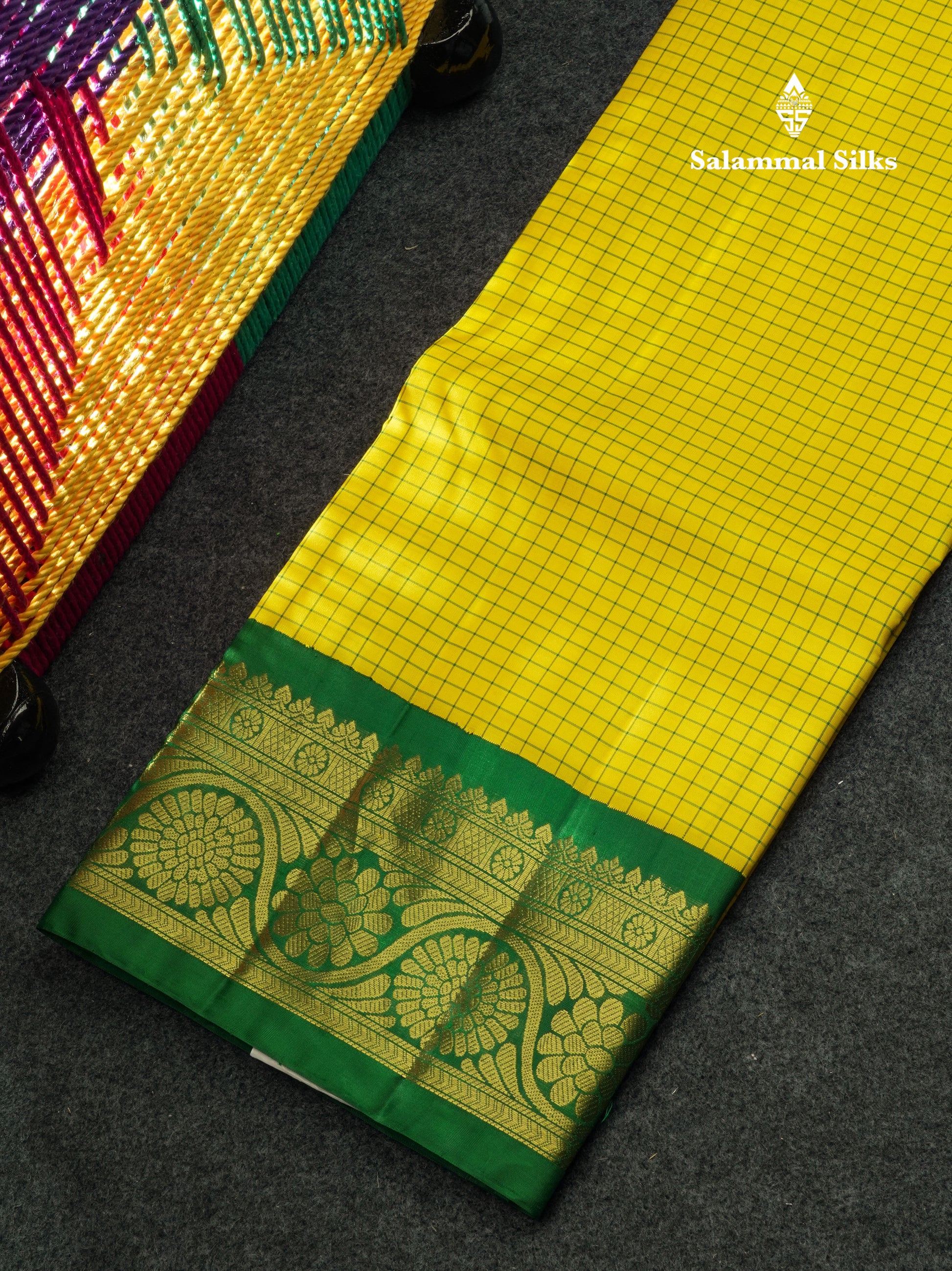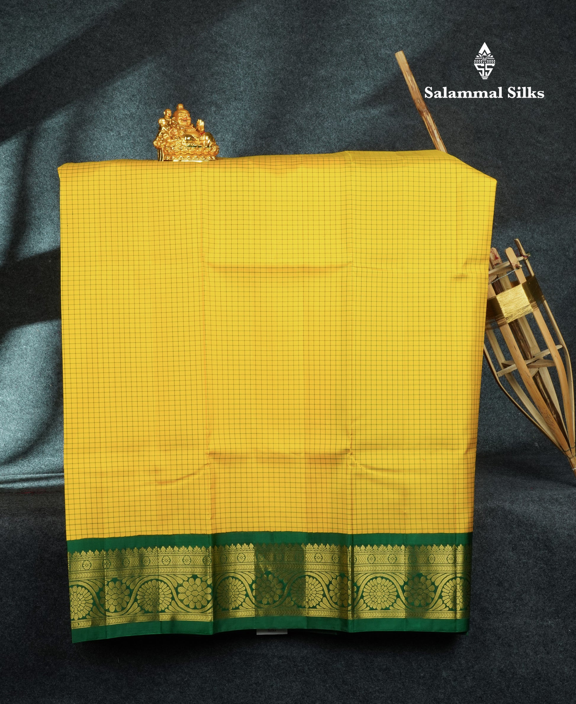 Pure Silk Pattu Pavadai Tiny Checks (Yellow) With Bottle Green Blouse 44"