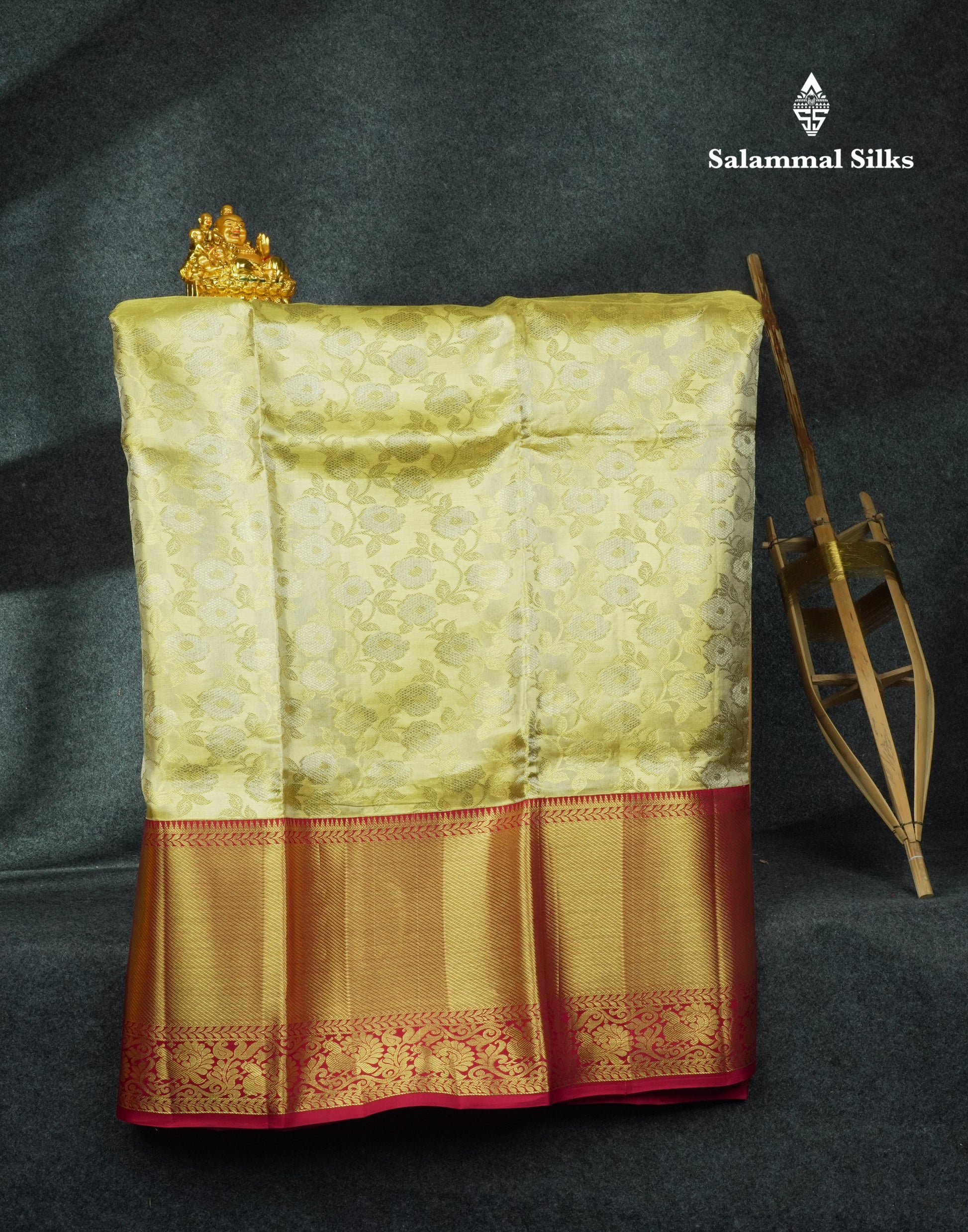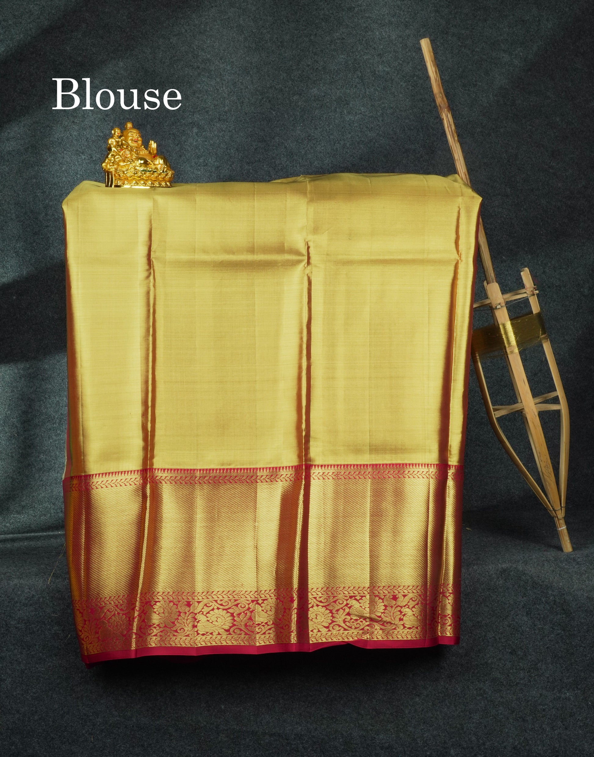 Pure Silk Pattu Pavadai Tissue (Gold) With Maroon Blouse 44"