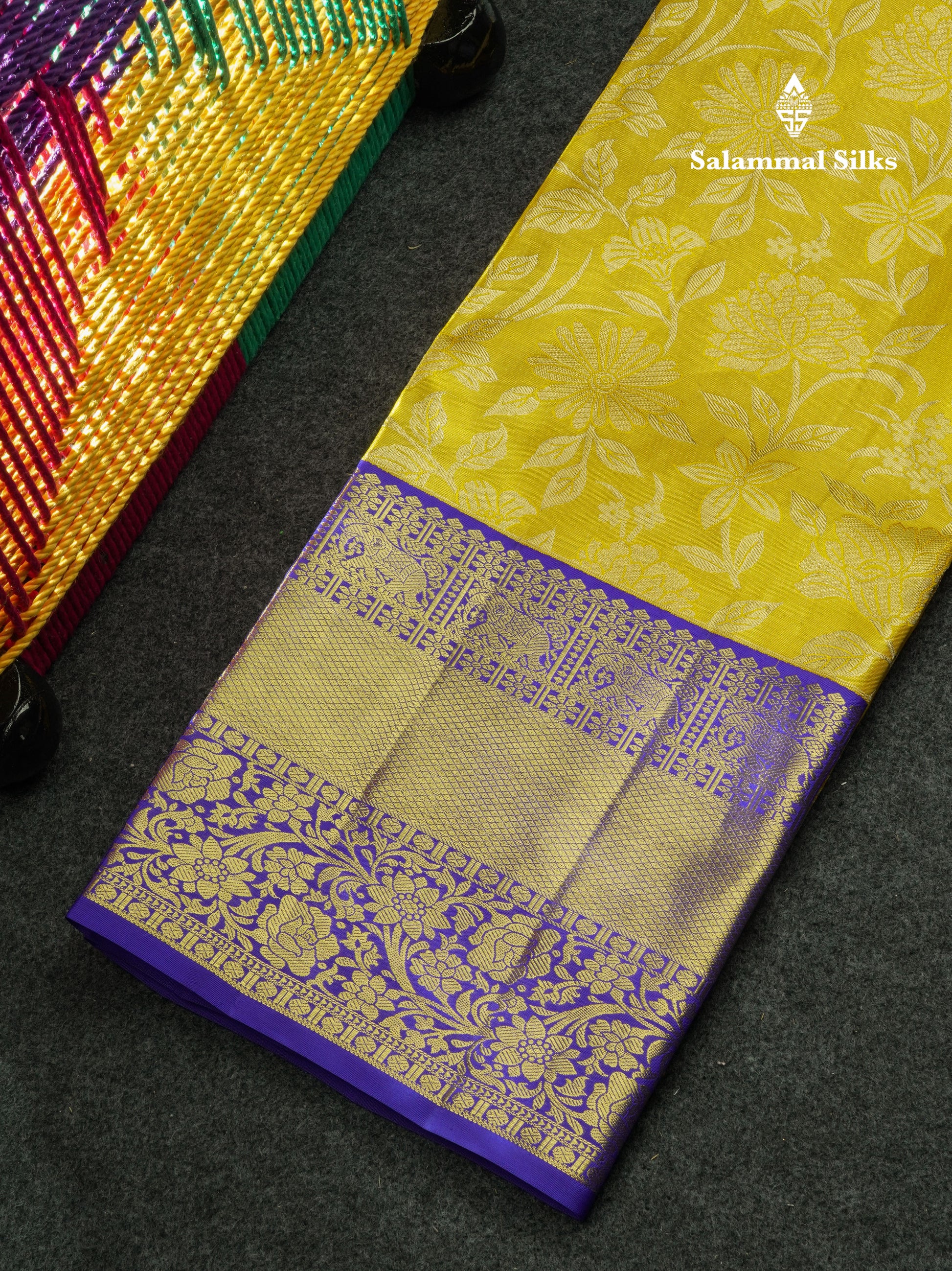 Salammal is known for its handloom sarees. In some sarees, there is cross-weaving between the body and the pallu, which is a sign of pure handloom sarees. This can be seen in Kanchipuram embossed sarees.