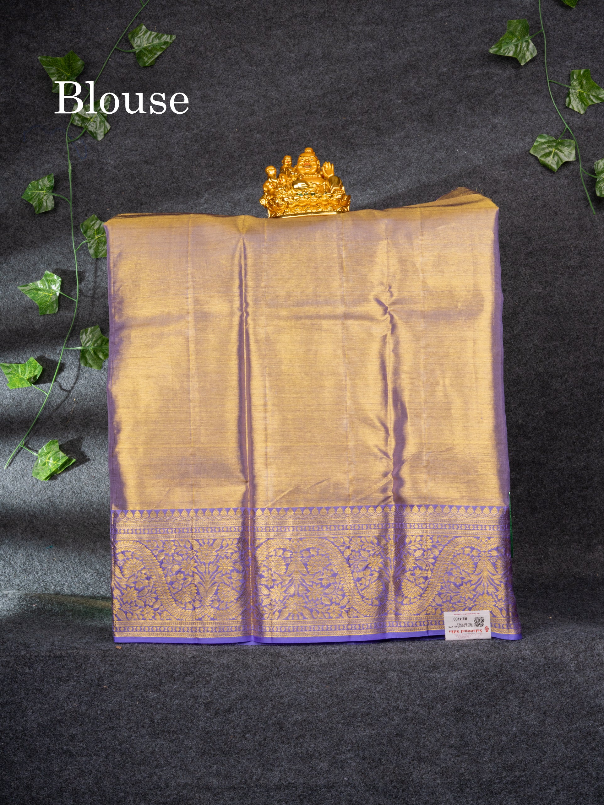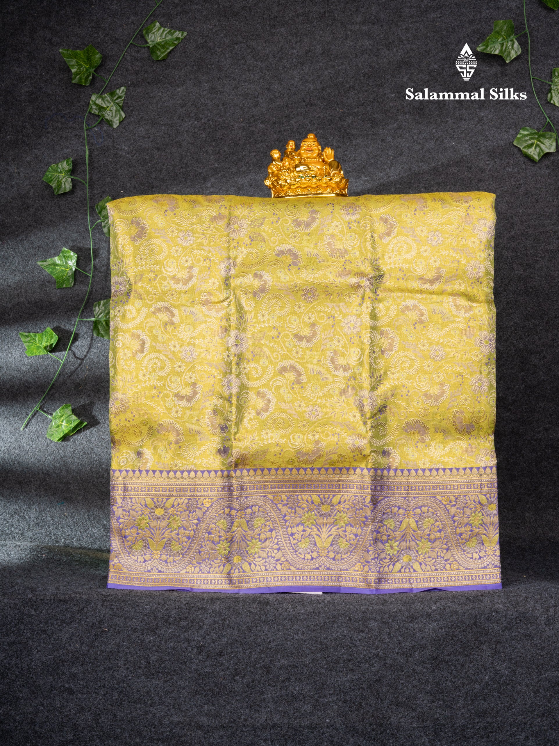 Pure Silk Pattu Pavadai Tissue (Pista Green) With Violet Blouse 27.50"